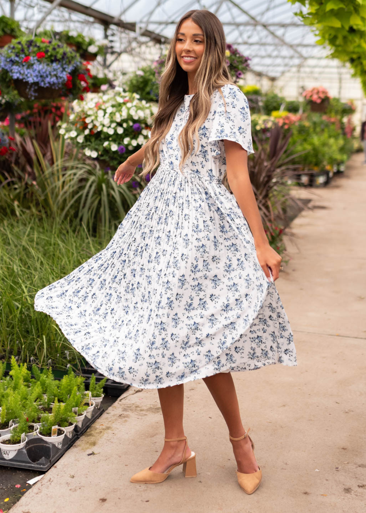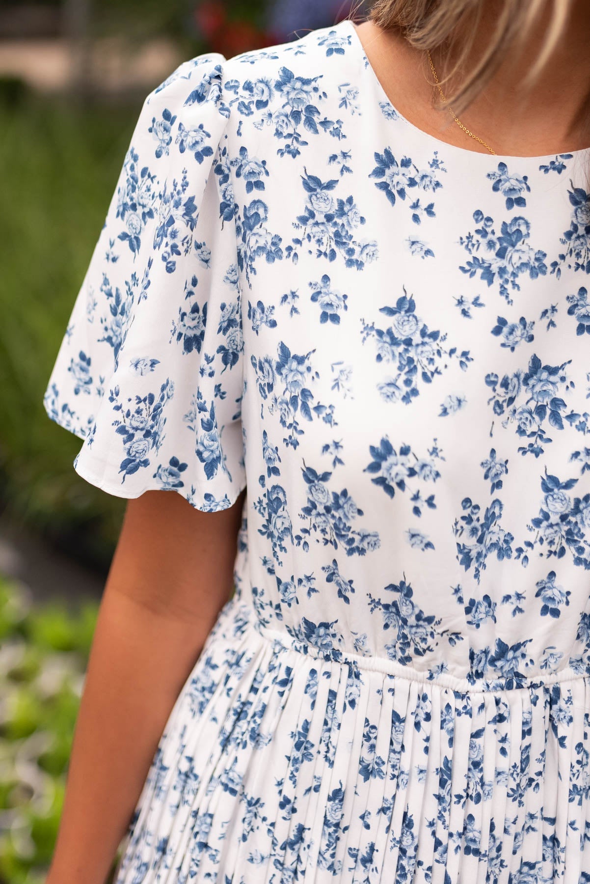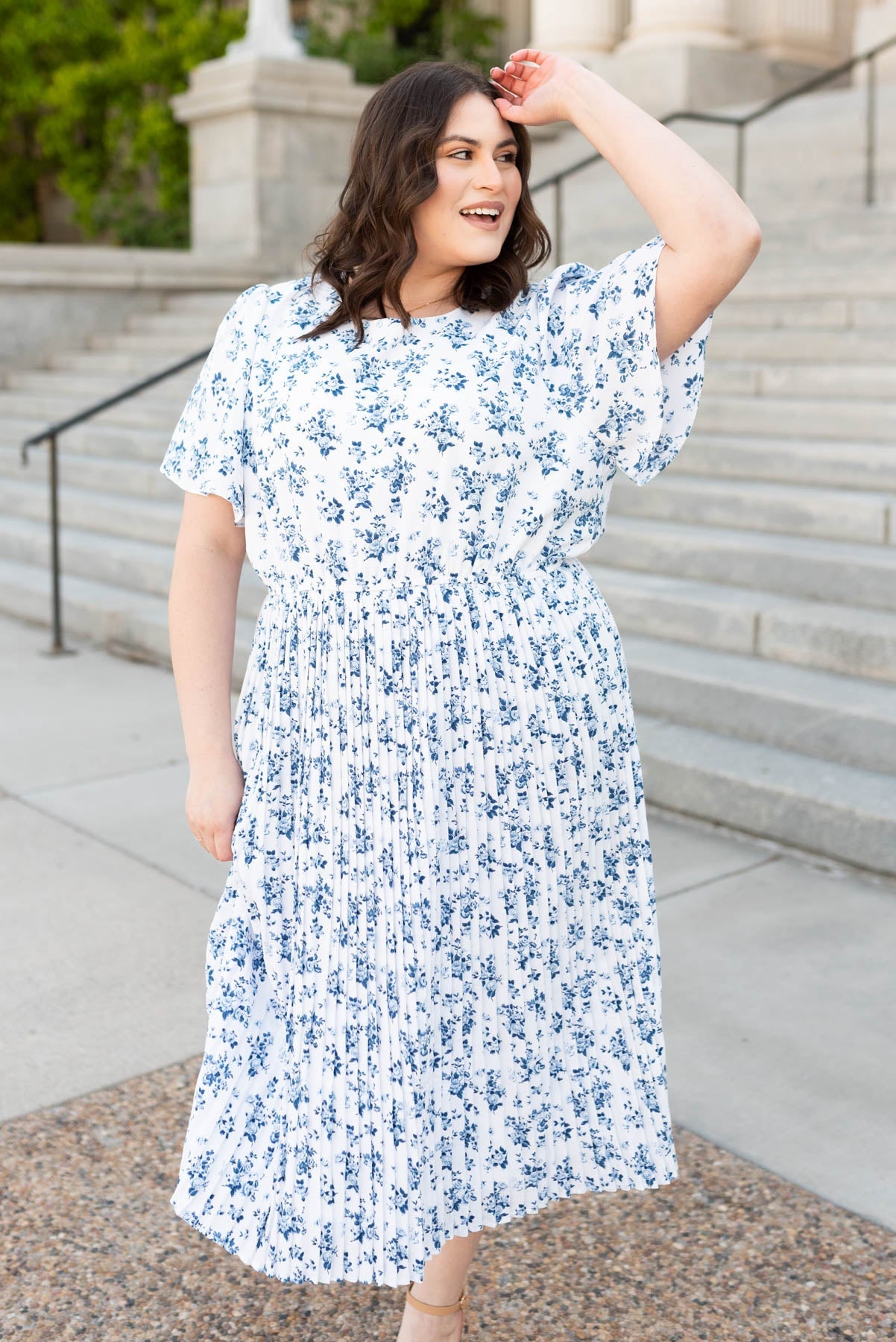 Hazley Blue Floral Pleated Dress