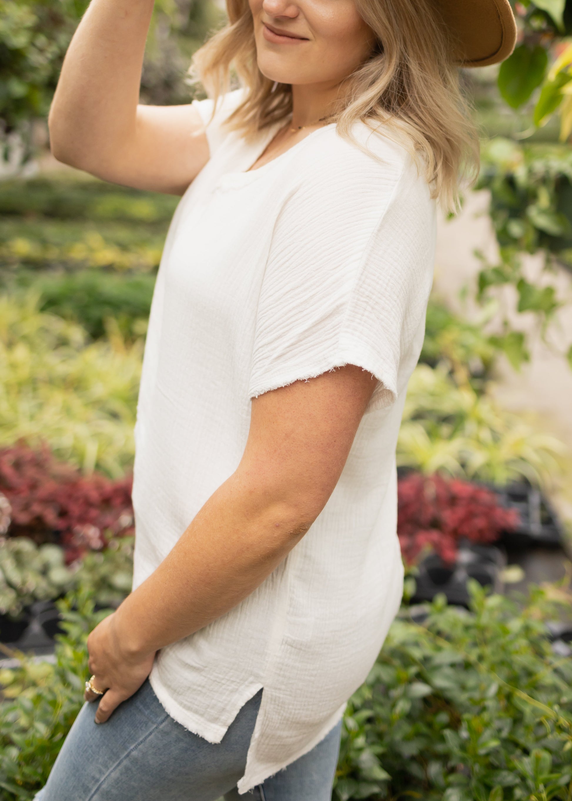 - High-low hem with side slits