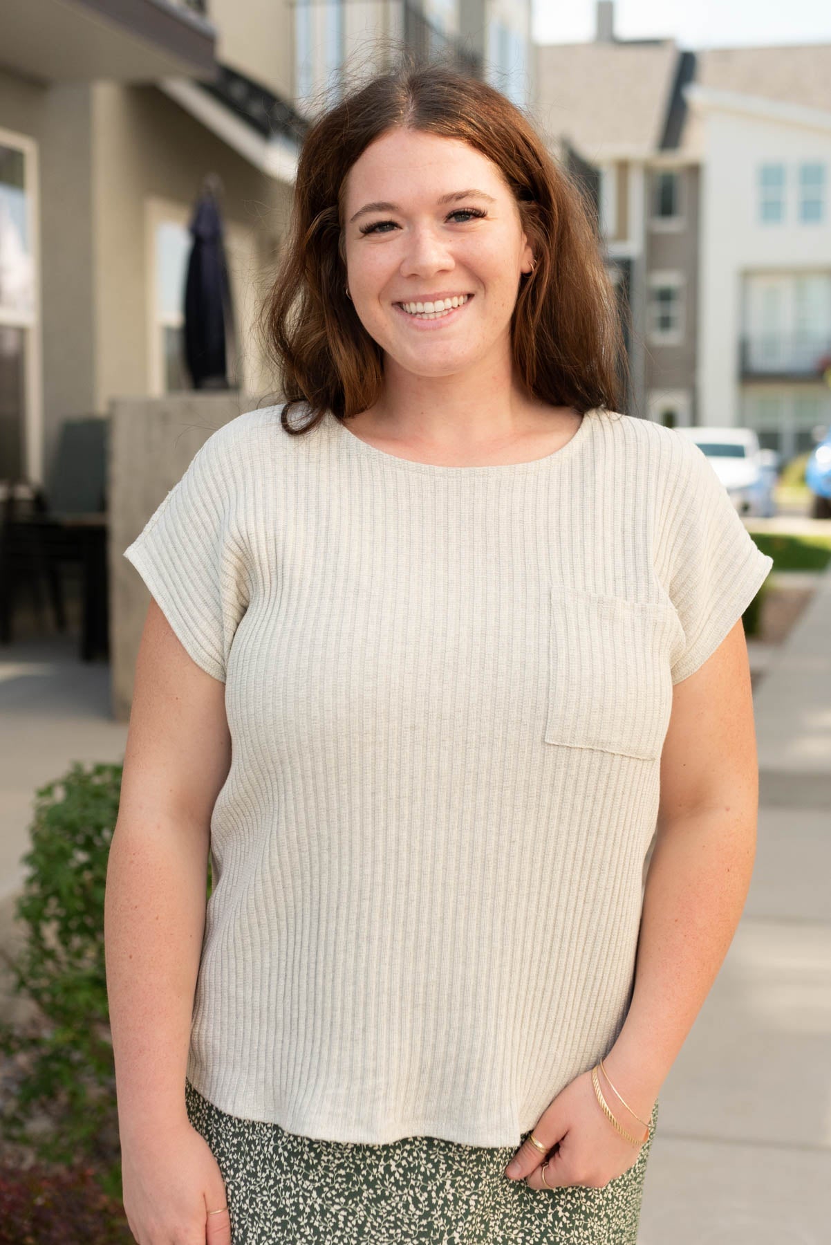 Iris Light Grey Ribbed Top