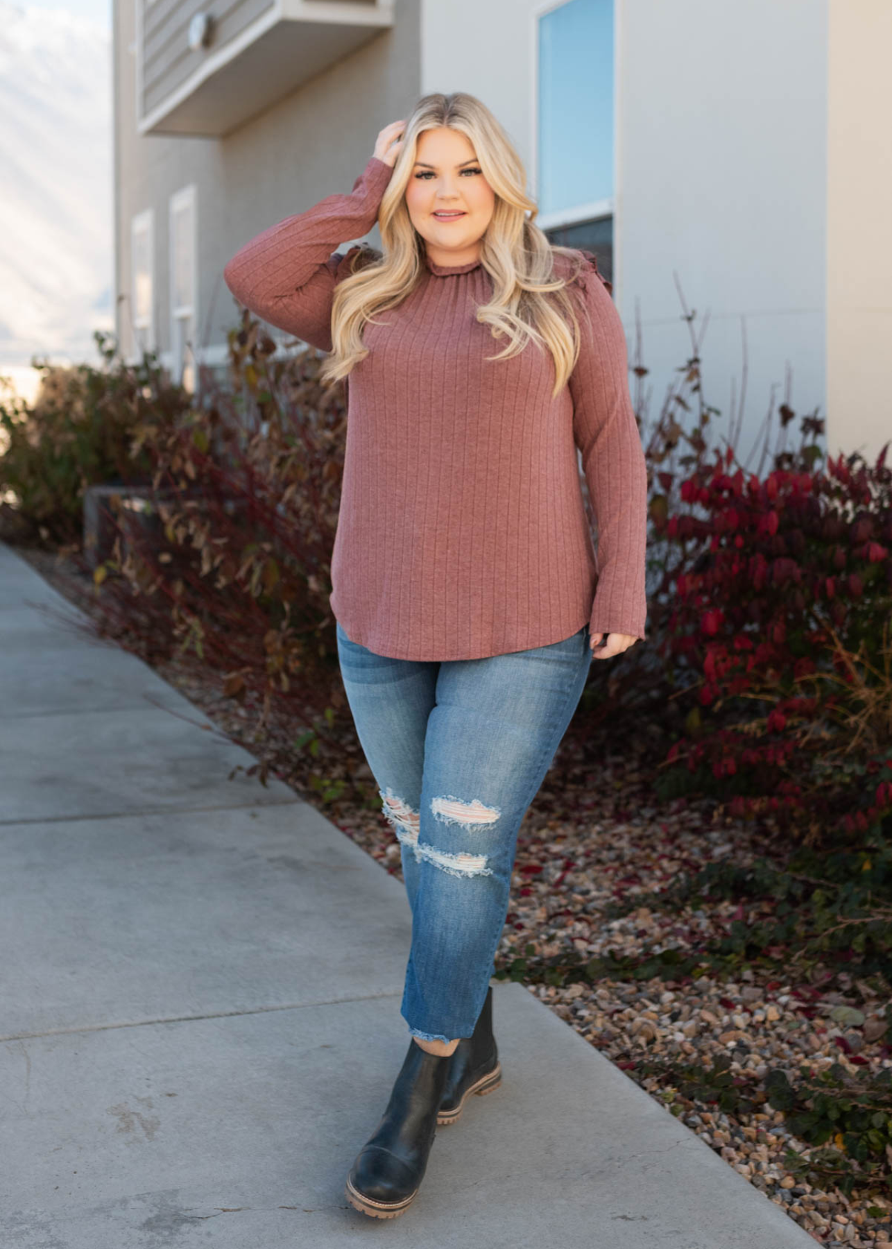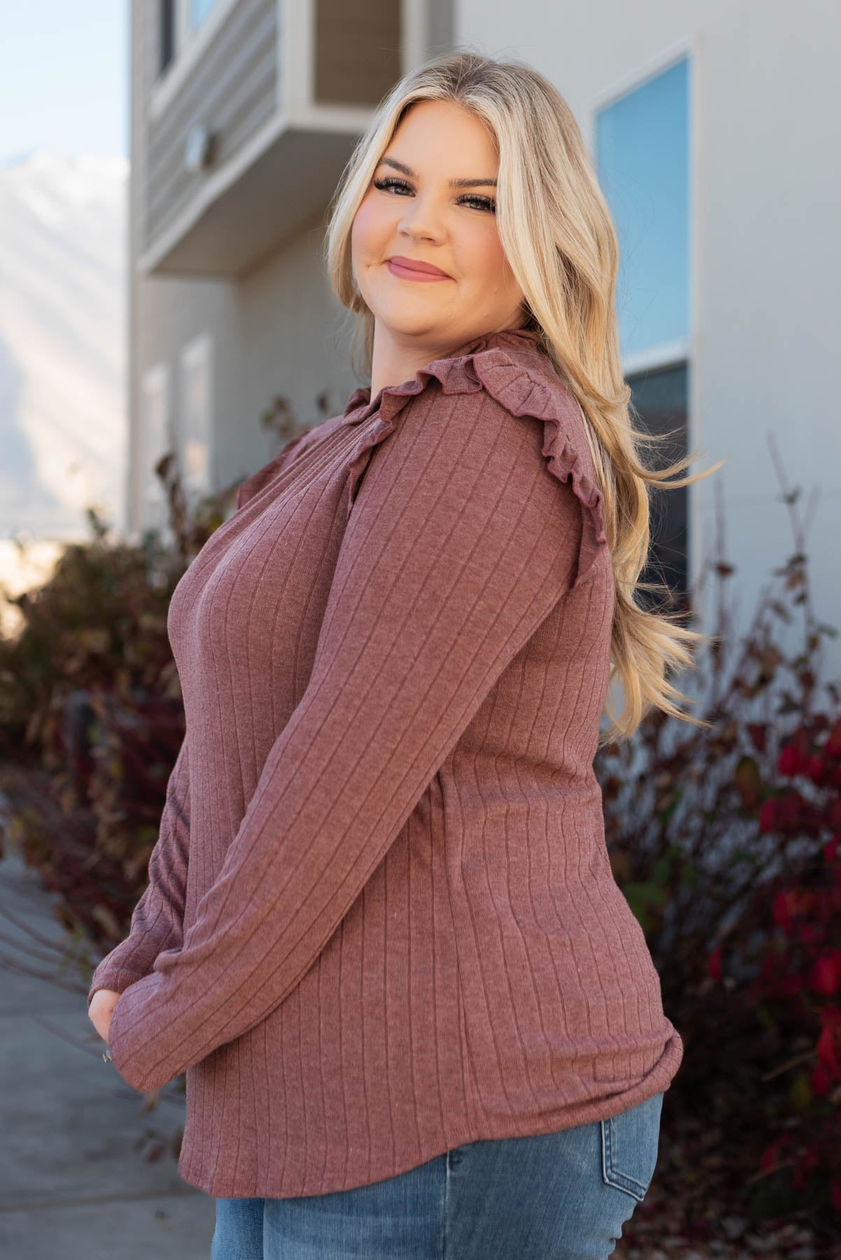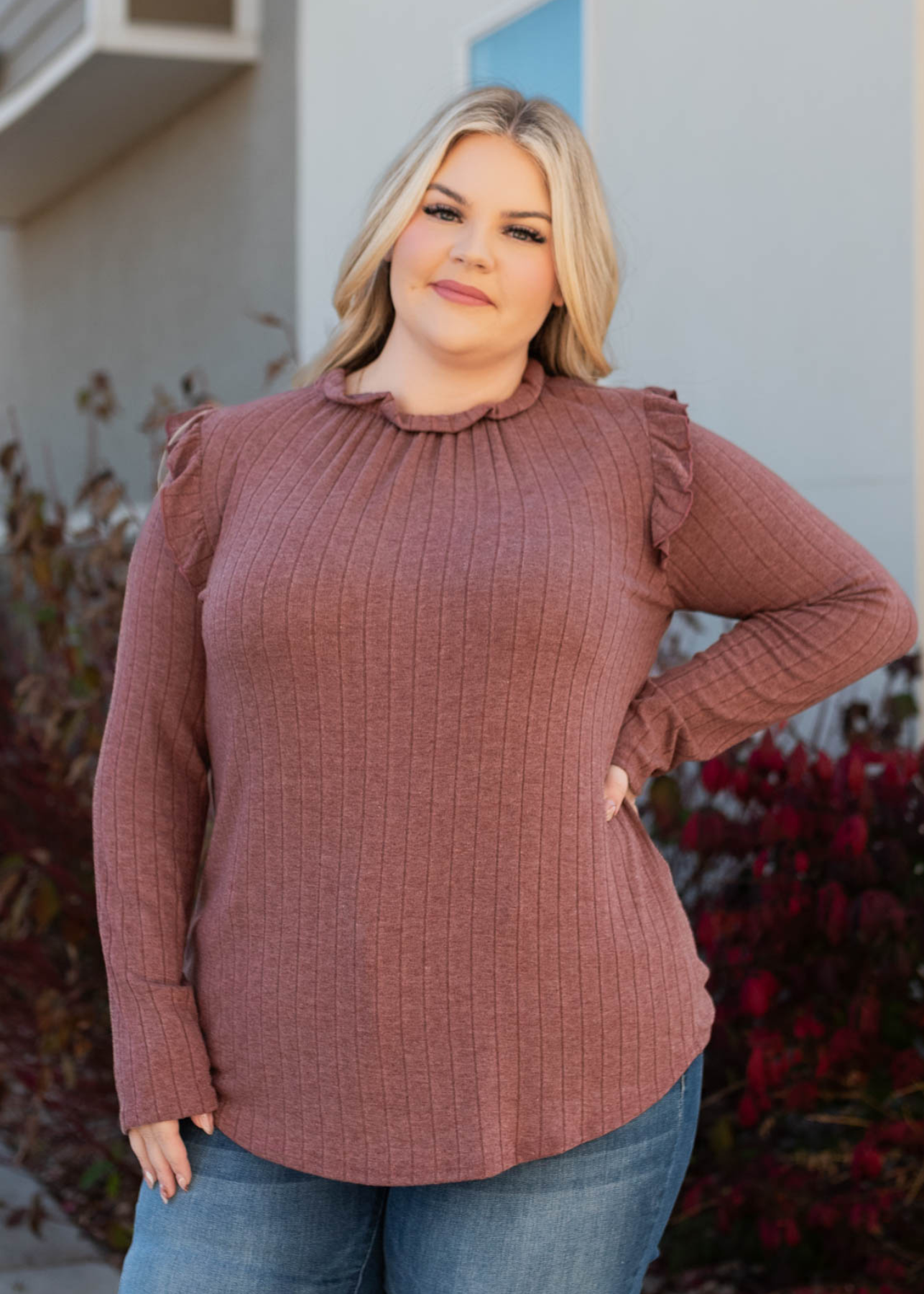 Jacelyn Burgundy Ruffle Long Sleeve Top