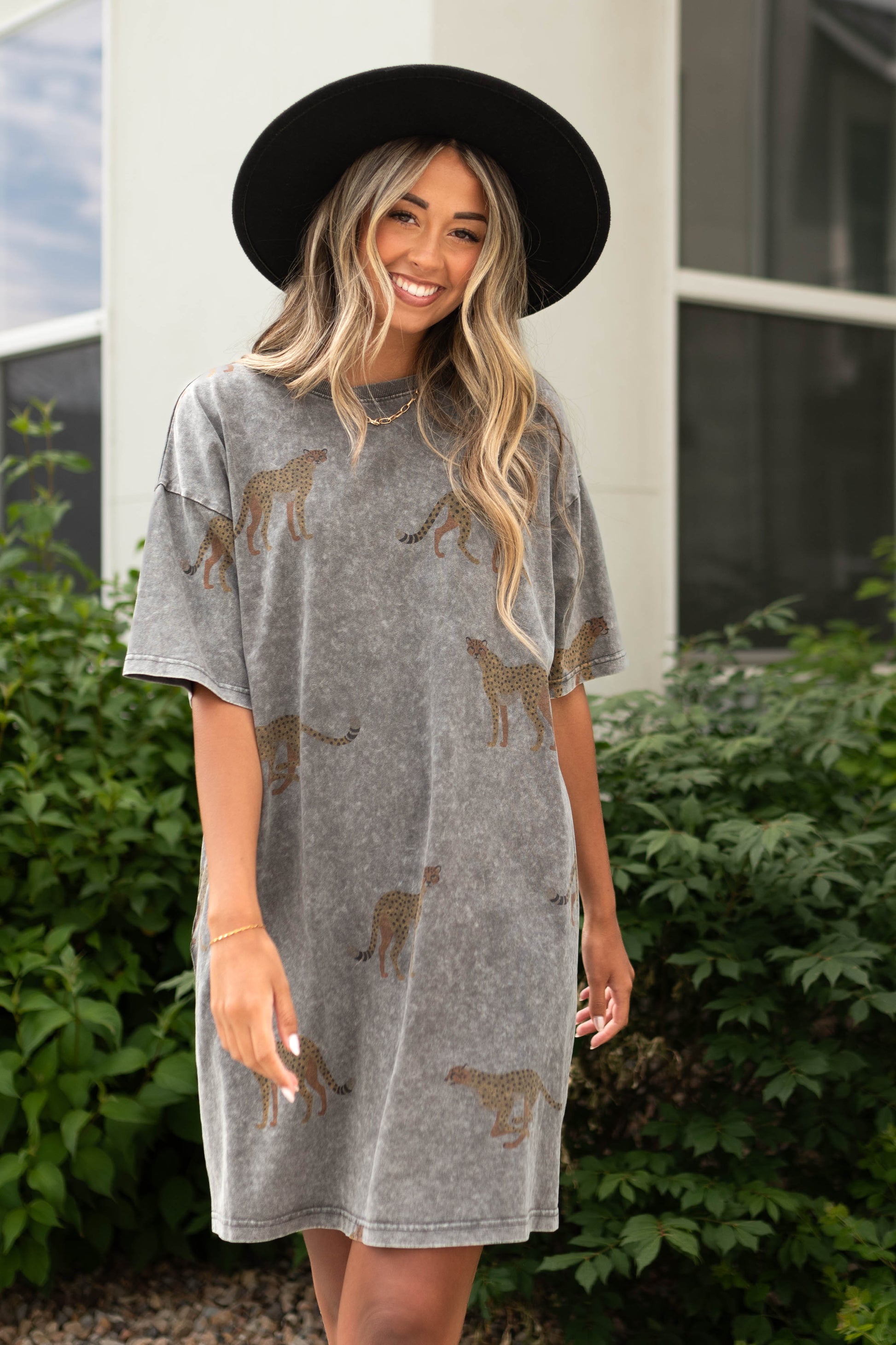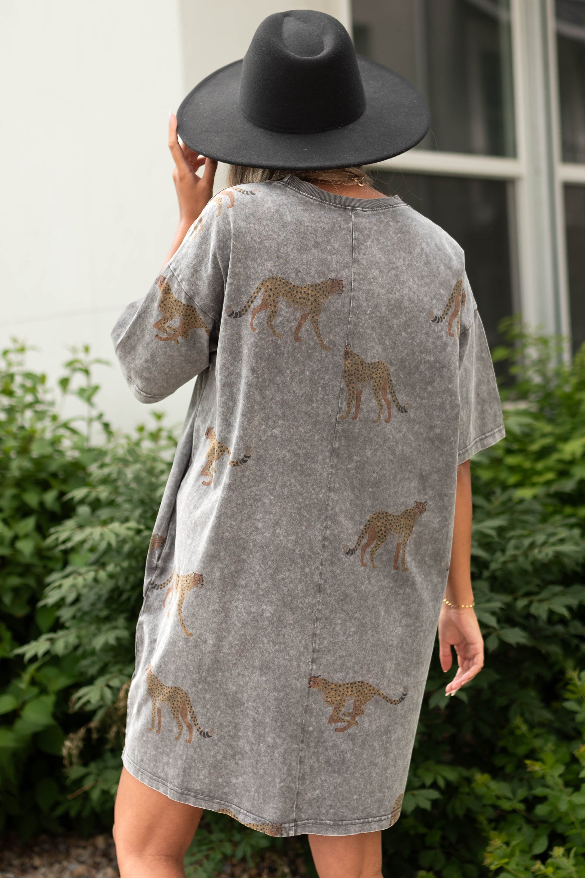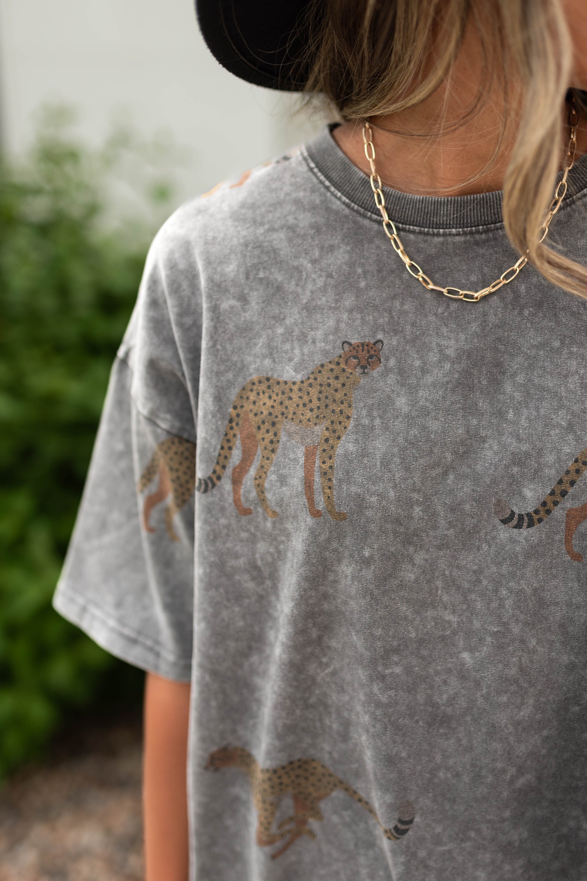 - Charcoal mineral wash fabric with a leopard print. SO CUTE
