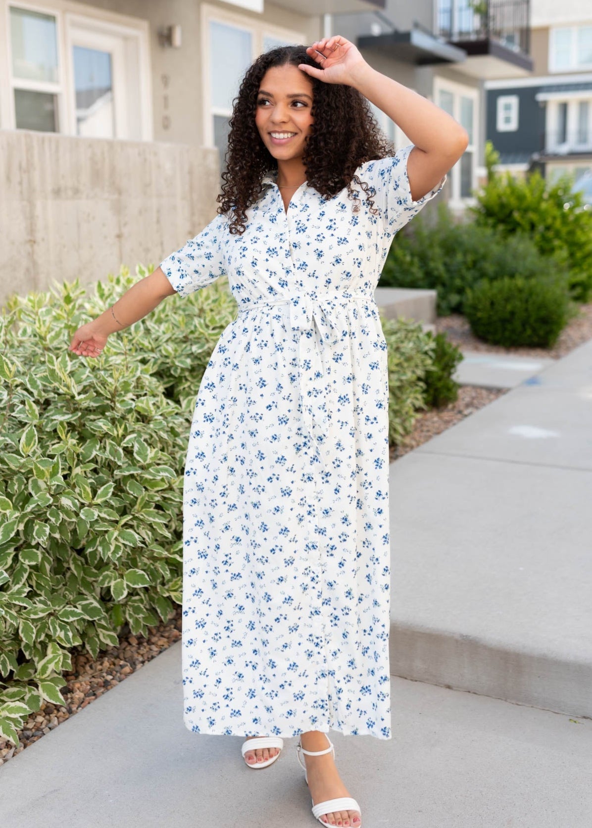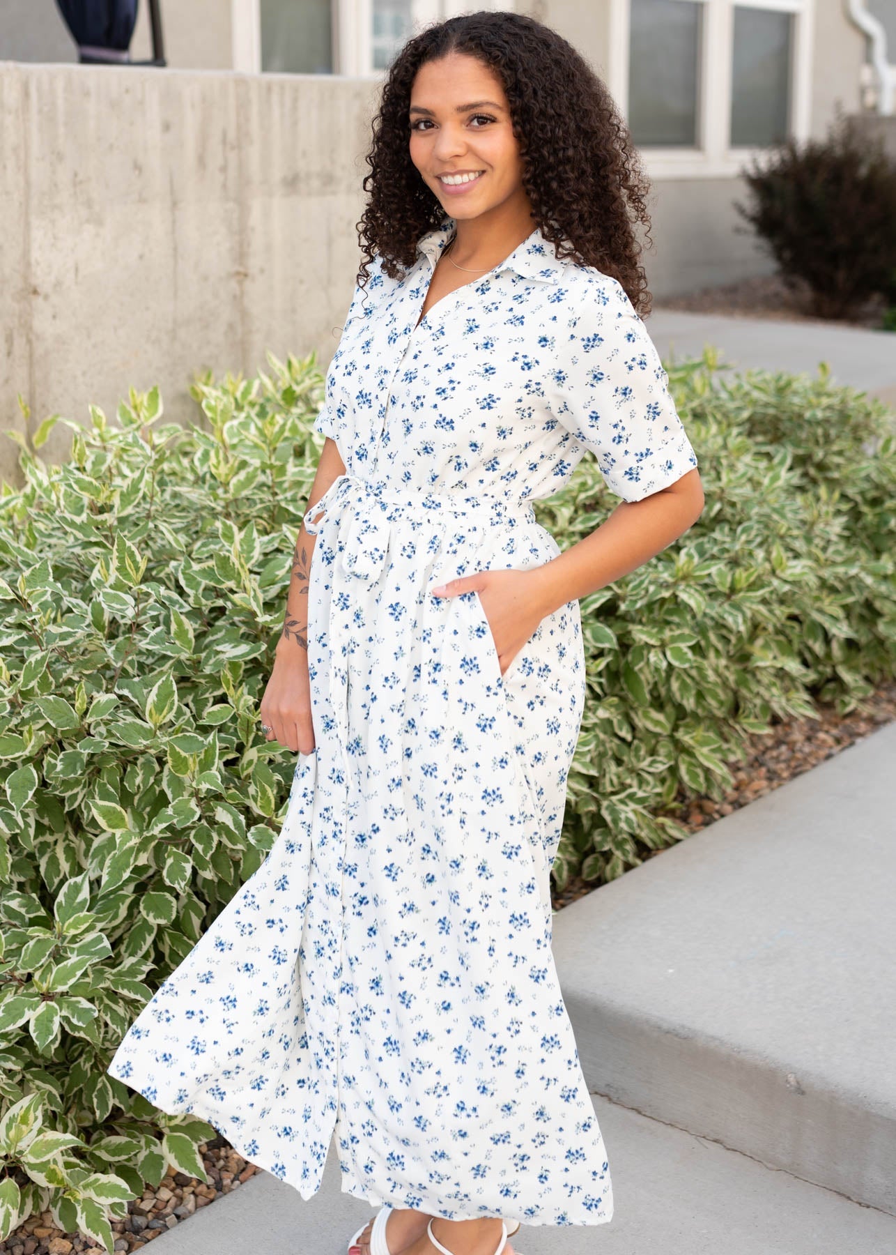Jackie White Floral Button Down Dress