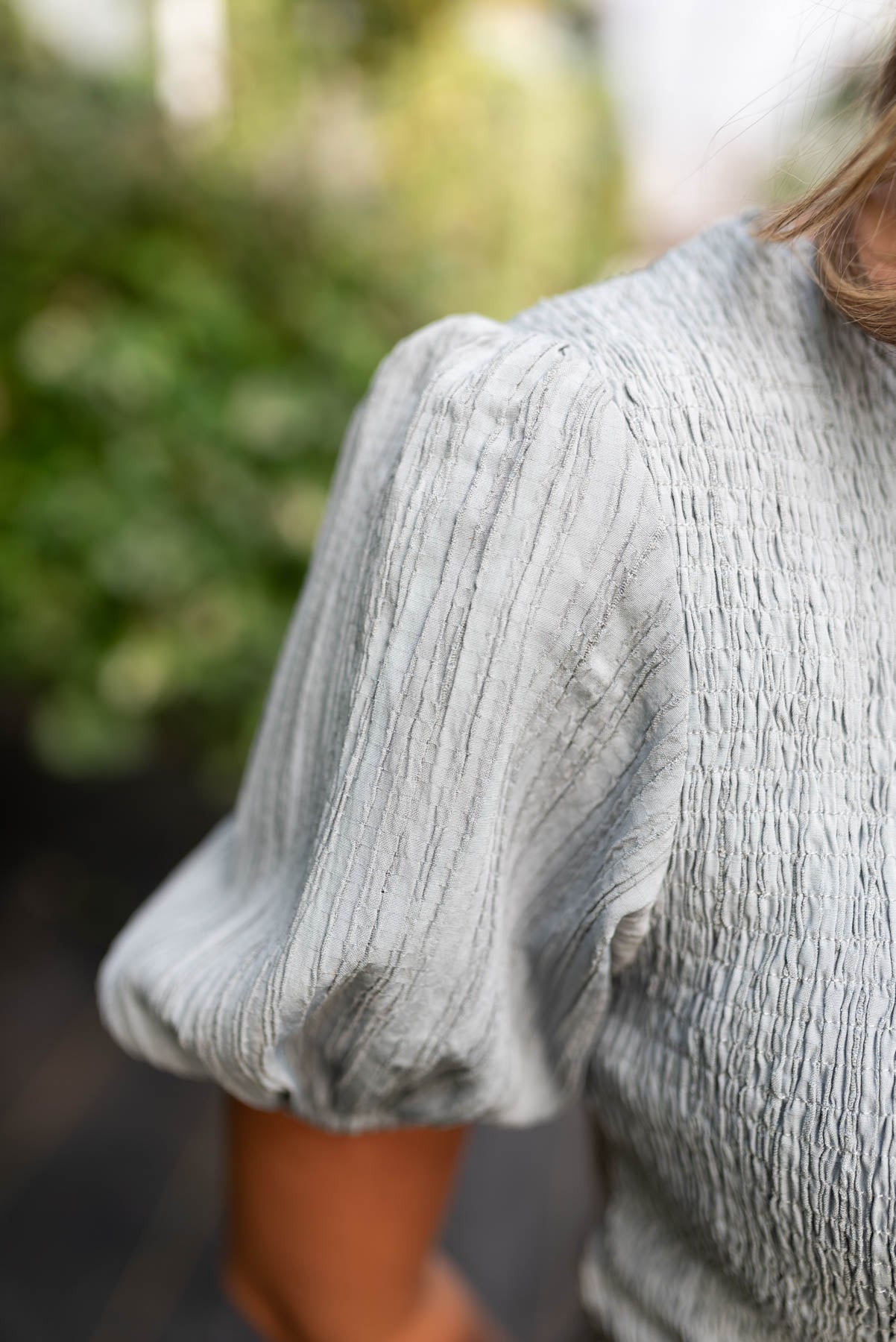 - Textured fabric throughout the whole dress that gives a subtle stripe effect