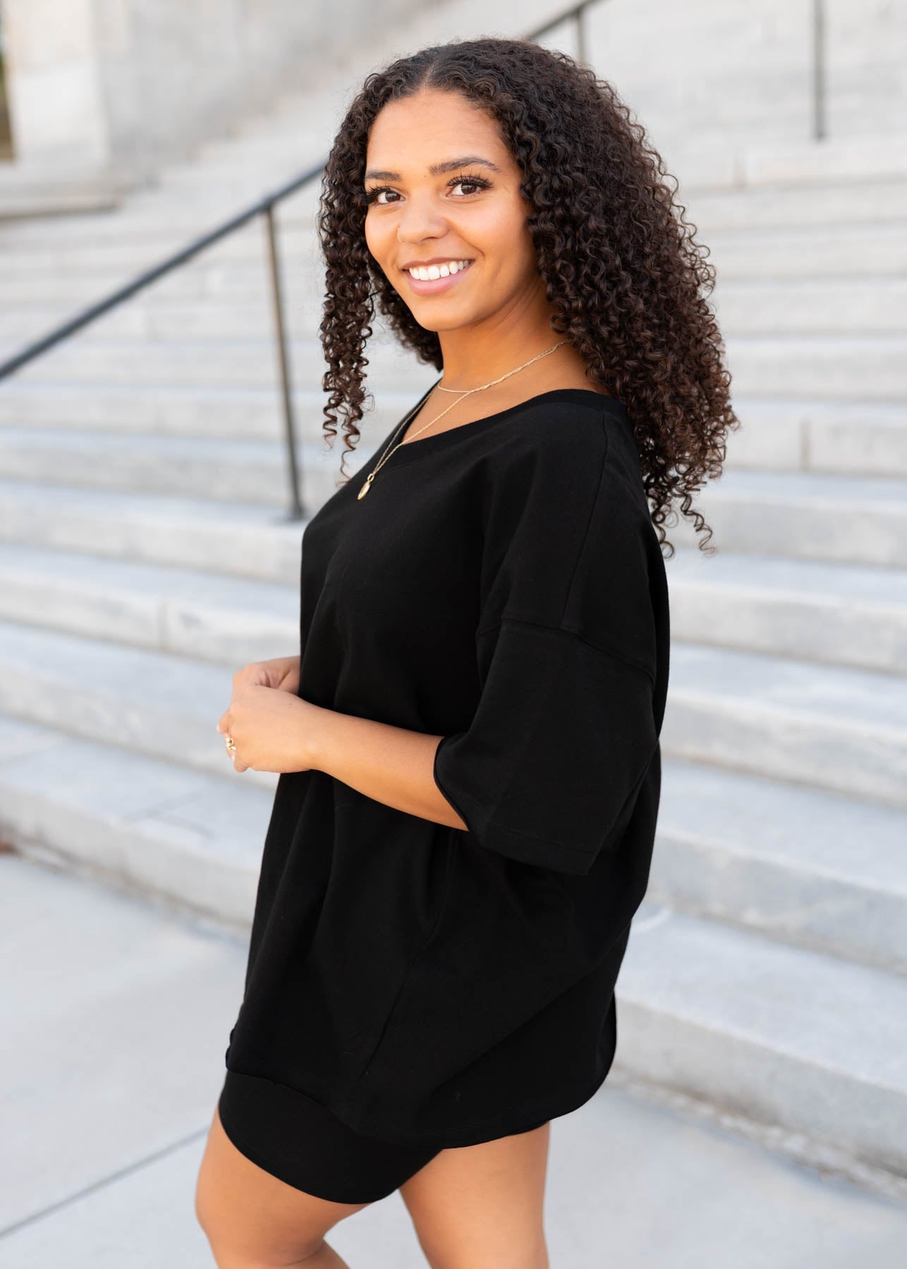 - Fits true to size but is meant to be an oversized fit