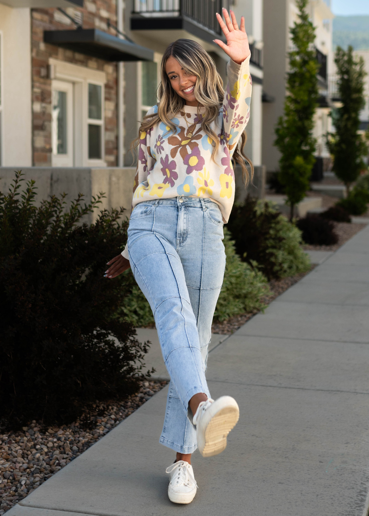 - Light wash denim that's comfortable & moveable
