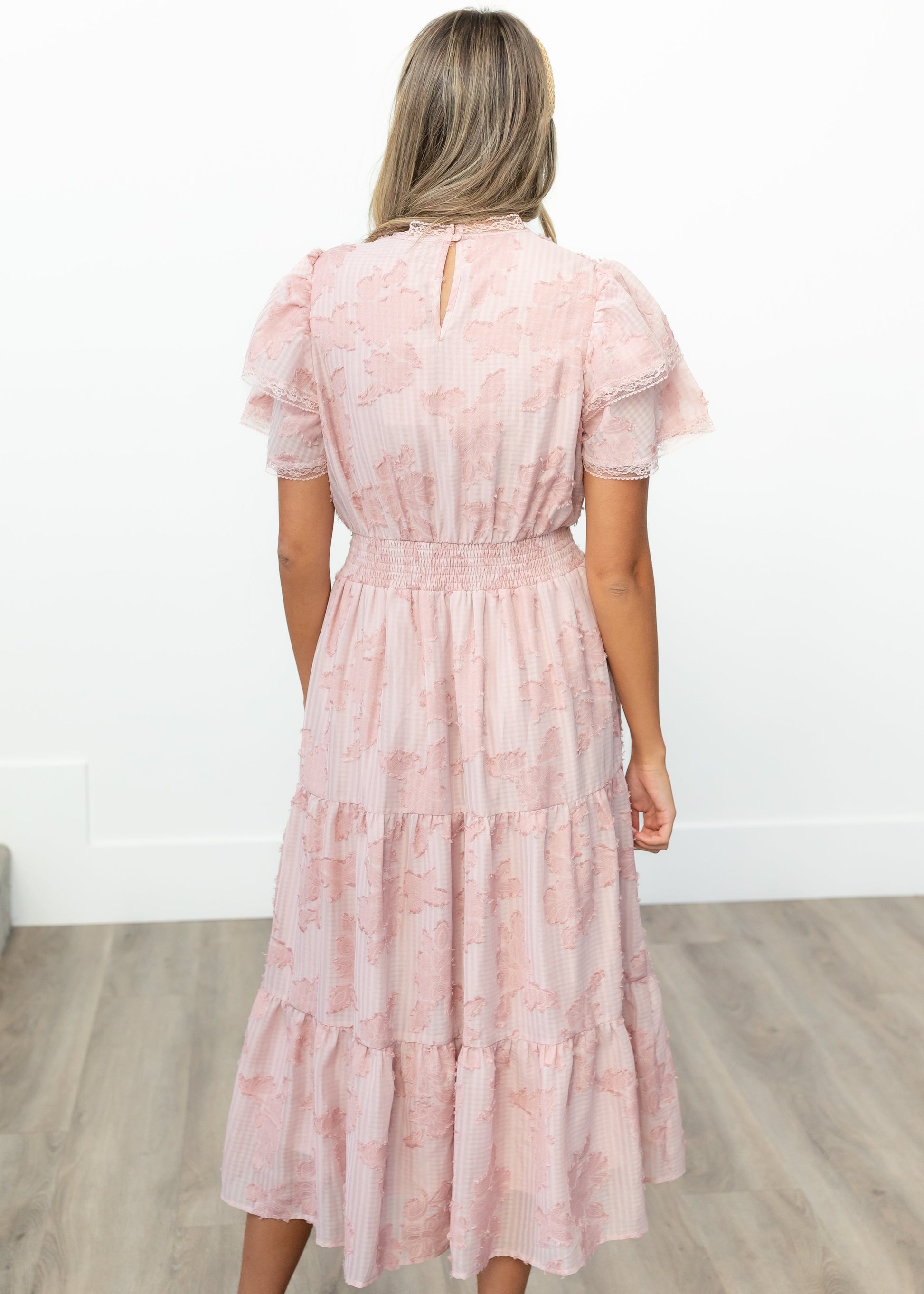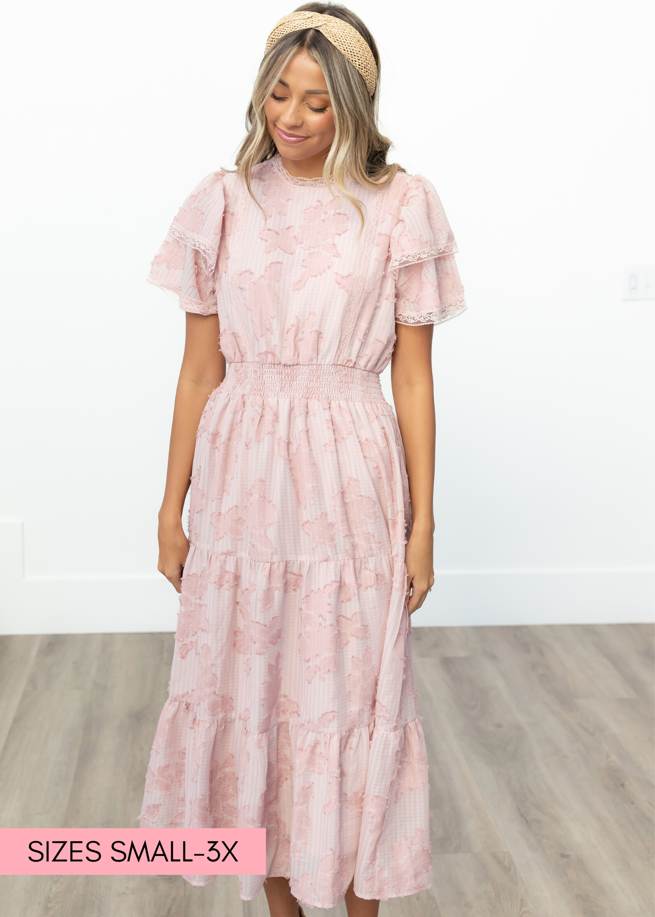 - Flutter sleeves, flowy tiered skirt, elastic waistband