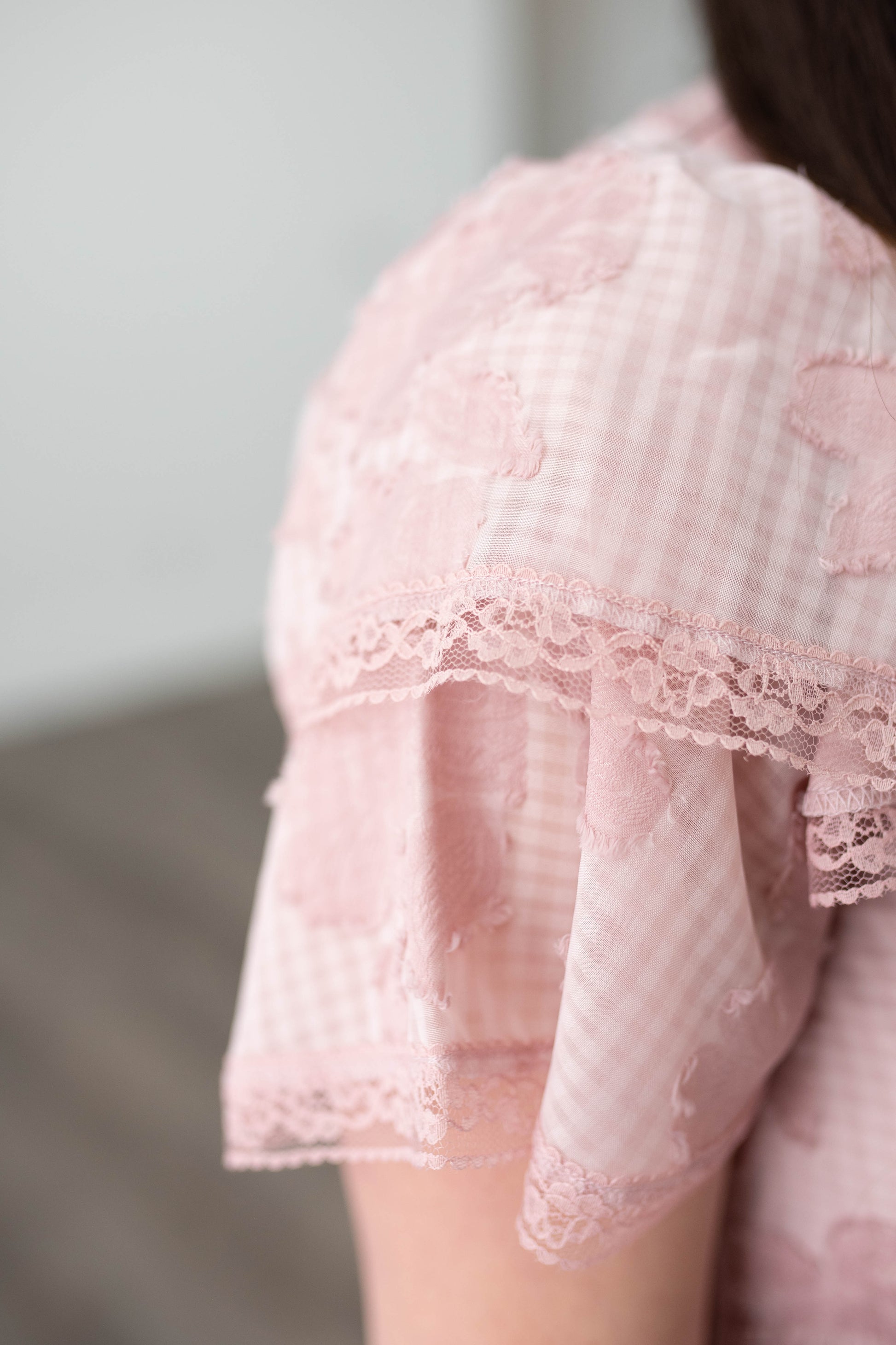 - Stunning mauve floral texture with a gingham print underlay. The cutest!