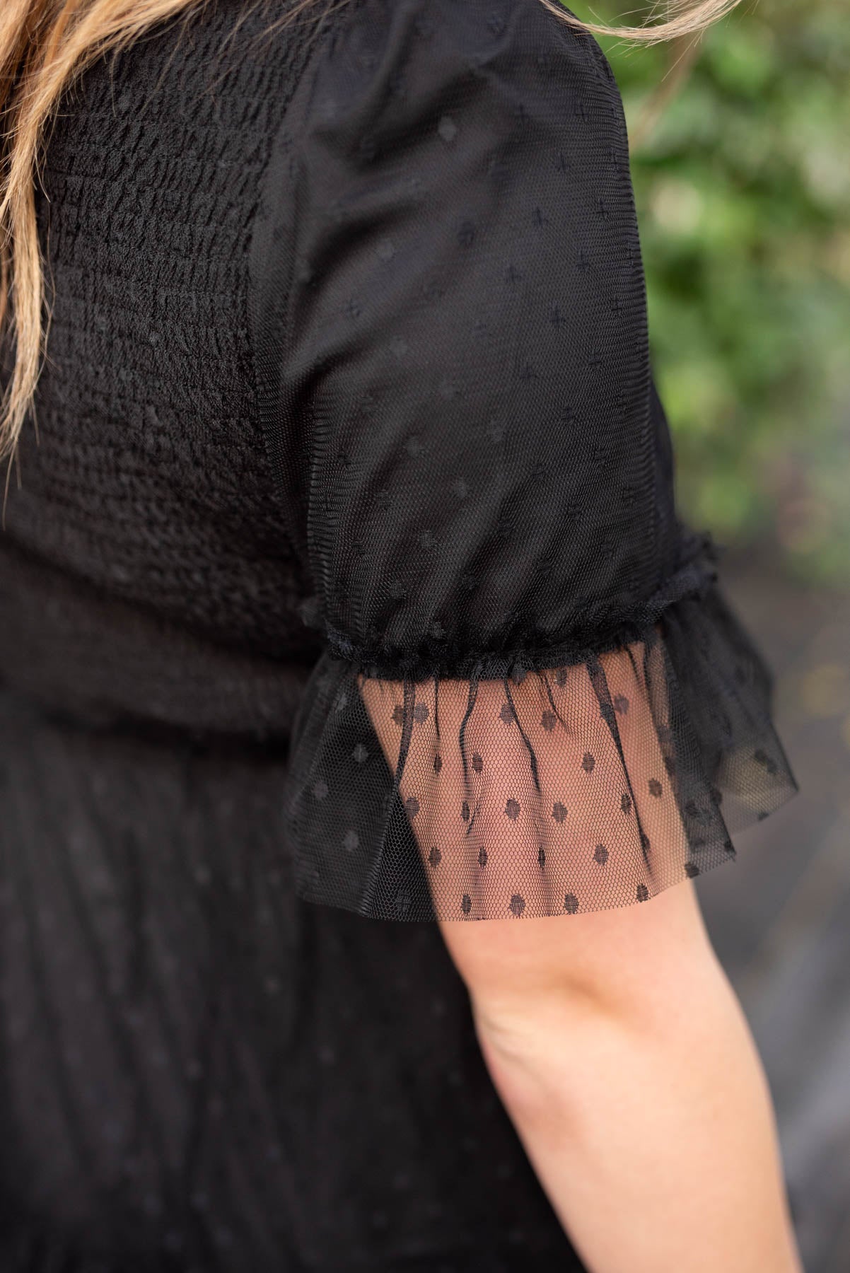 - Comfortable mesh overlay + ruffled mesh on sleeves