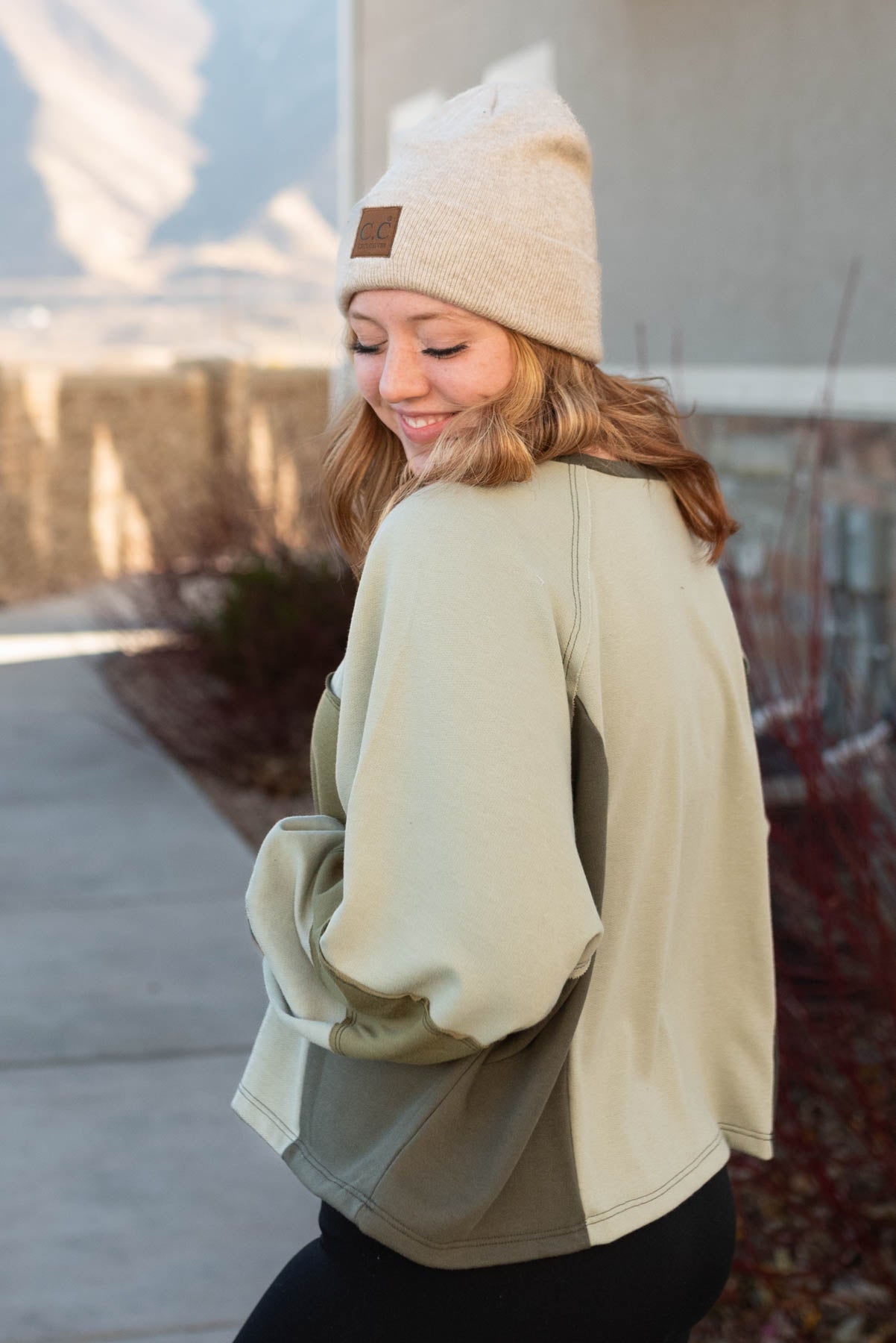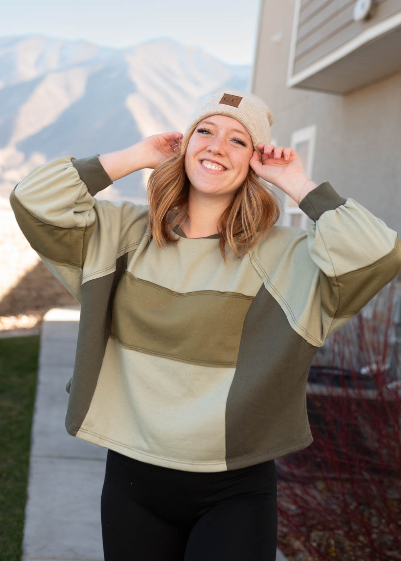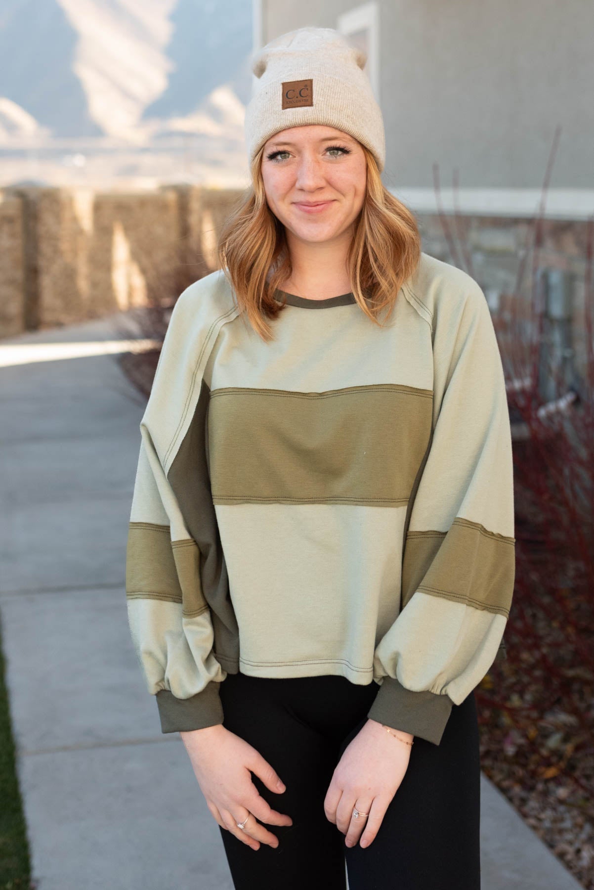 - Olive color blocking