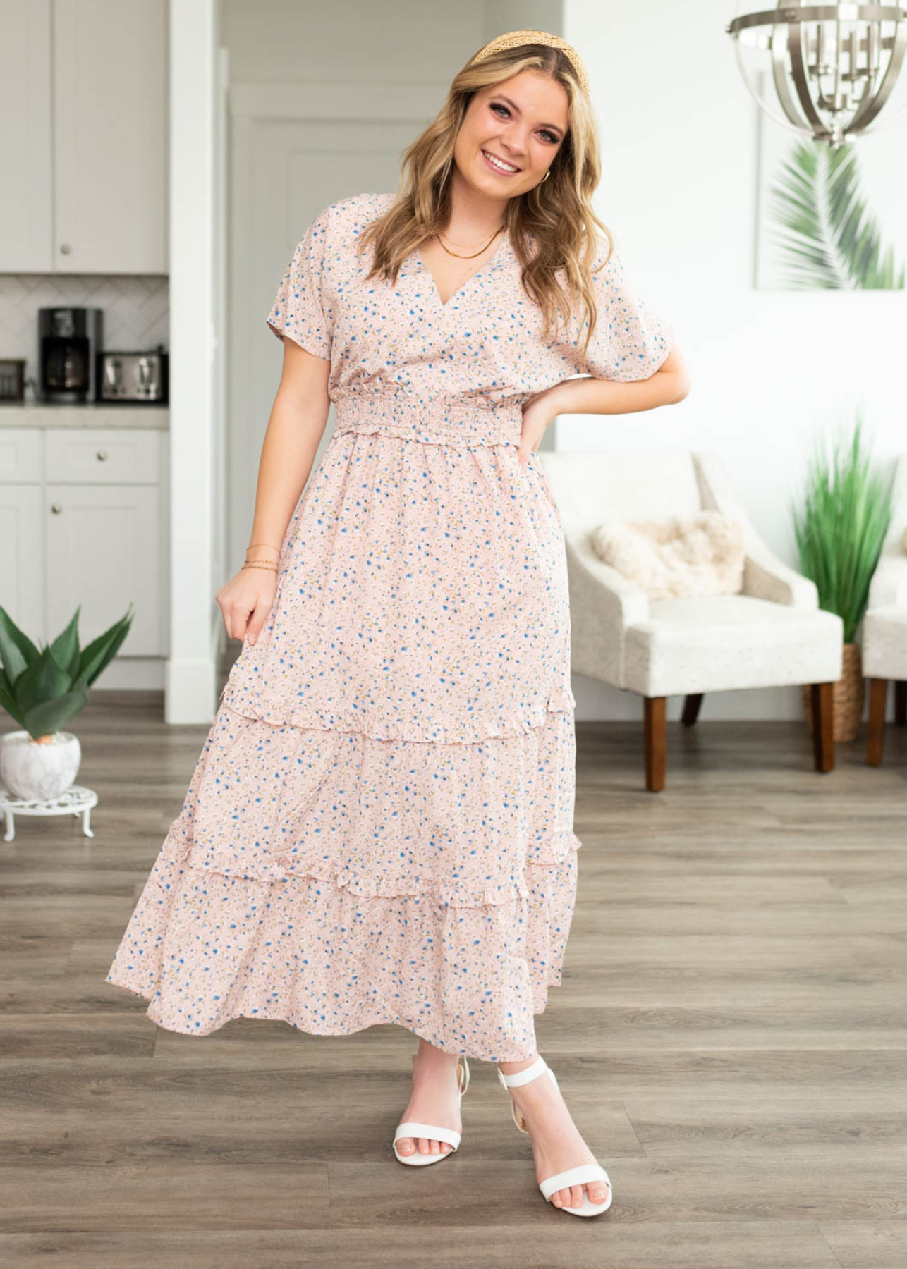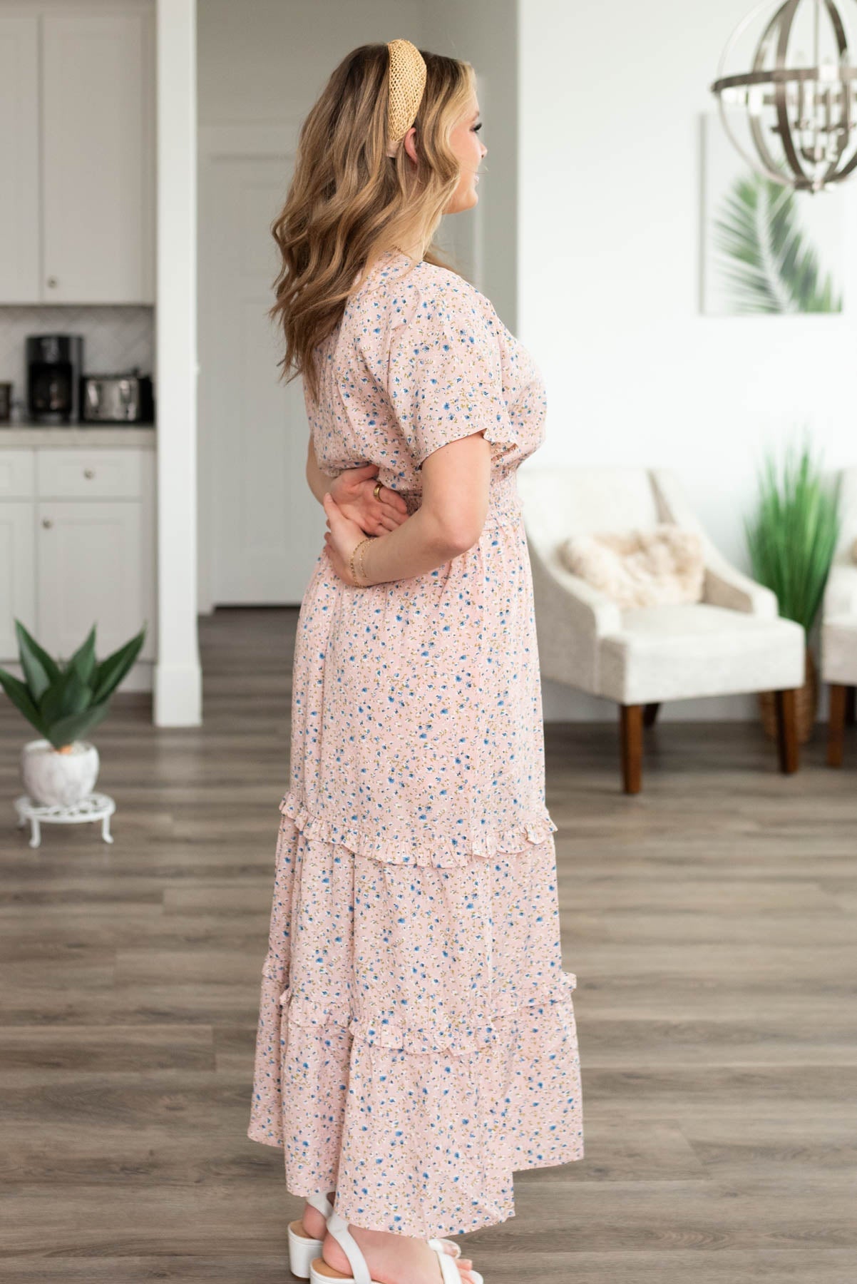 - Cool-toned pink with beautiful blue floral that's perfect for winter and spring