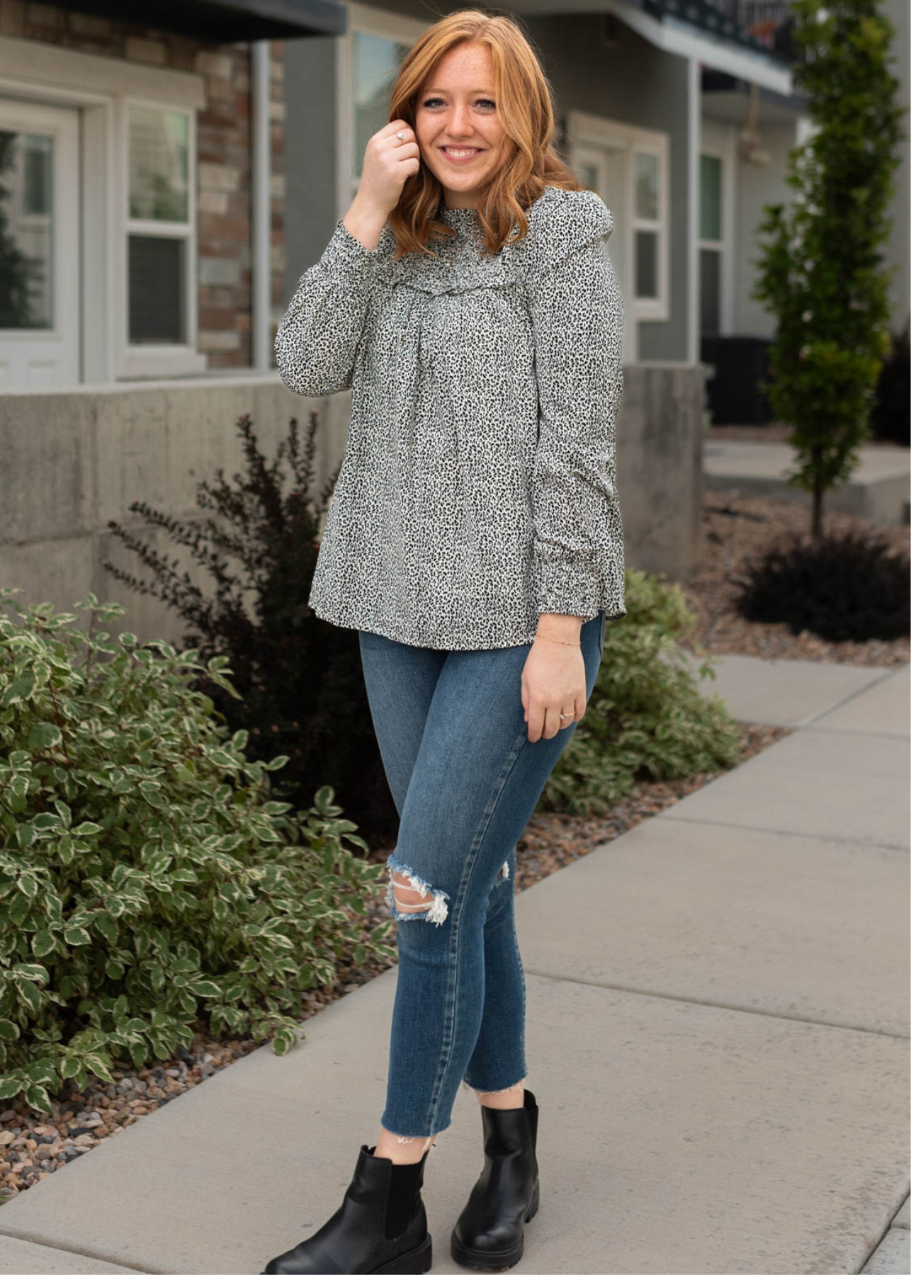 - Abstract animal print + rouched details