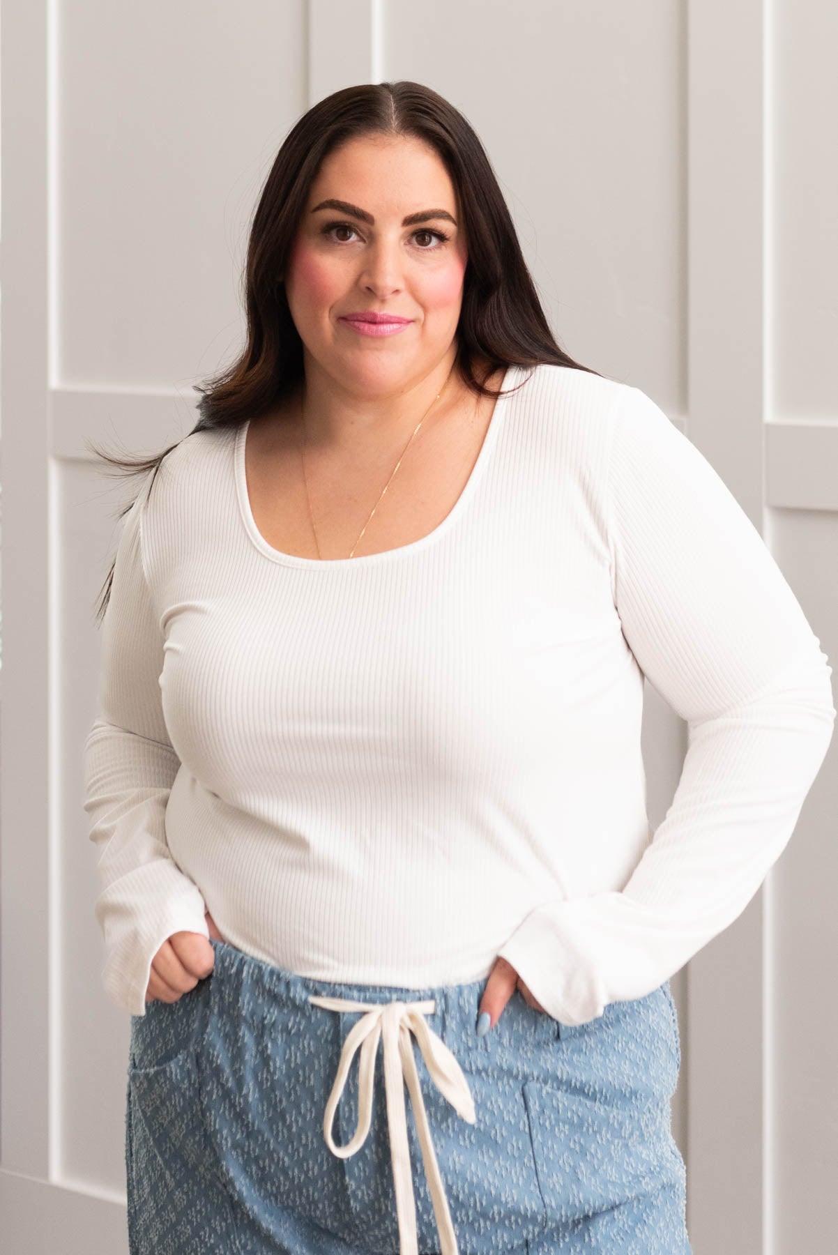 - Ribbed, stretchy material that's on the thinner side, so perfect for layering