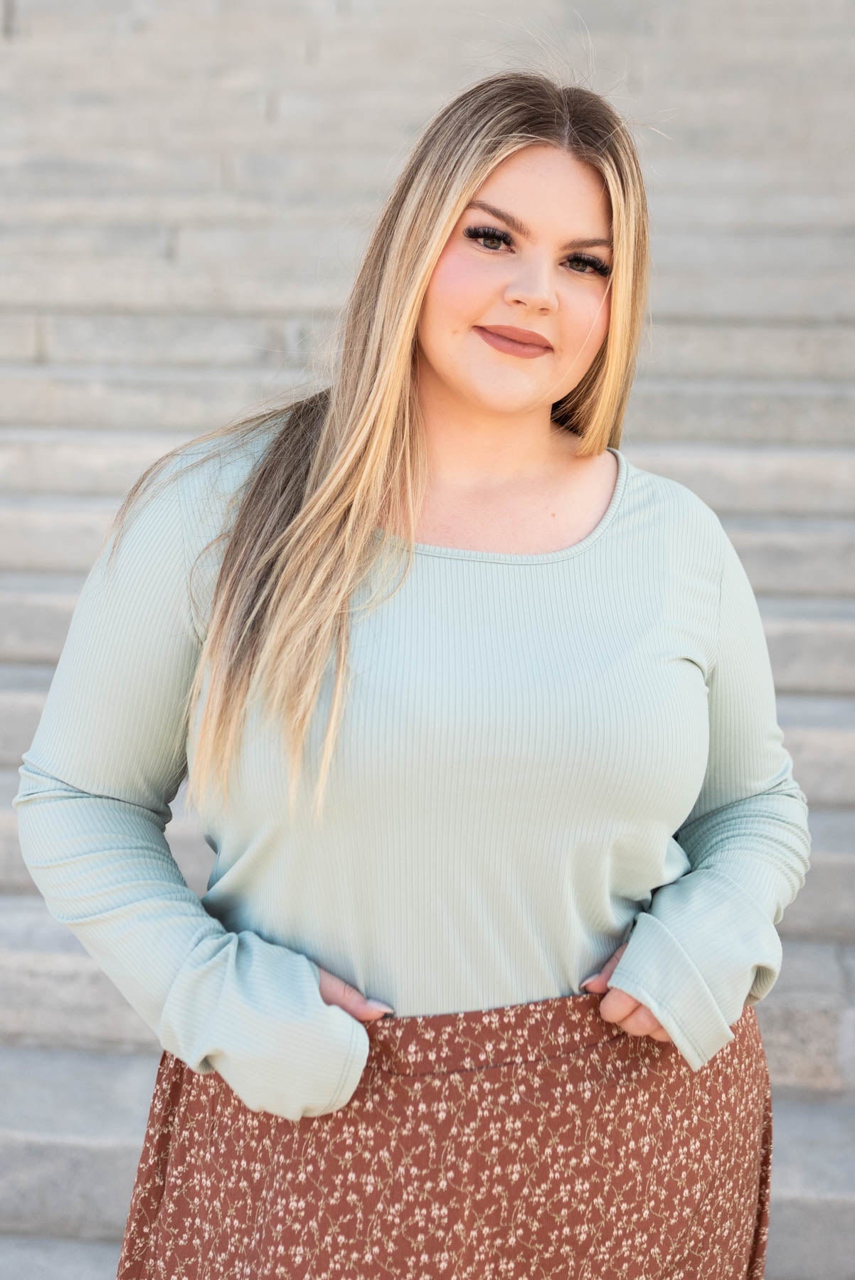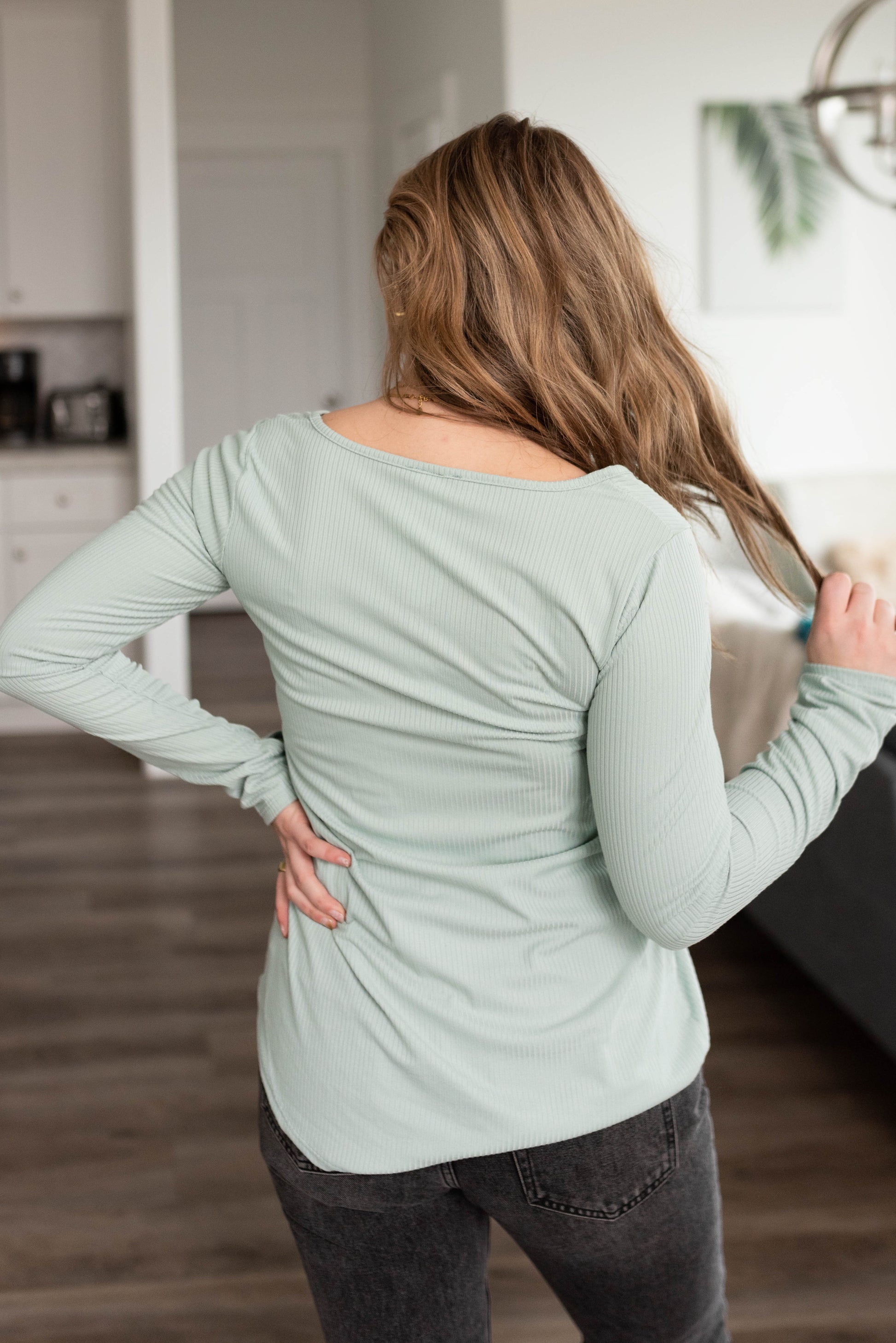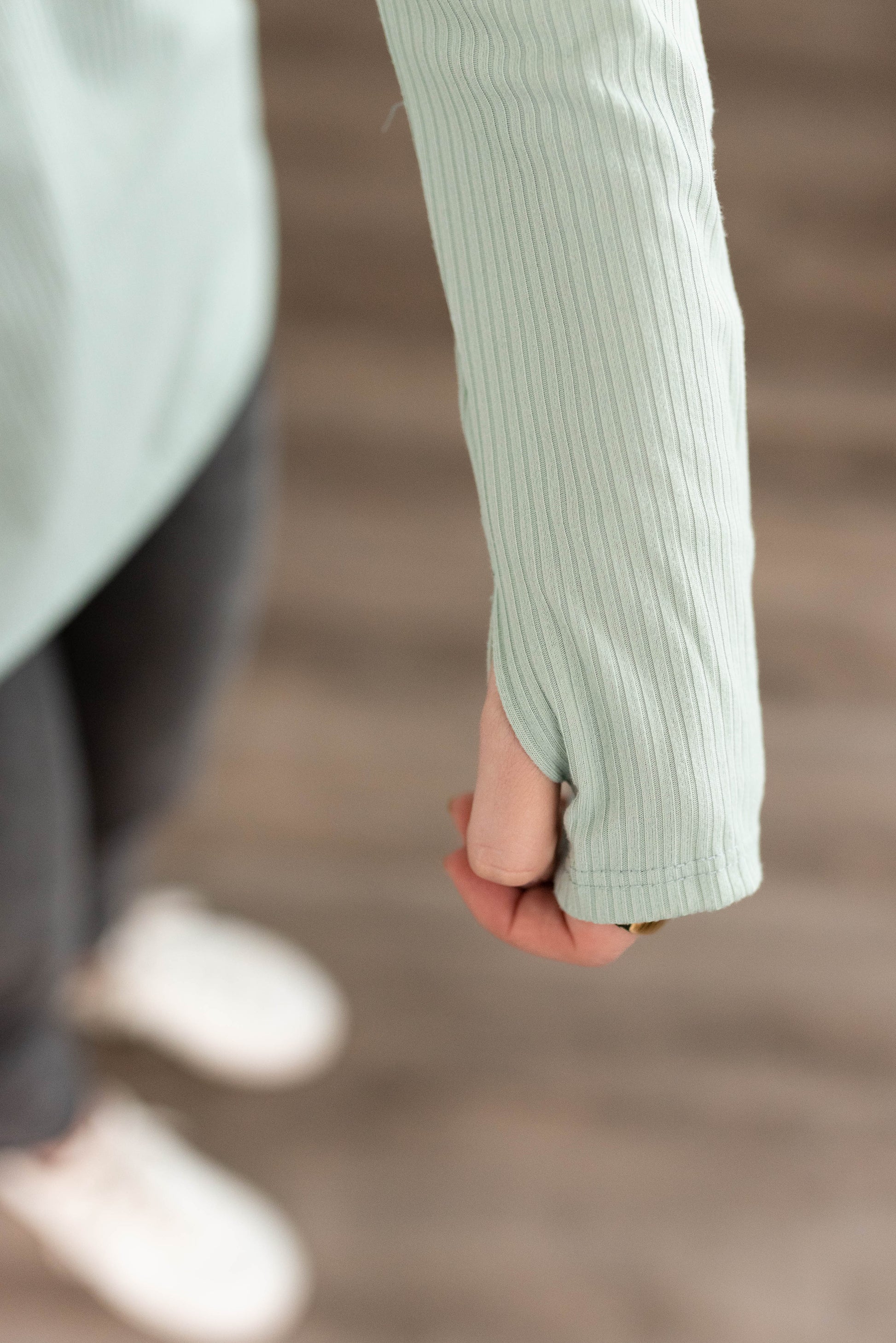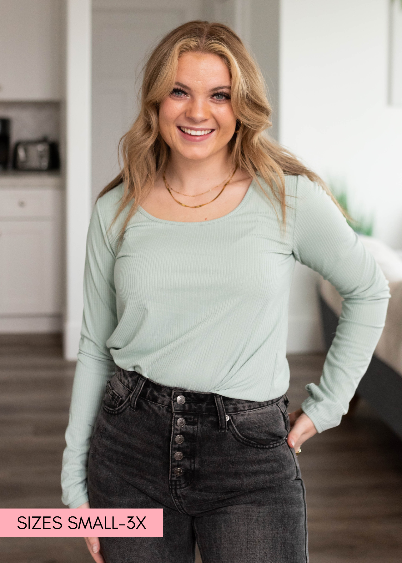 - Ribbed, stretchy material that's on the thinner side, so perfect for layering