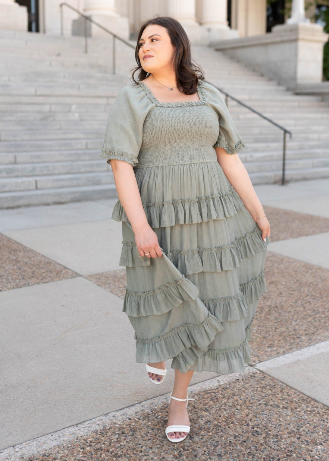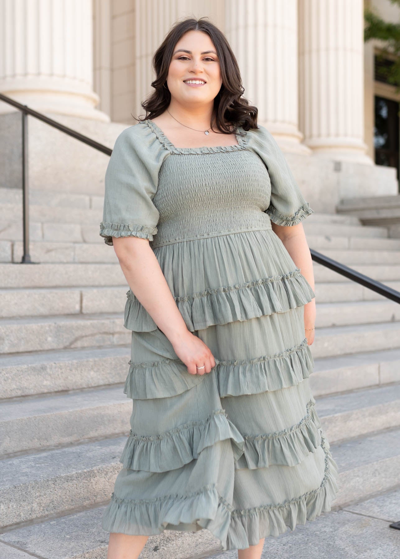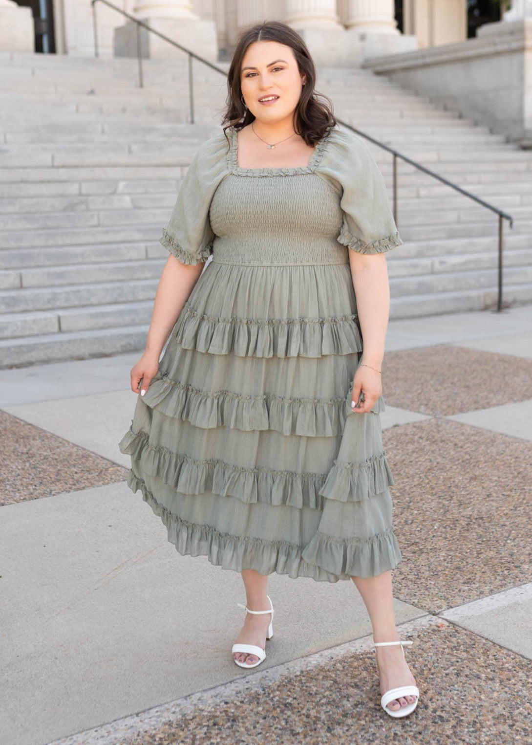 - Beautiful tiered skirt with cascading ruffles for an ultra-flattering fit