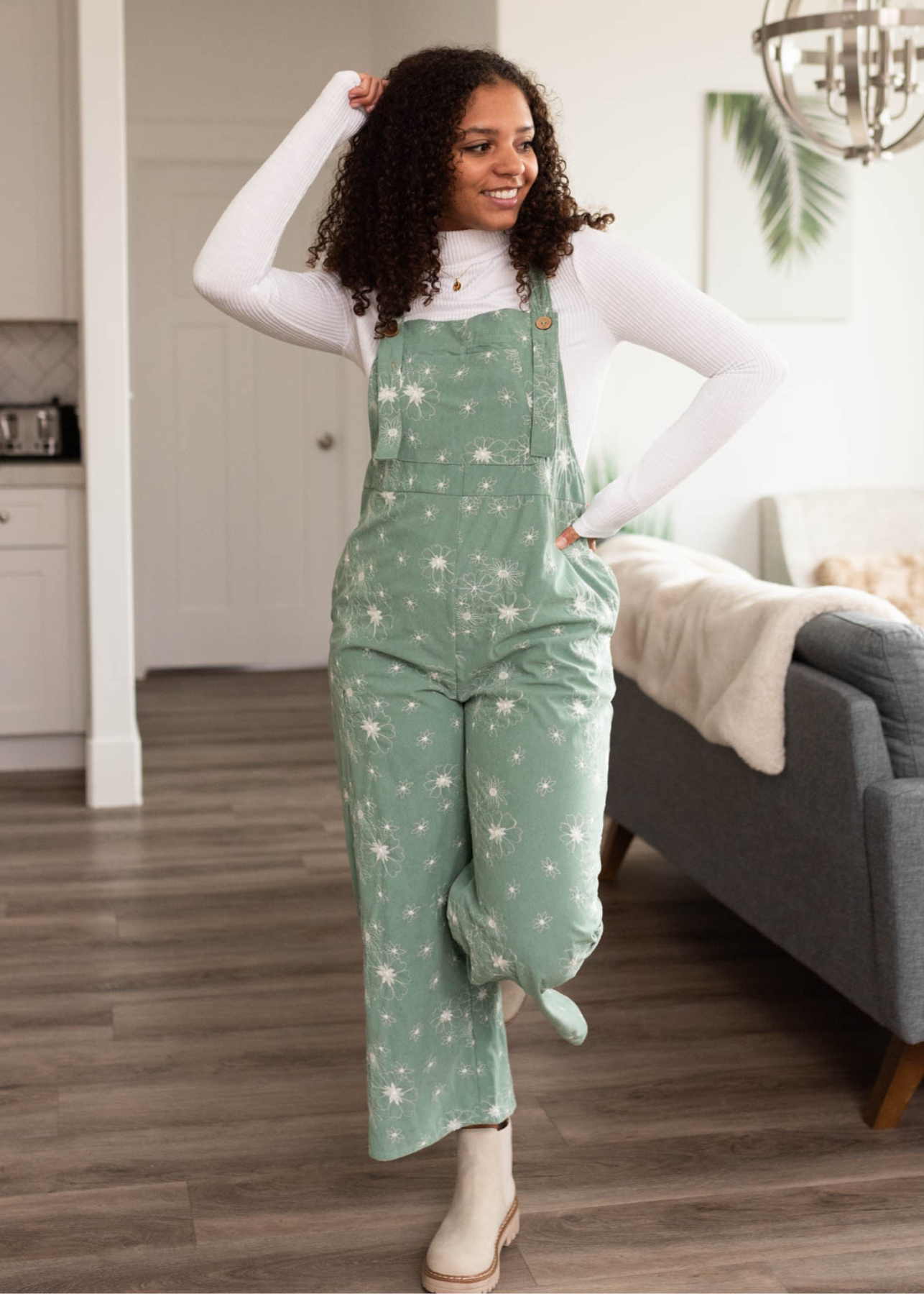 Krista Green Embroidered Overalls