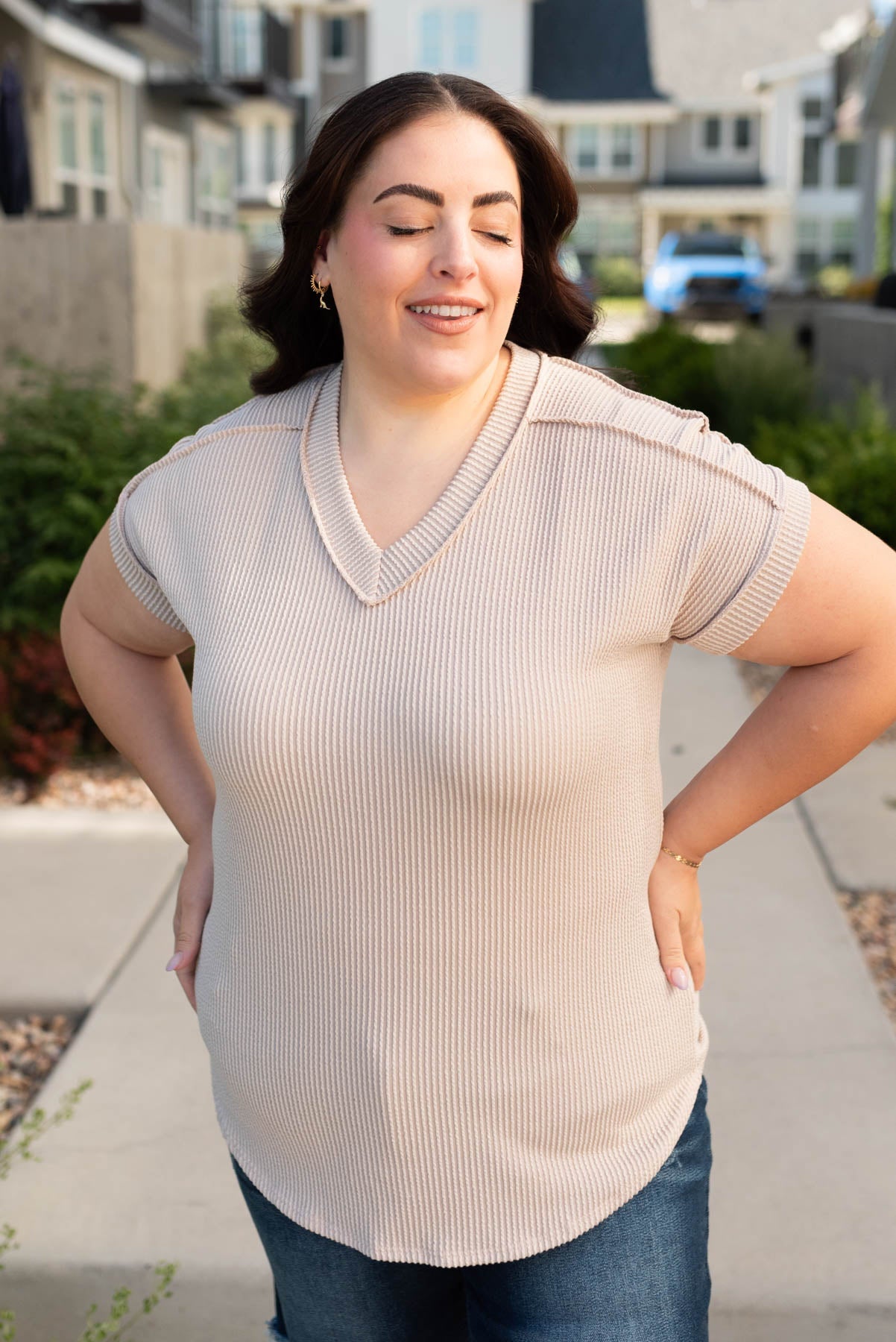 Liliana Oatmeal Ribbed Top