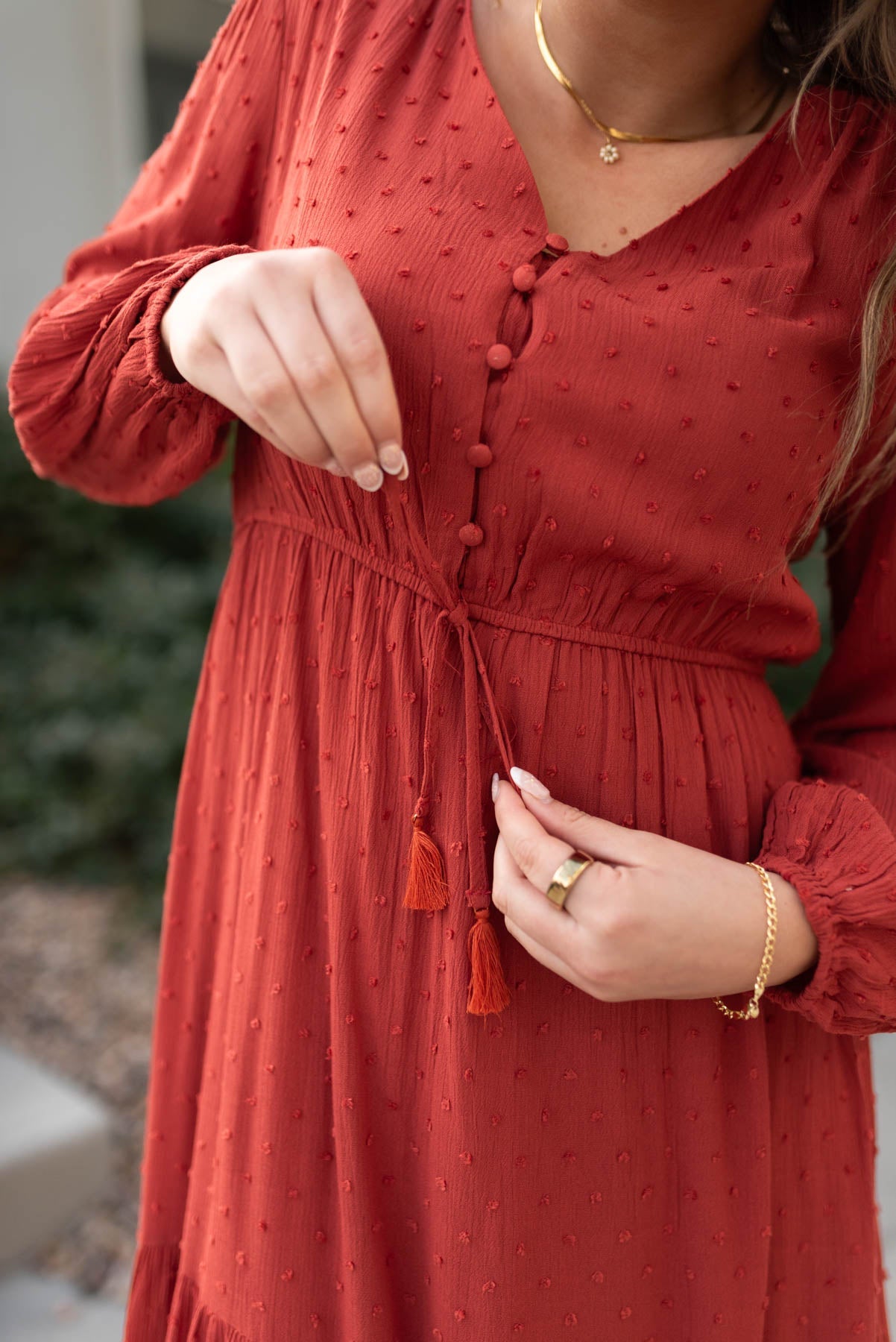 - Tie detail on waist