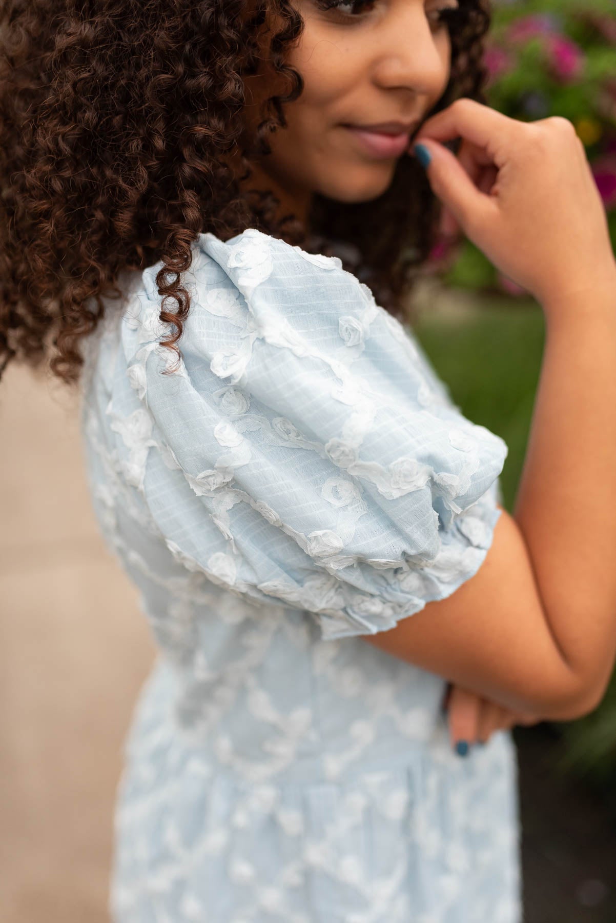 - Beautiful 3D-type textured material in the prettiest shade of blue