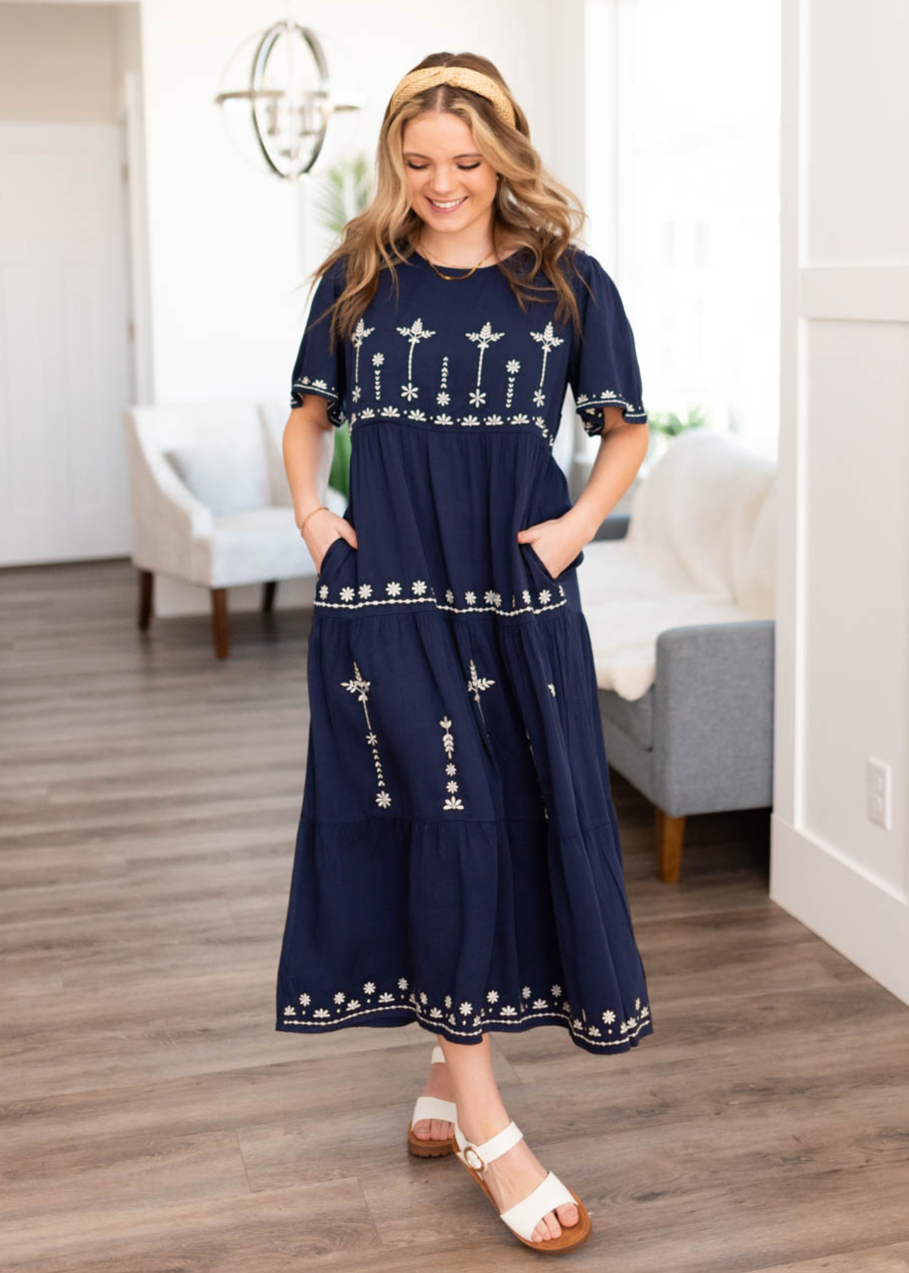 - Beautiful embroidered details to make the dress feel ultra-feminine