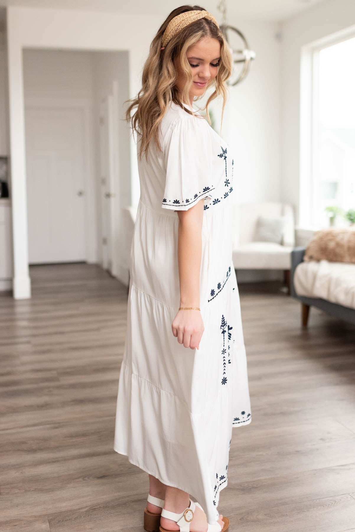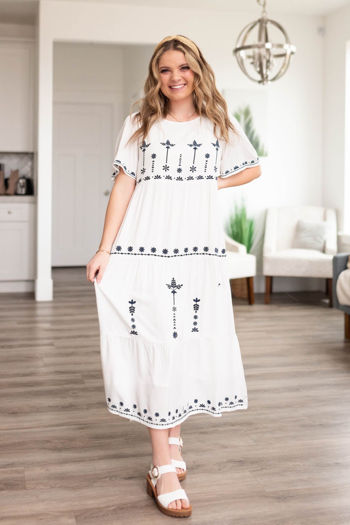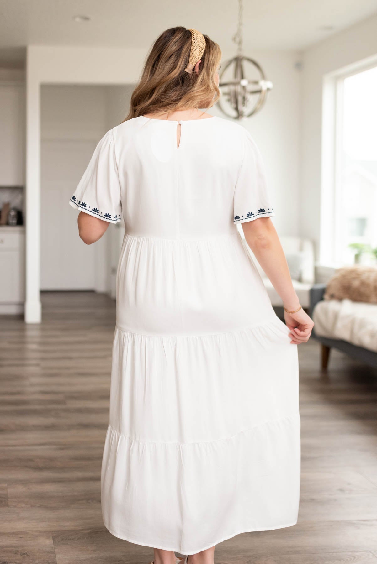 - Beautiful embroidered details to make the dress feel ultra-feminine