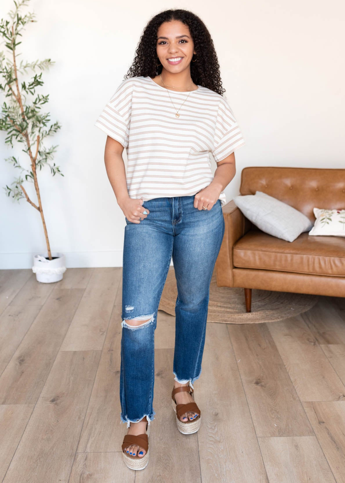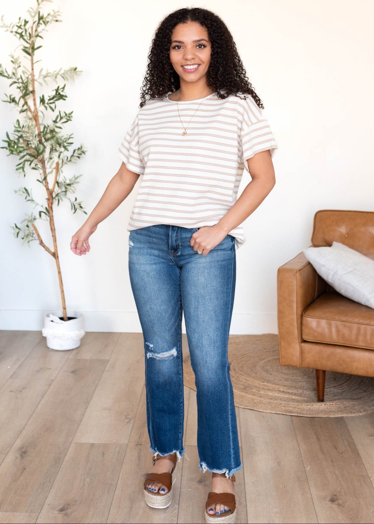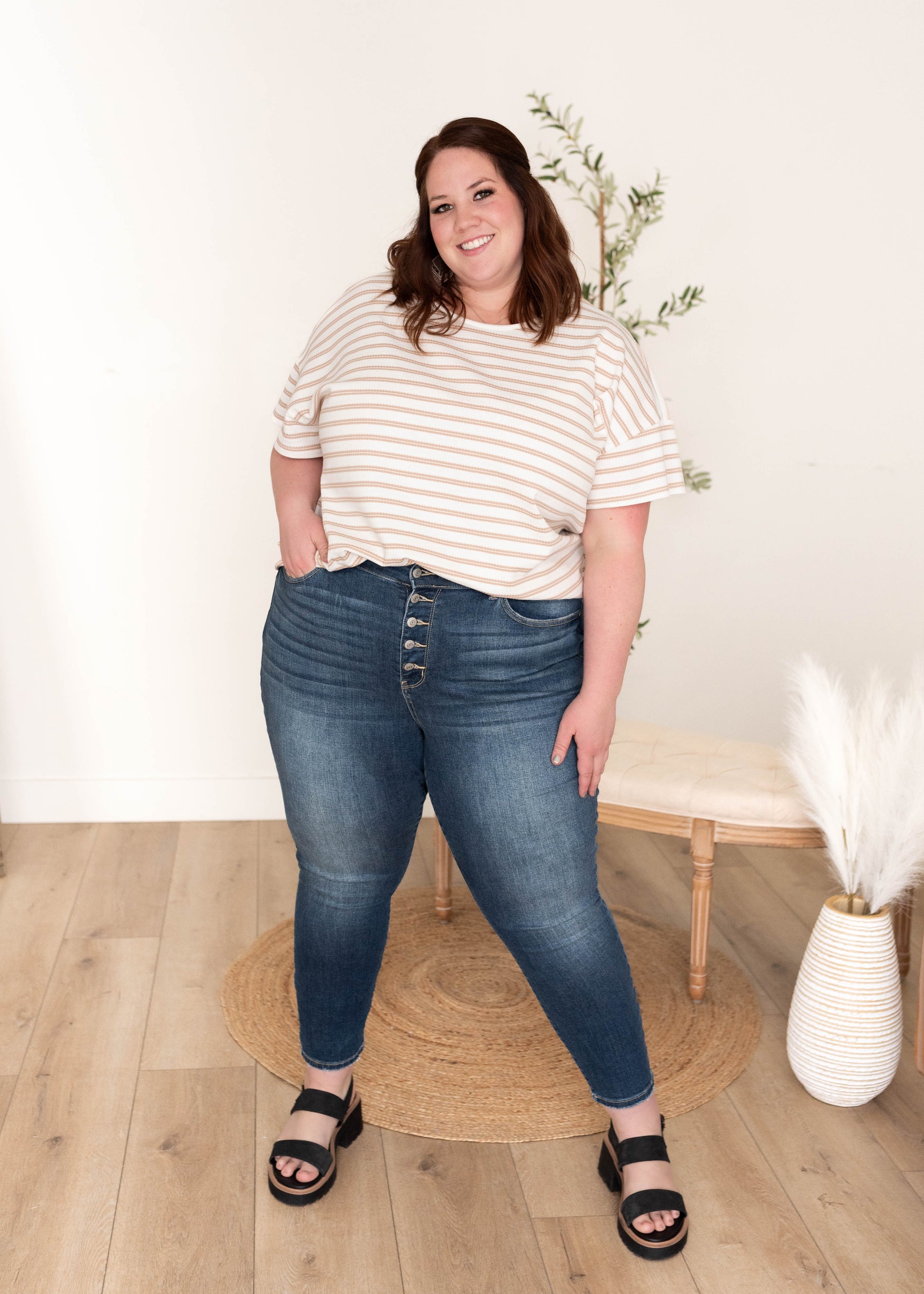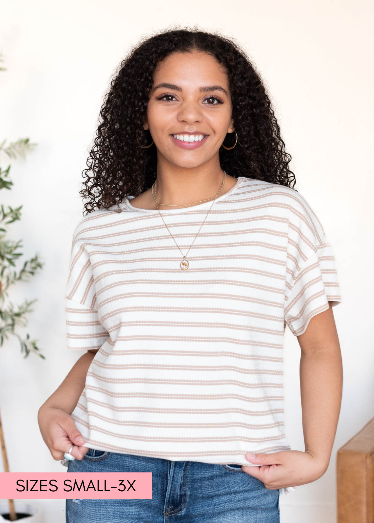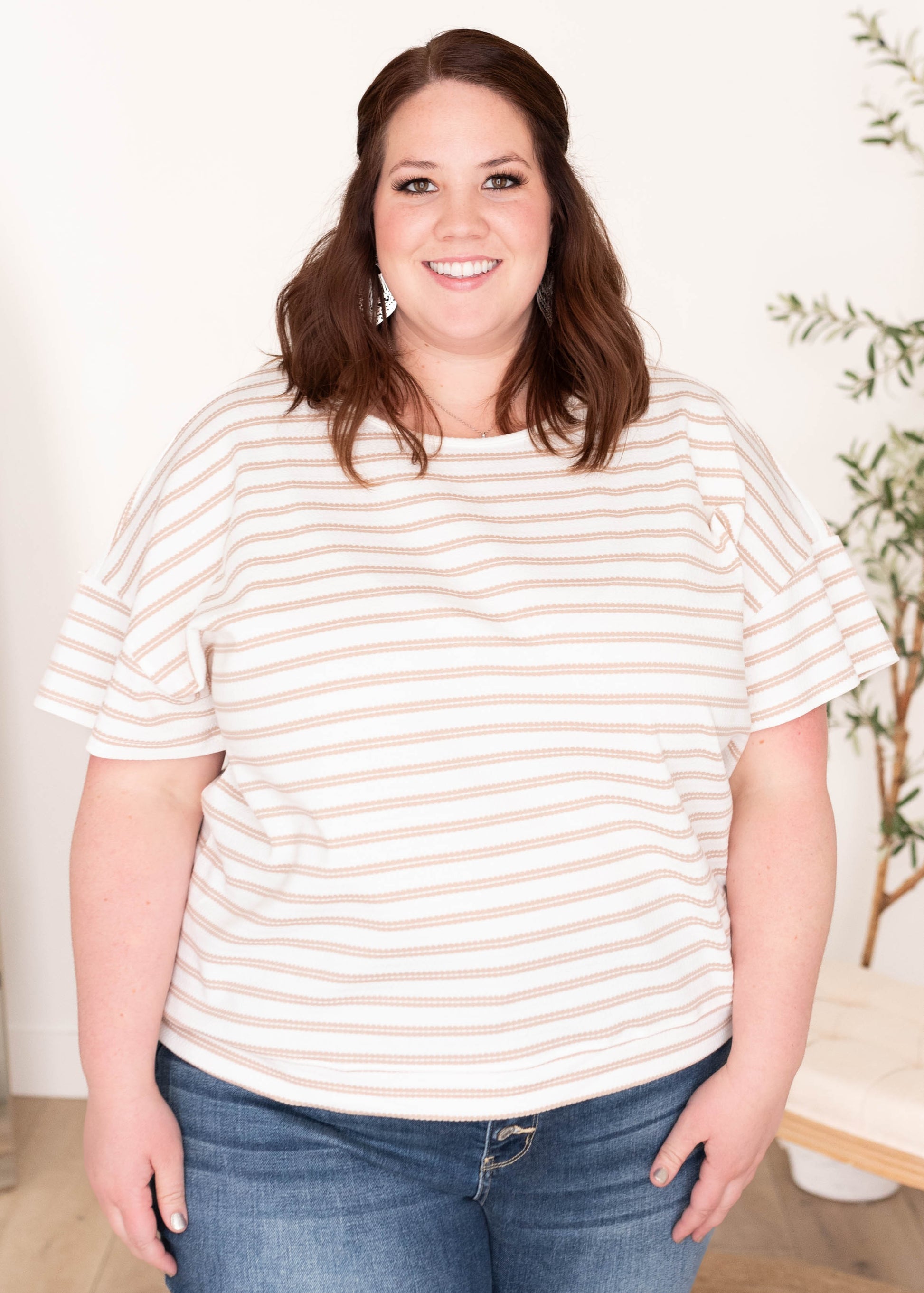 Luann Taupe Stripe Top