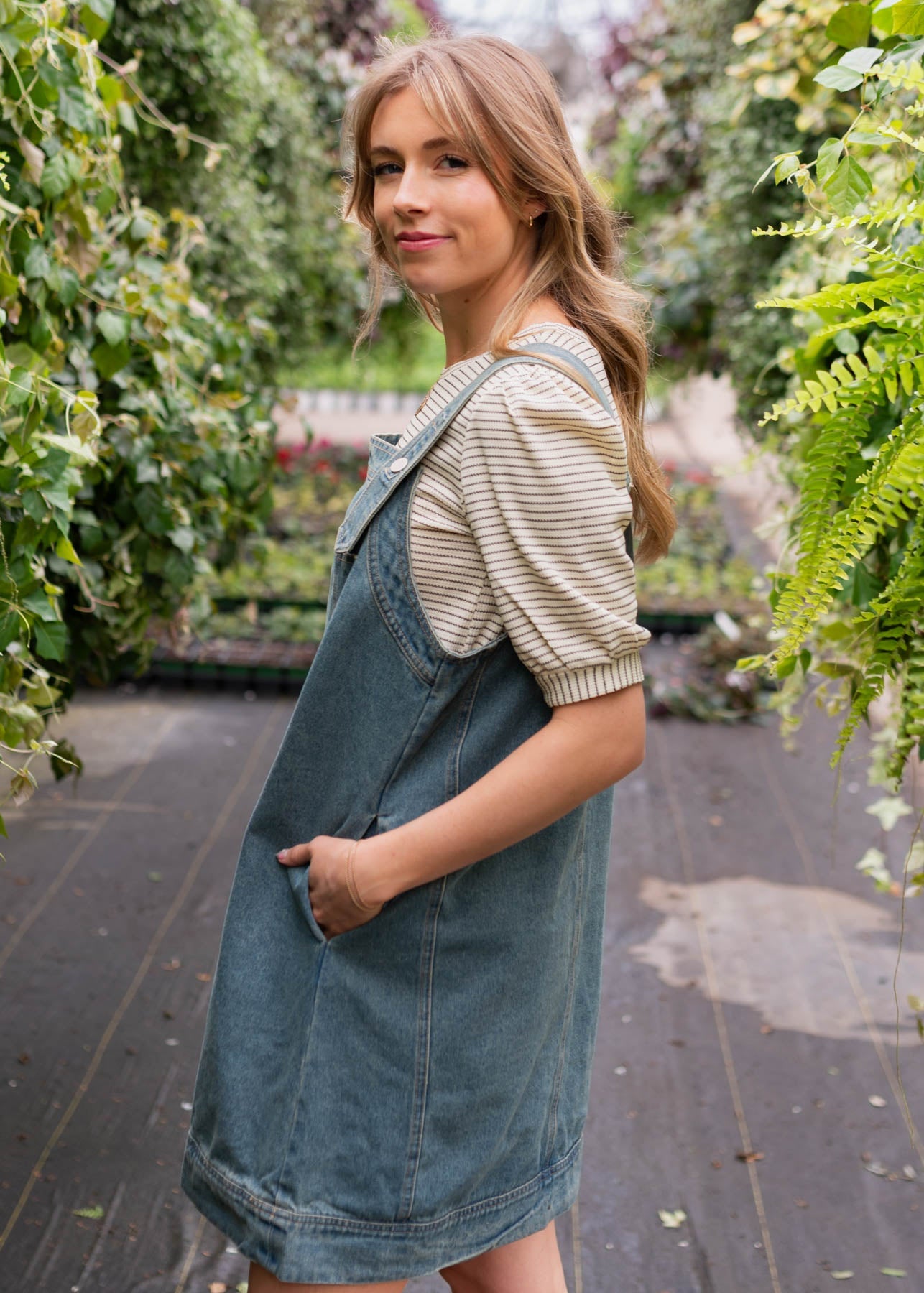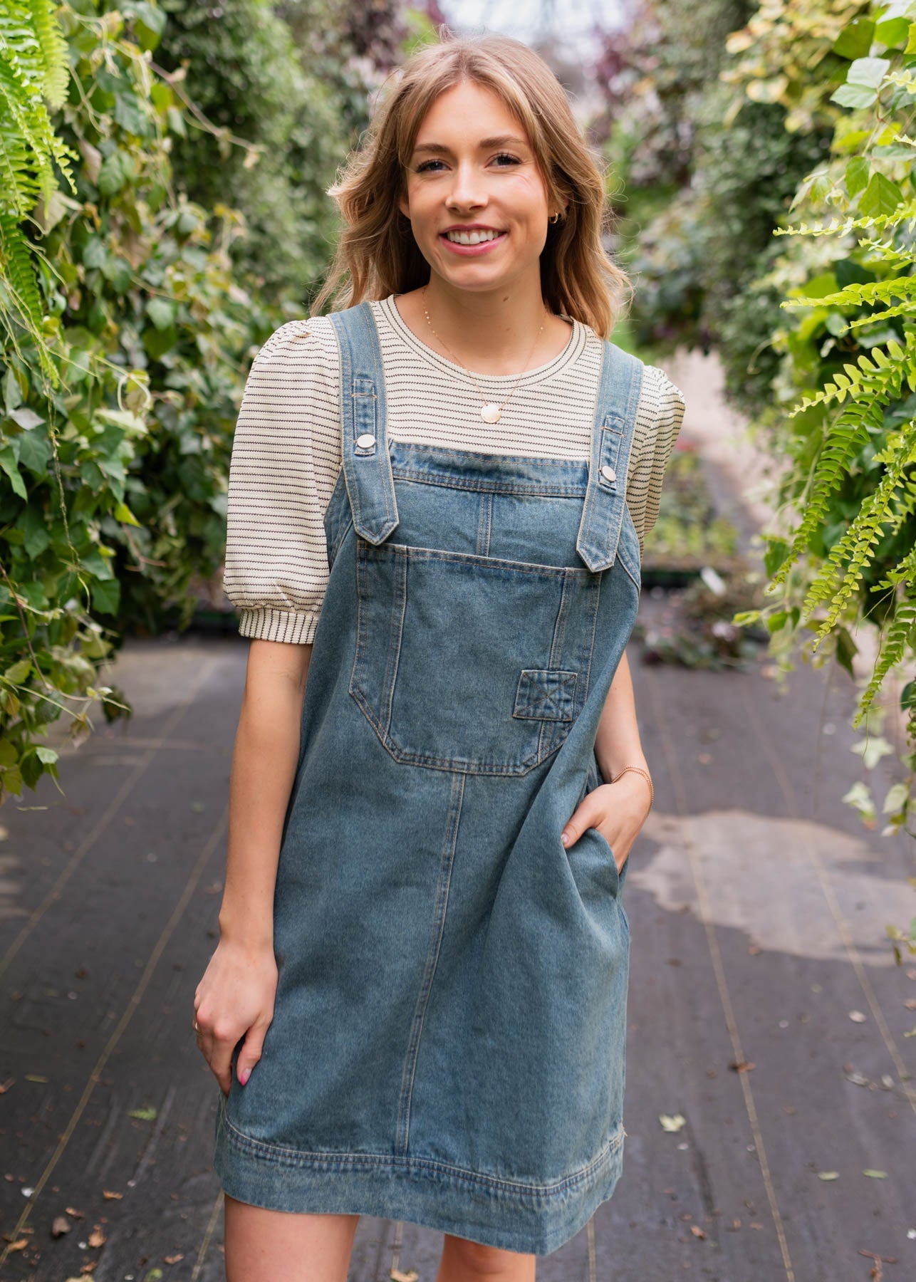 Lucille Washed Denim Overall Dress