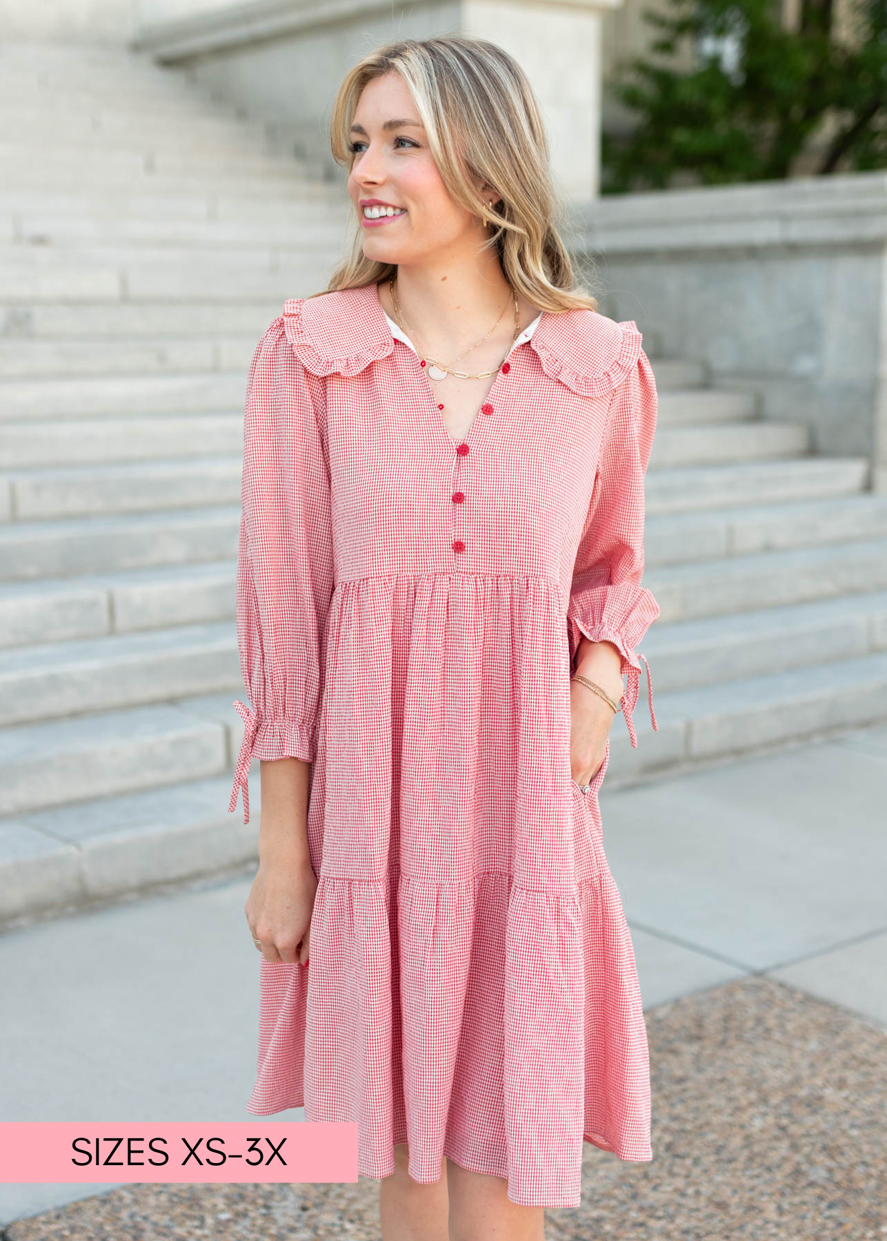 Macie Red Gingham Dress