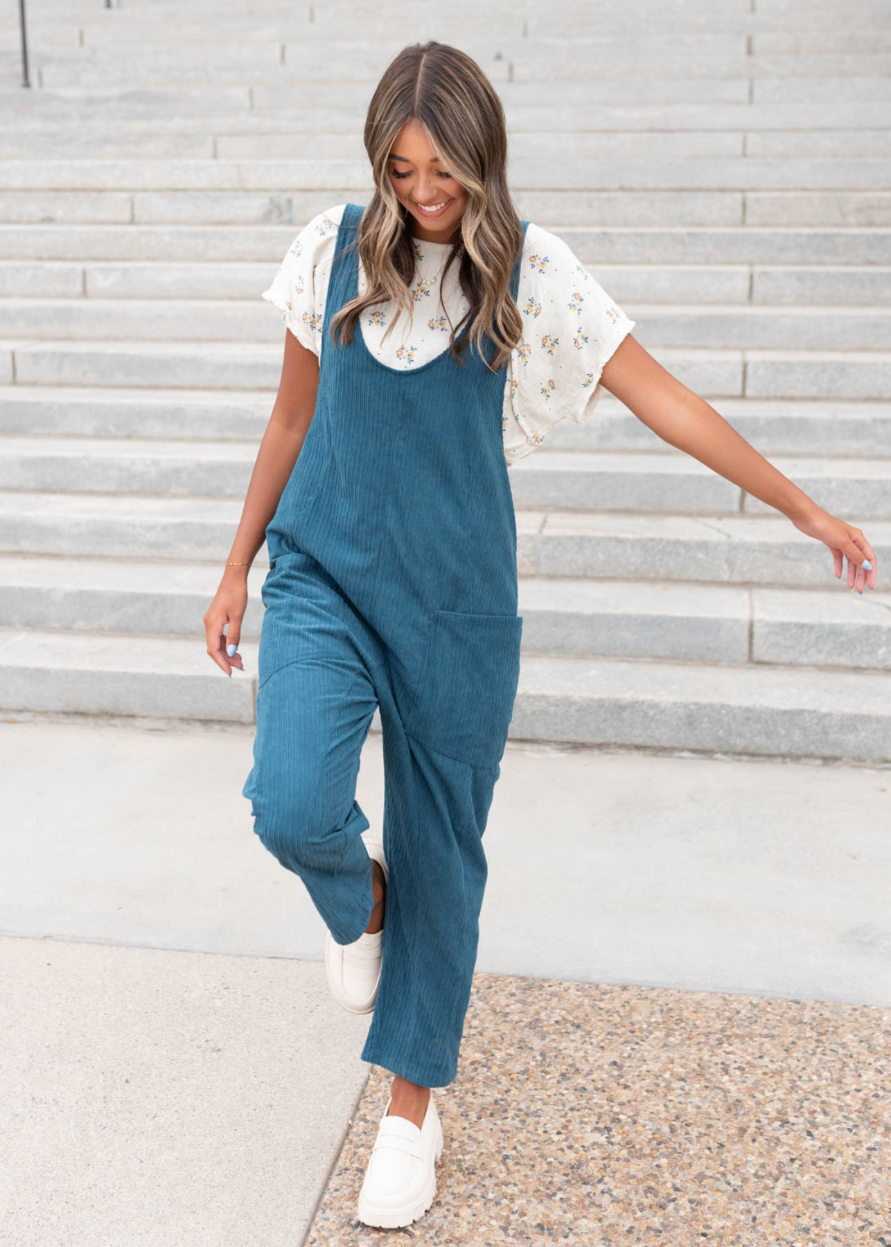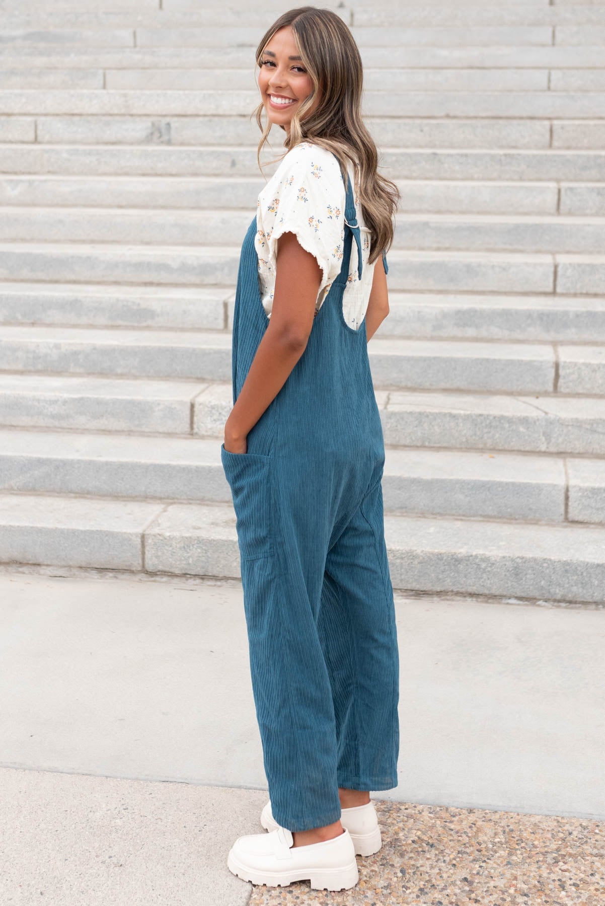 Maisy Deep Aqua Corduroy Overalls