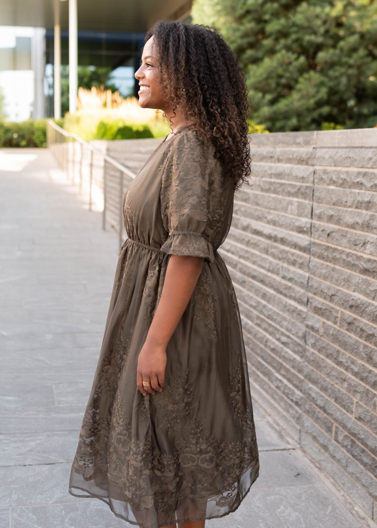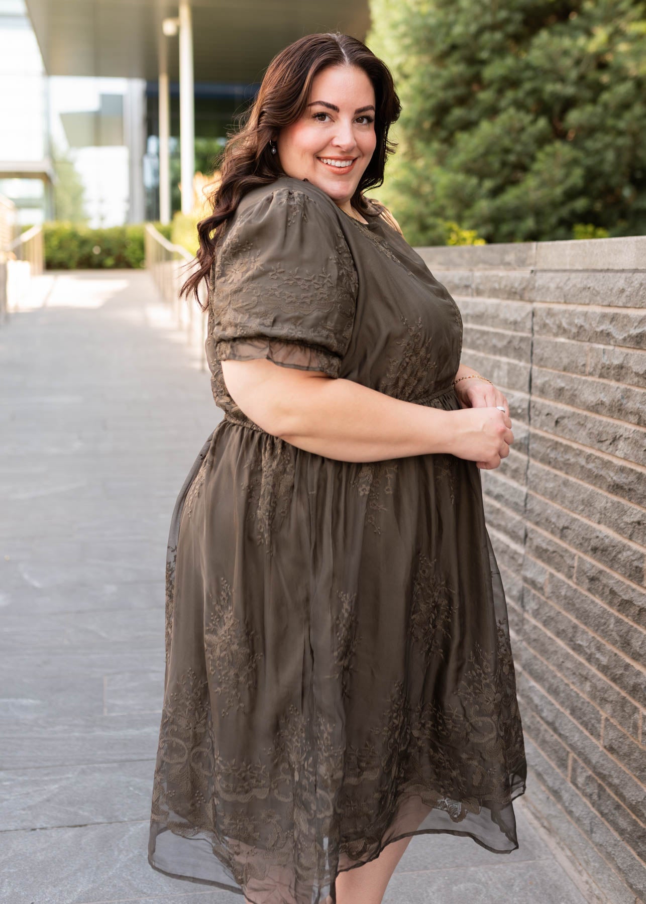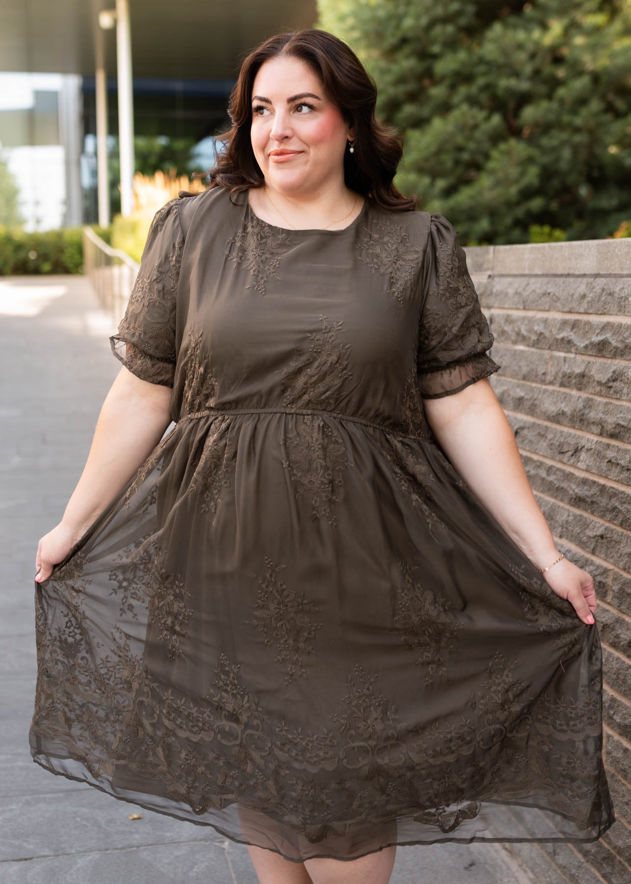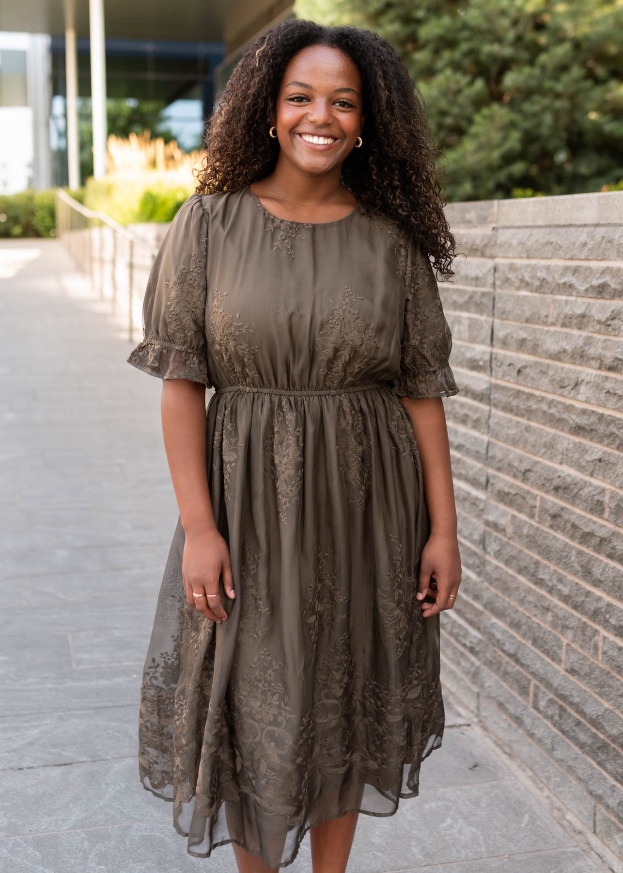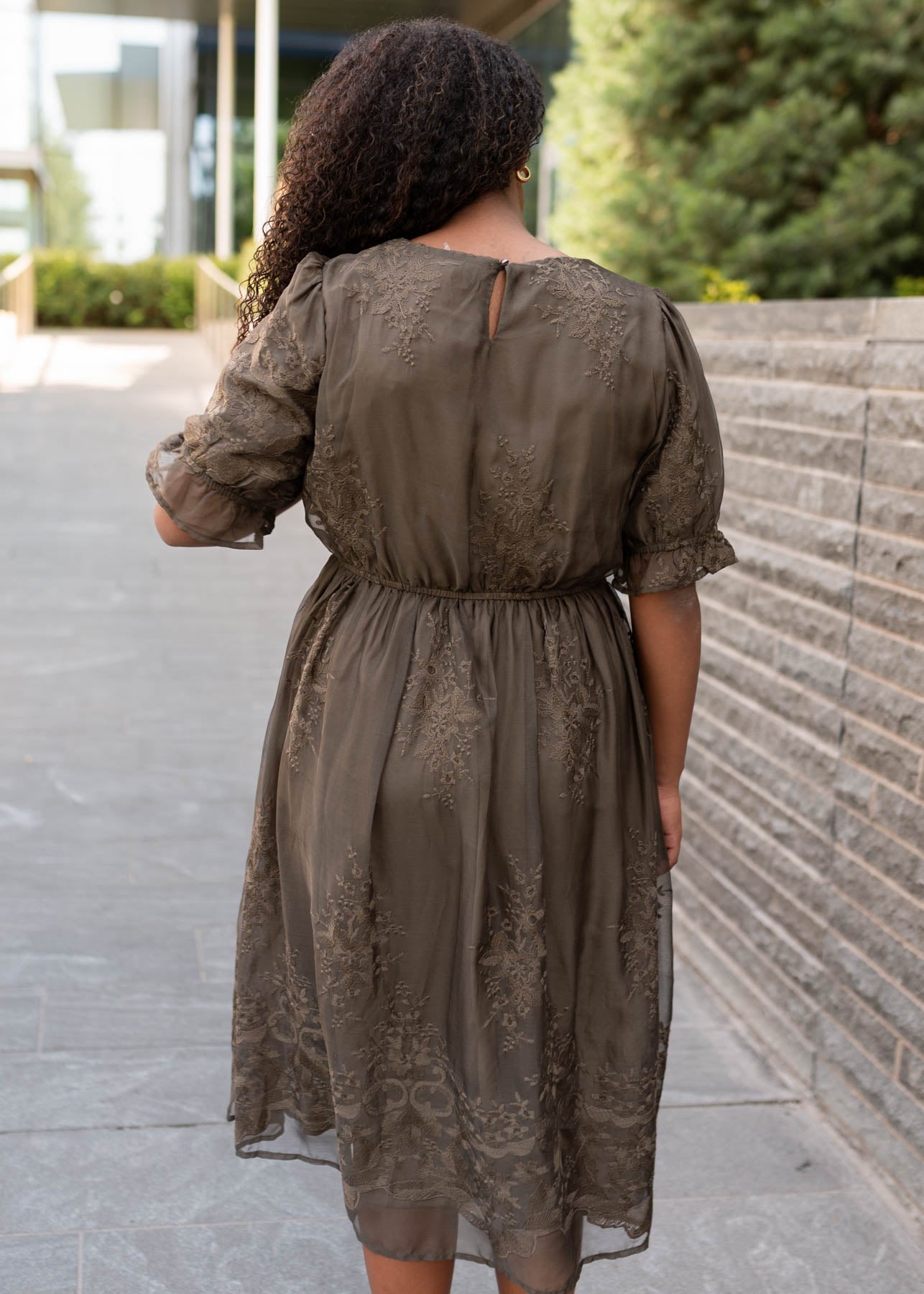 Mary Dark Olive Embroidered Dress