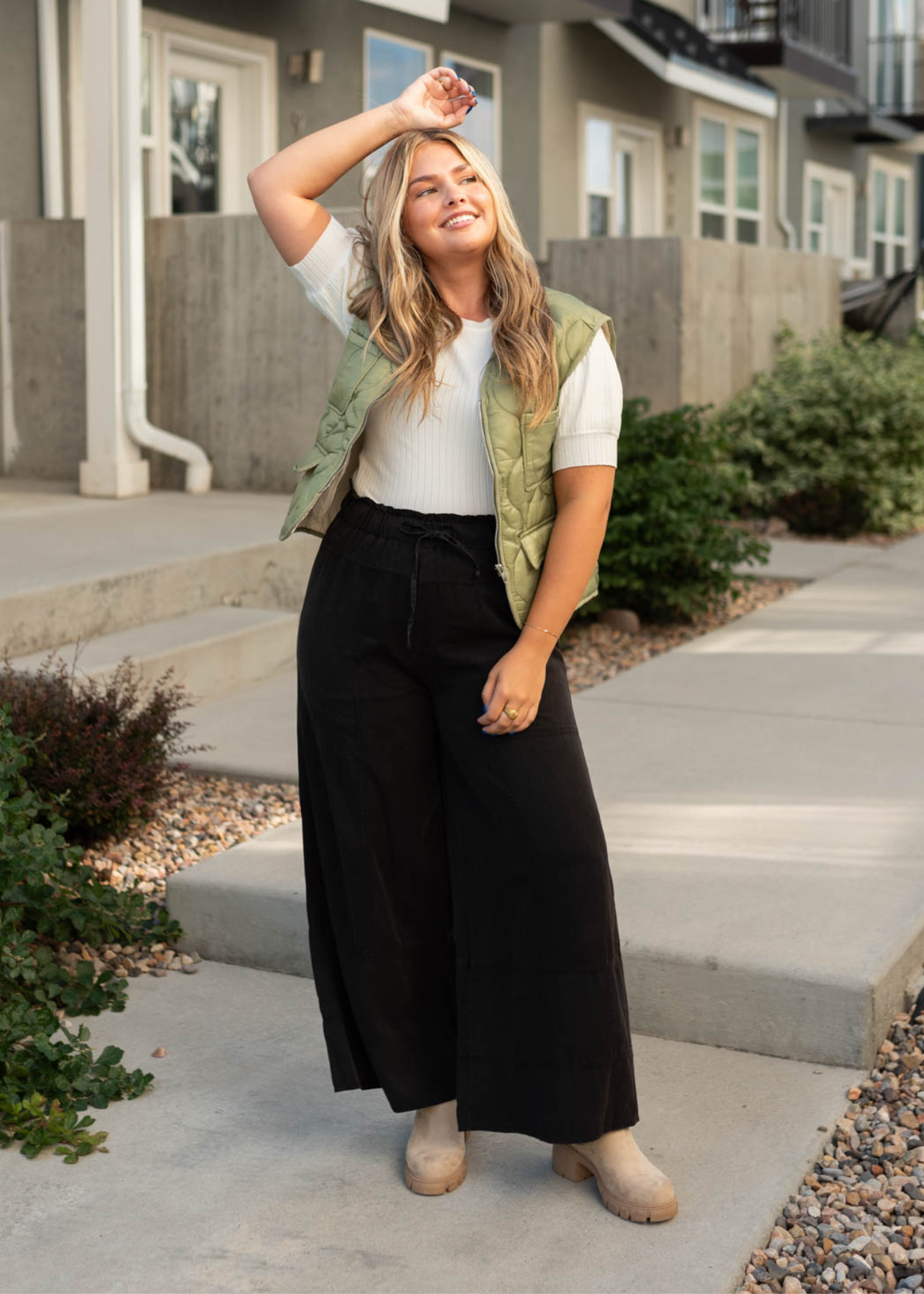 - Runs TTS with an elastic waistband and draw string but not a lot of stretch. Size up if in-between