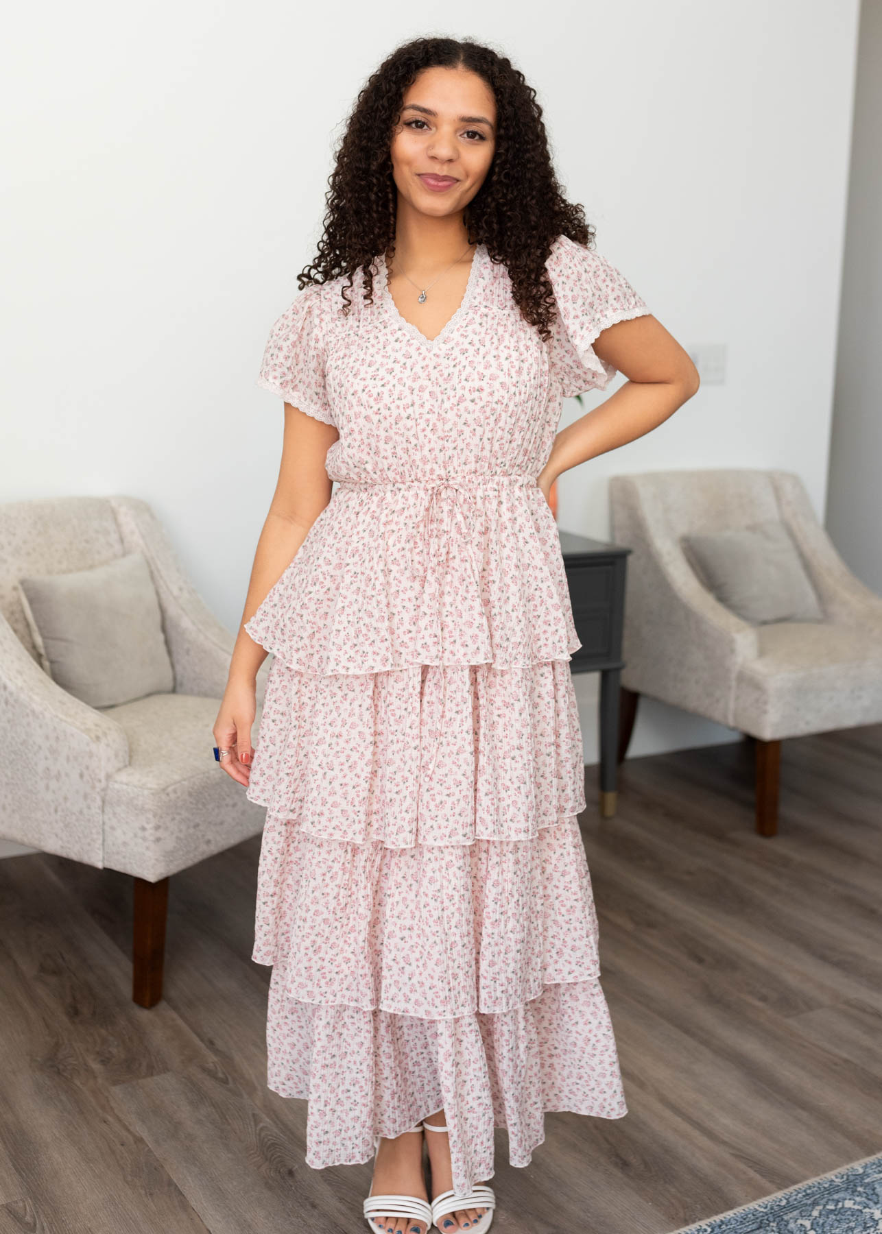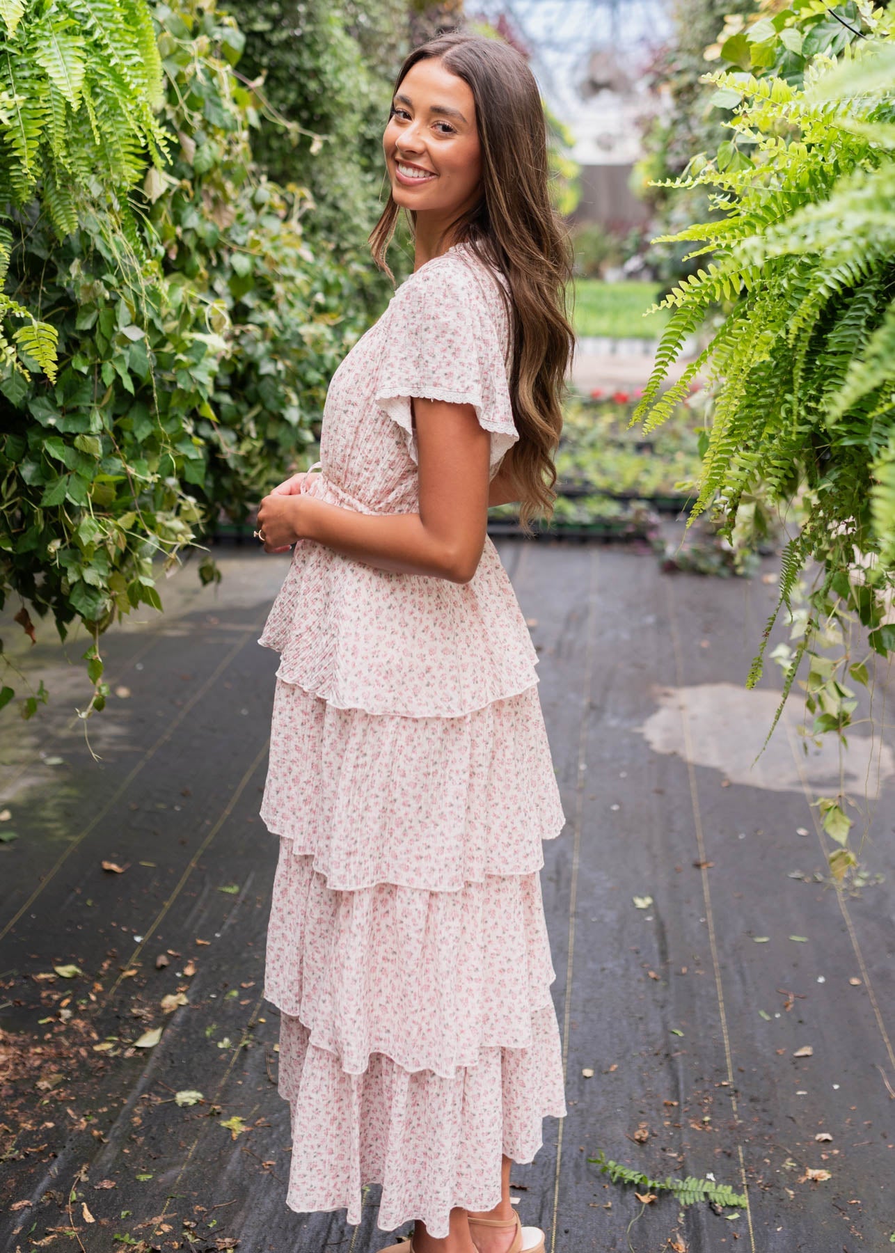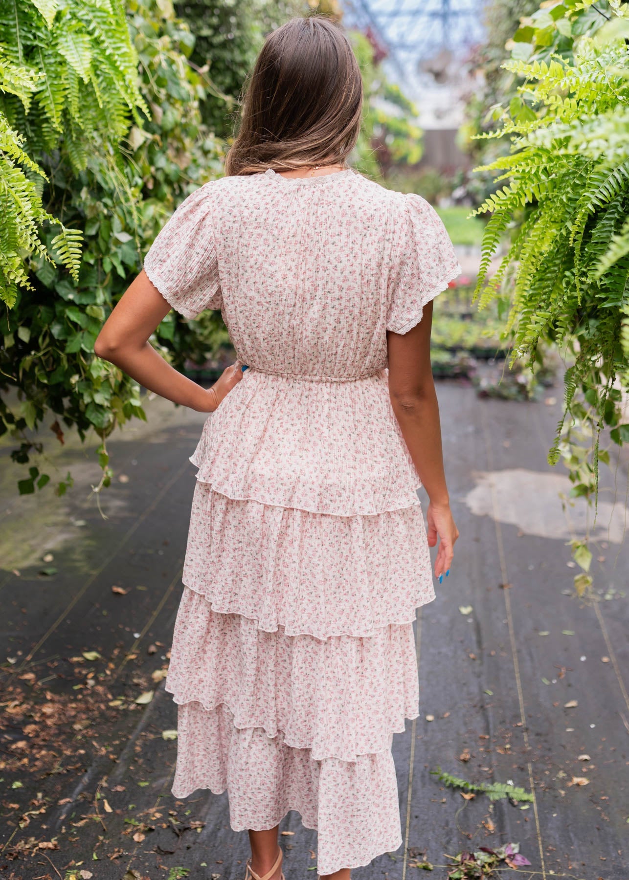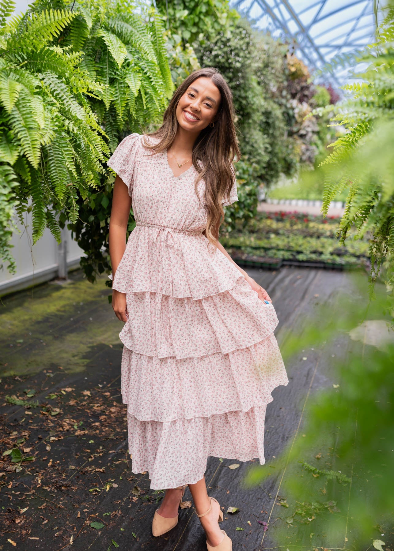 Mira Blush Rose Tiered Ruffle Dress