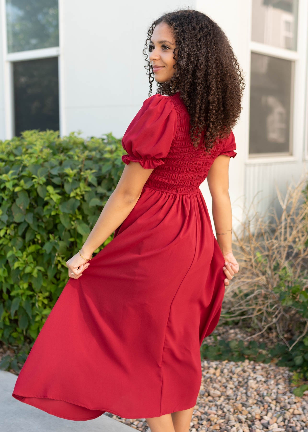 Bold yet beautifully feminine, the Miriam Crimson Smocked Dress brings all the charming details you love—like a flattering smocked bodice, sweet bow accent, and a swishy lined skirt. Comfortable and flattering, it’s the kind of dress that makes you feel instantly put together.