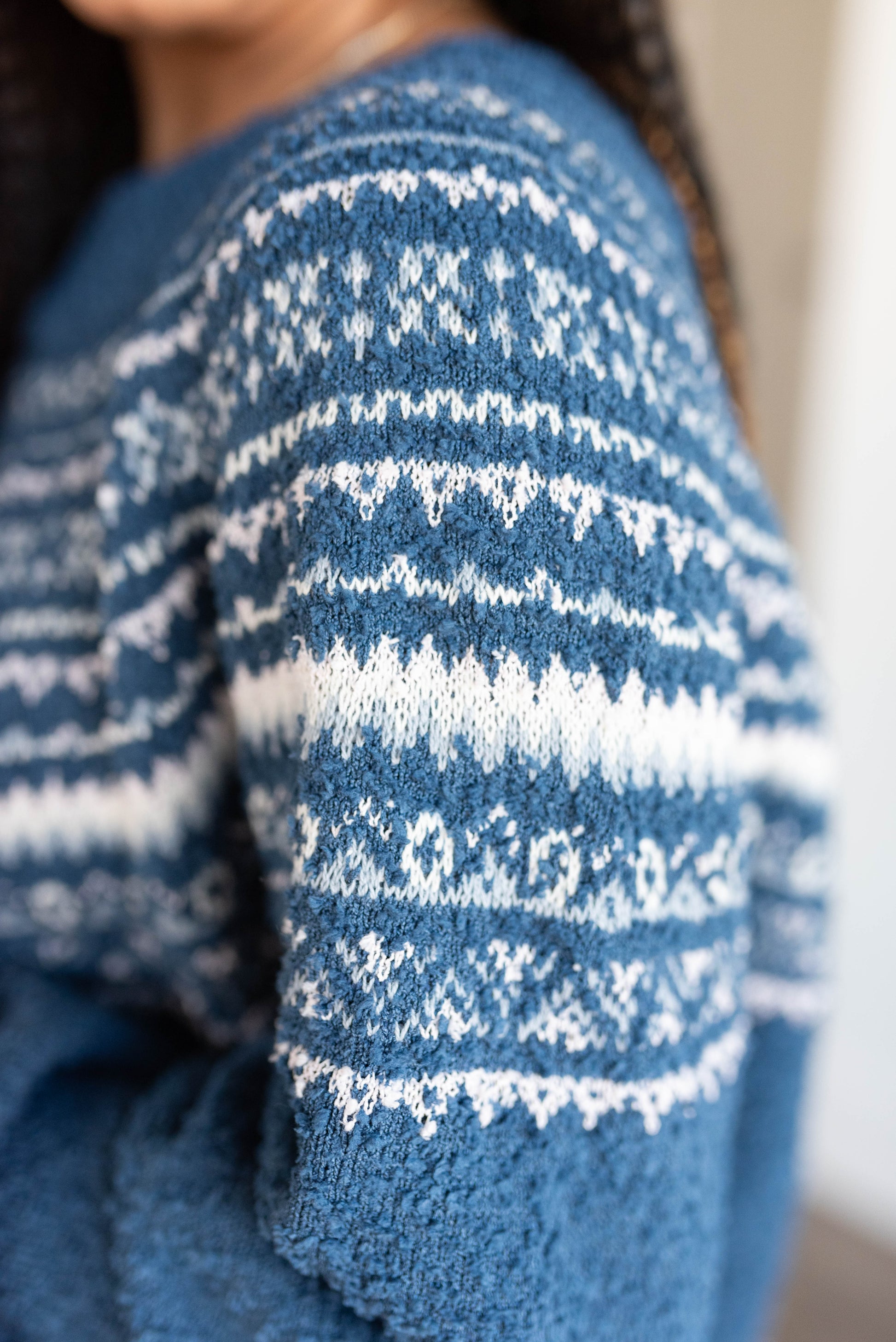 - Blue base + blue and cream fair isle pattern