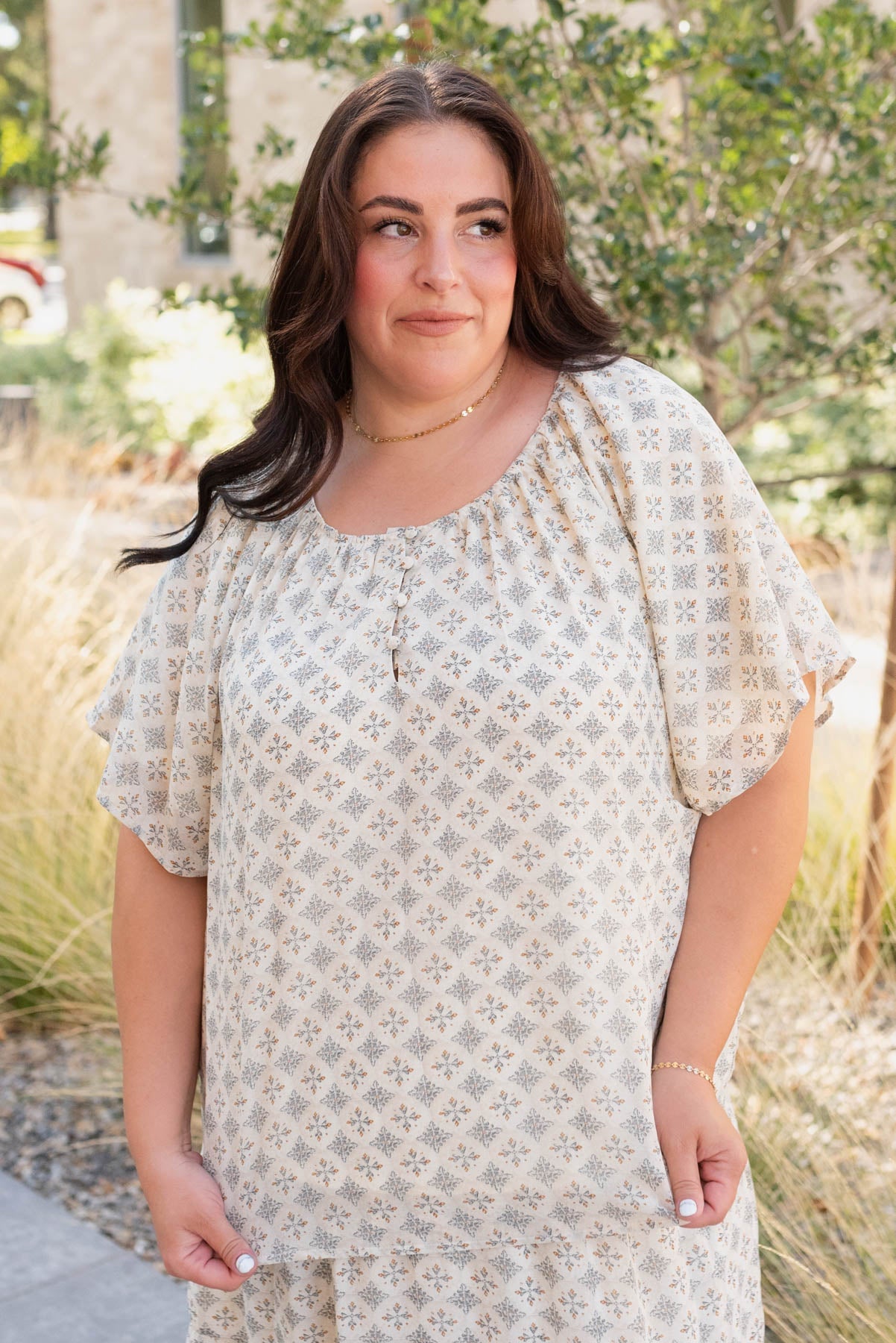 Nola Cream Pattern Chiffon Top