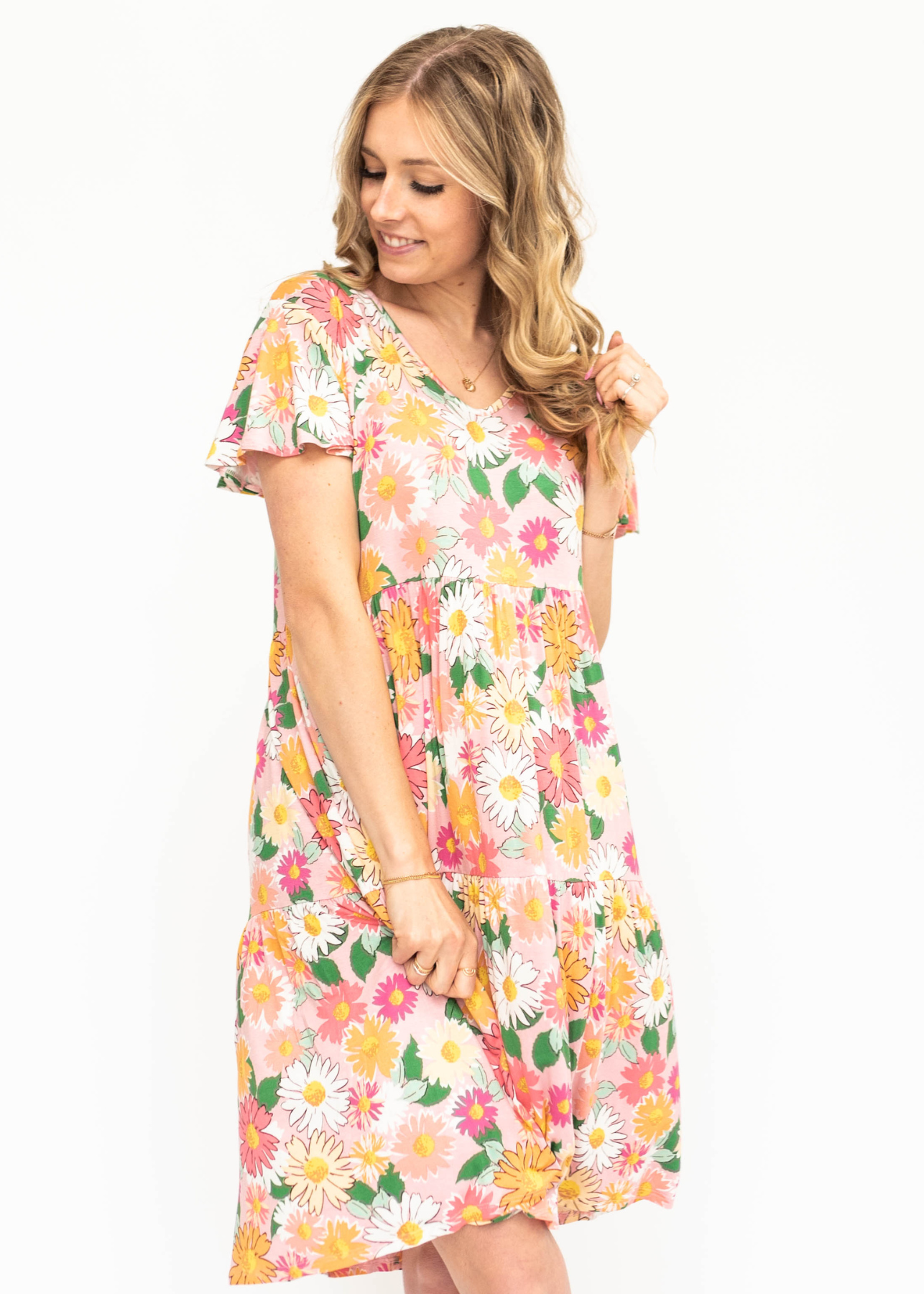 - Runs TTS with a flowy tiered fit. Size down if in-between