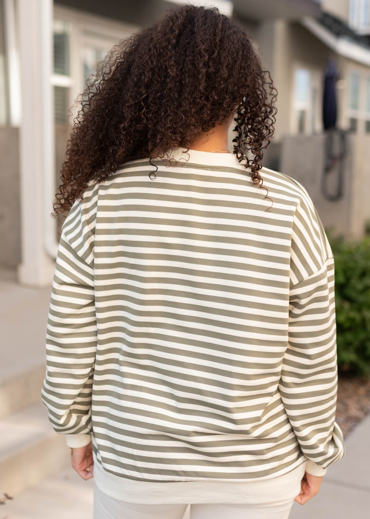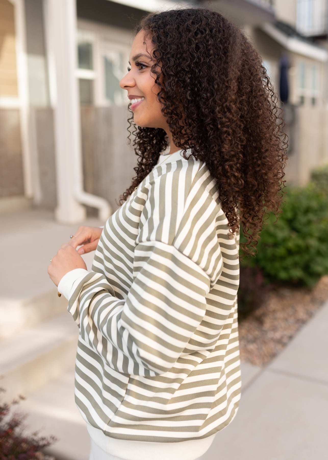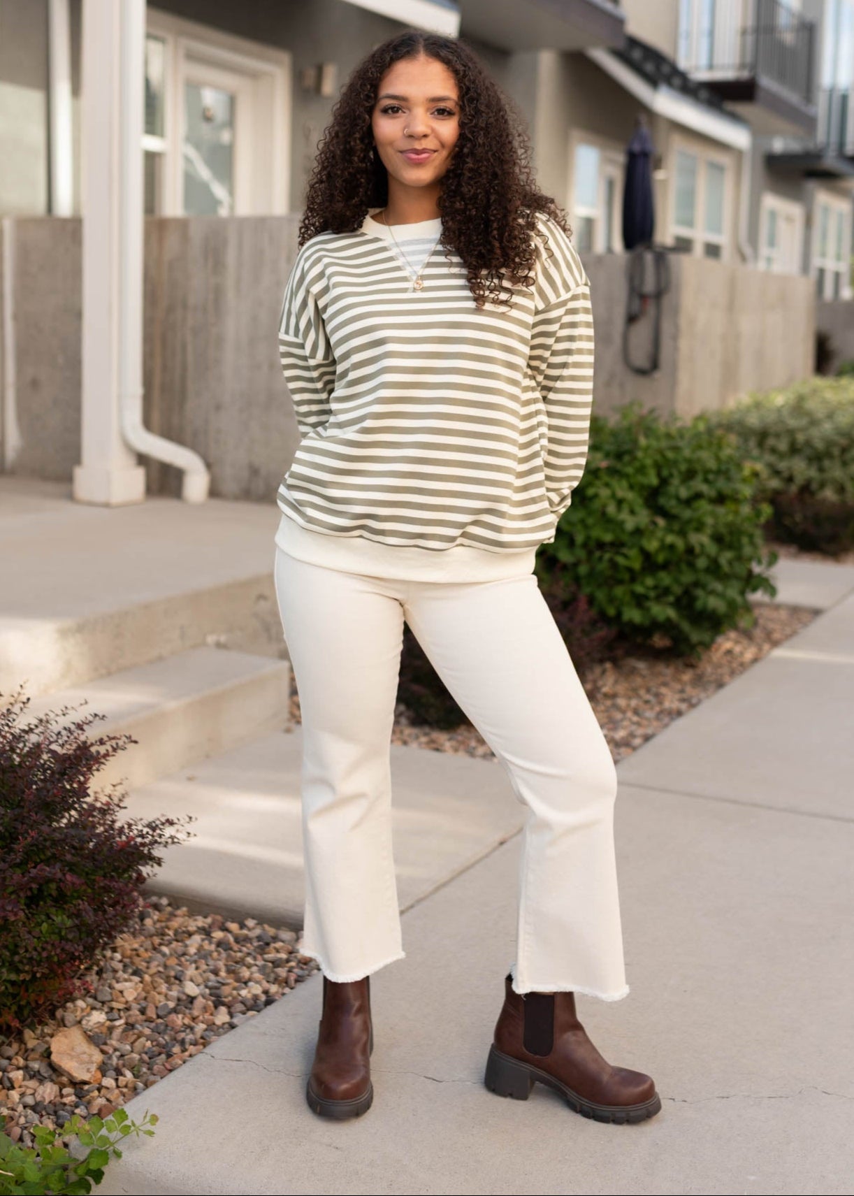 The Paisley Olive Striped Sweatshirt is pure cozy goals. With its perfectly oversized fit, classic stripes, and ribbed details, it’s the kind of top you’ll throw on for lazy mornings, coffee runs, or just because it’s that comfortable.