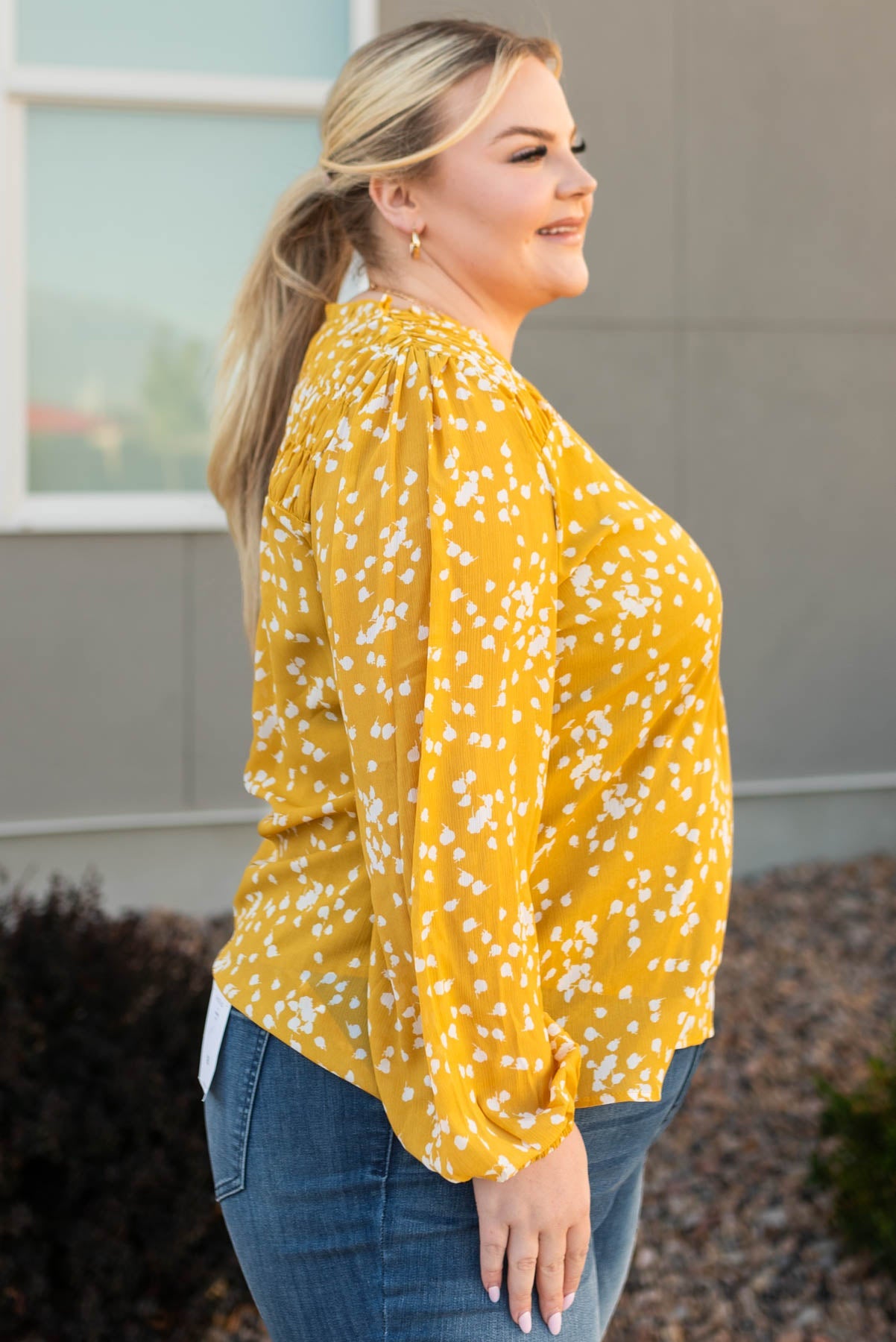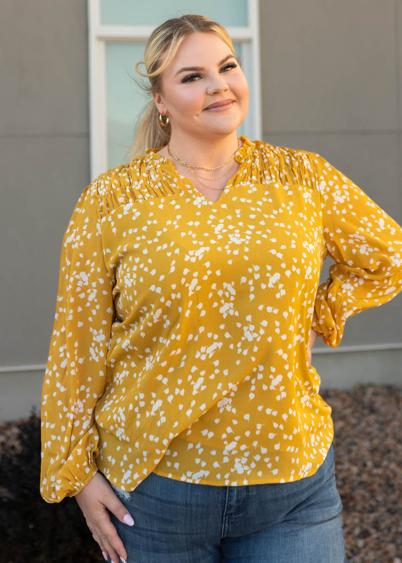 Ranae Mustard Ruffle Blouse
