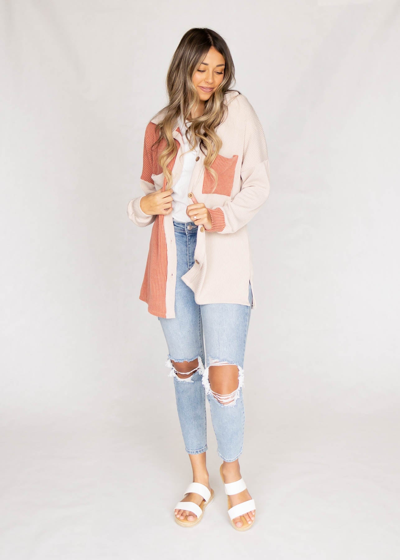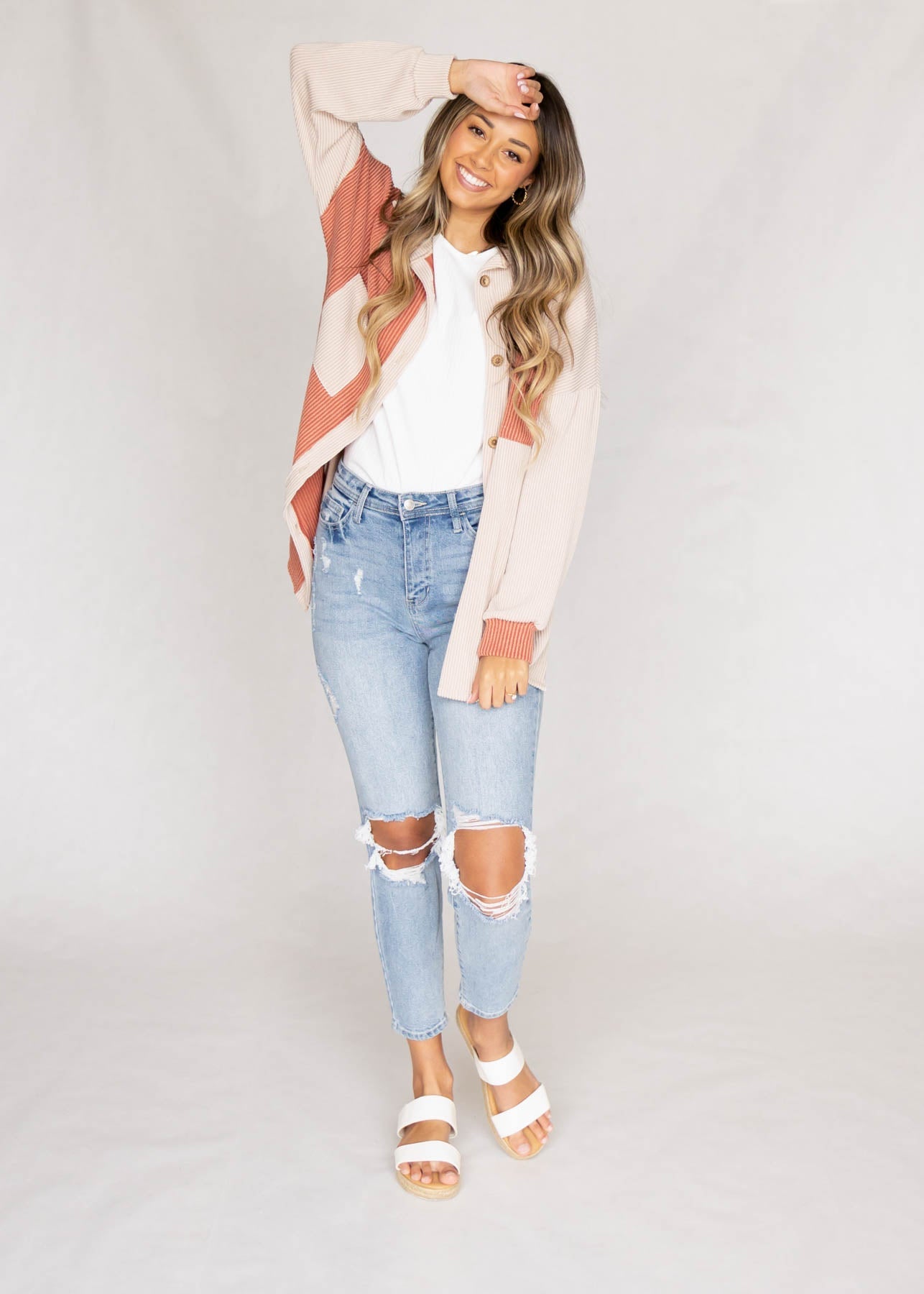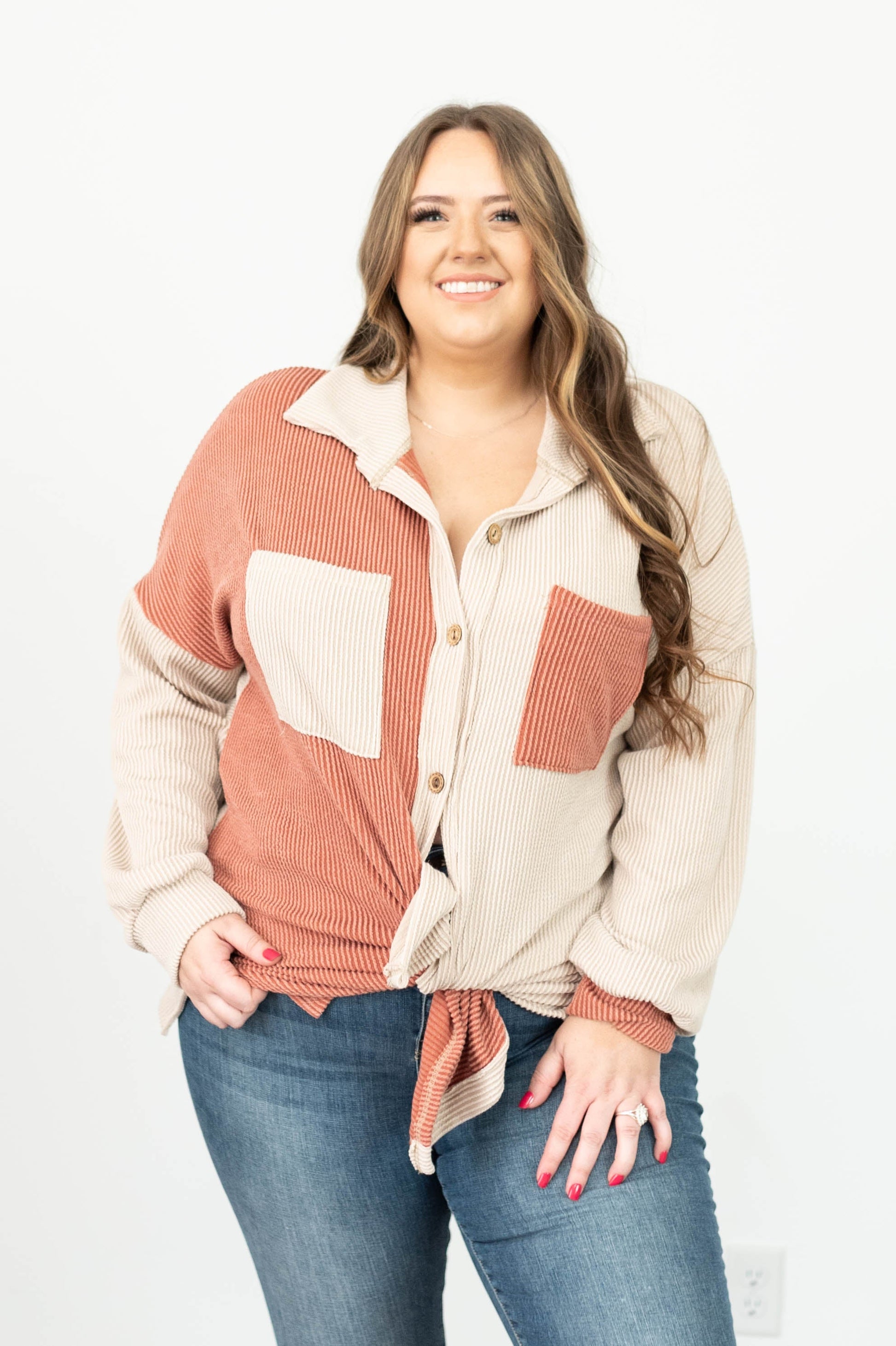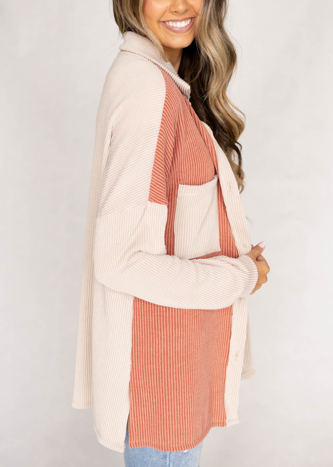 Ranae Taupe Ribbed Shacket