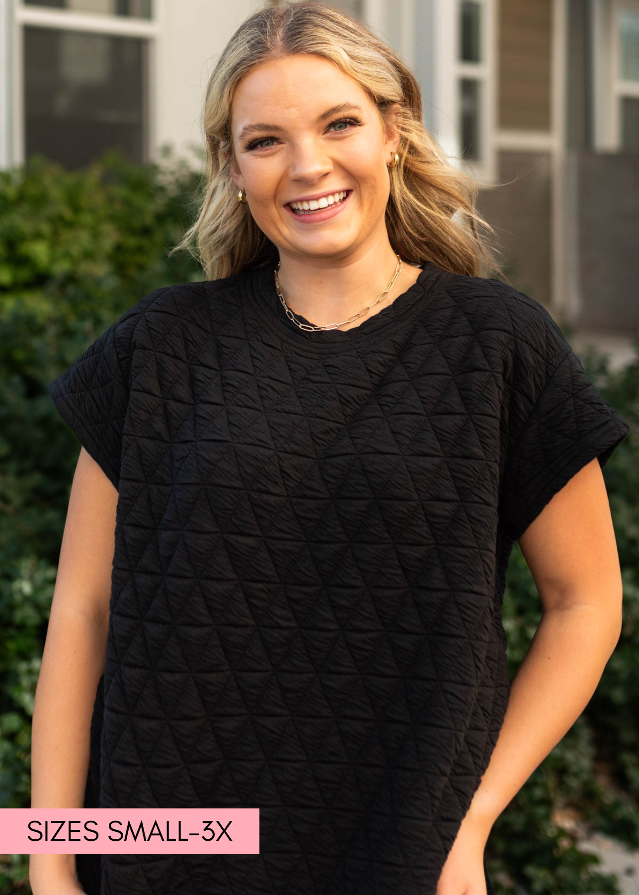 - Runs TTS with some stretch and a boxy fit. Size down if in-between