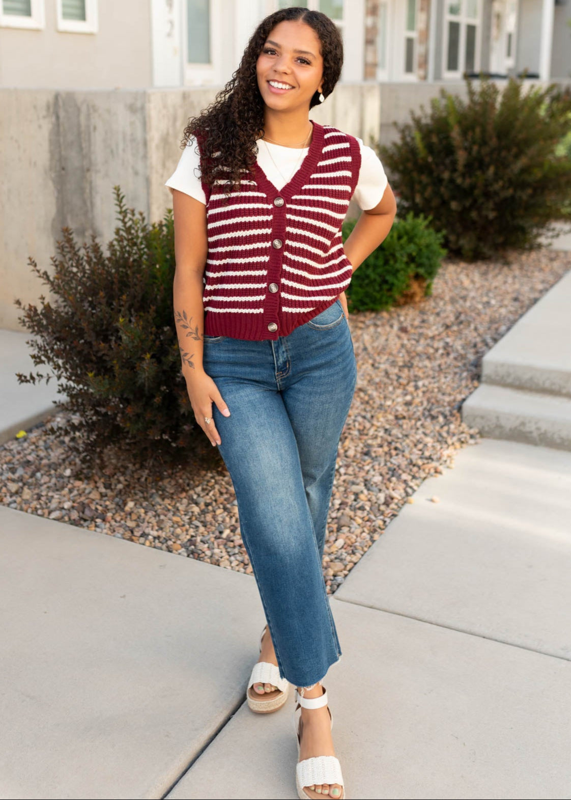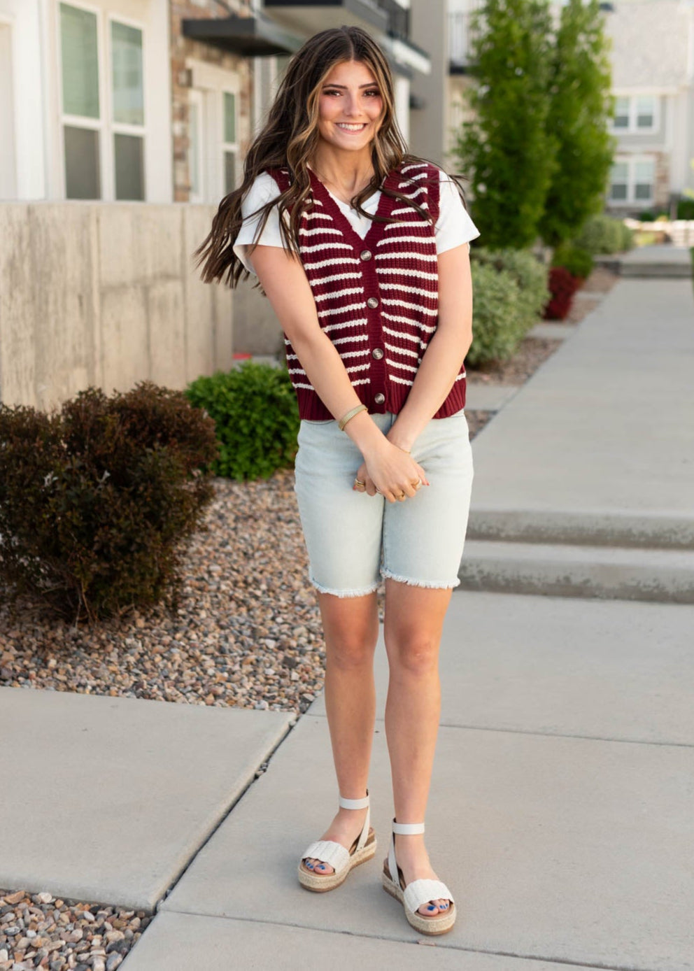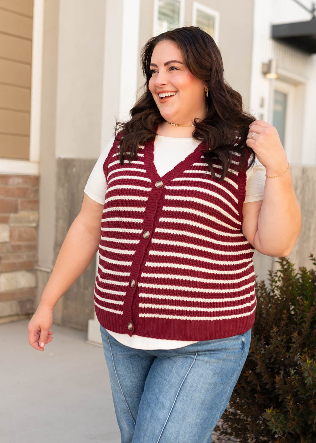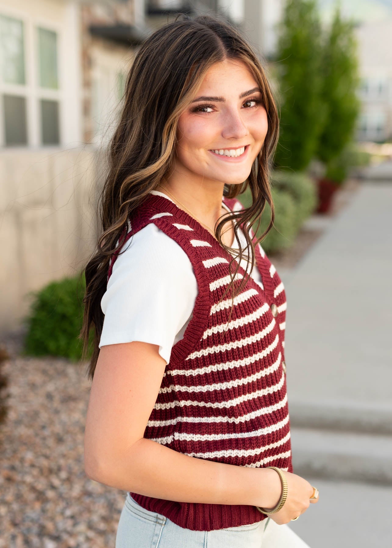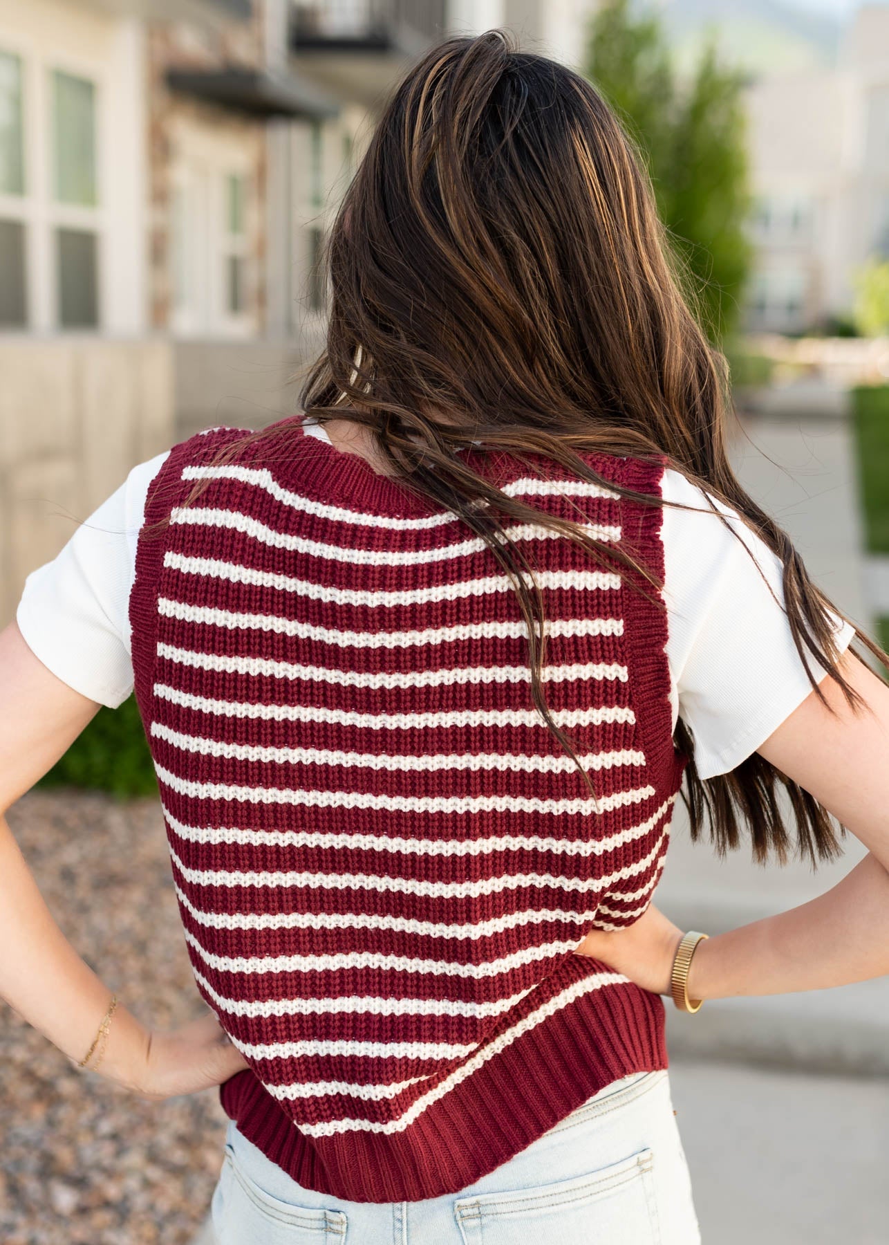 Sana Burgundy Striped Sweater Vest