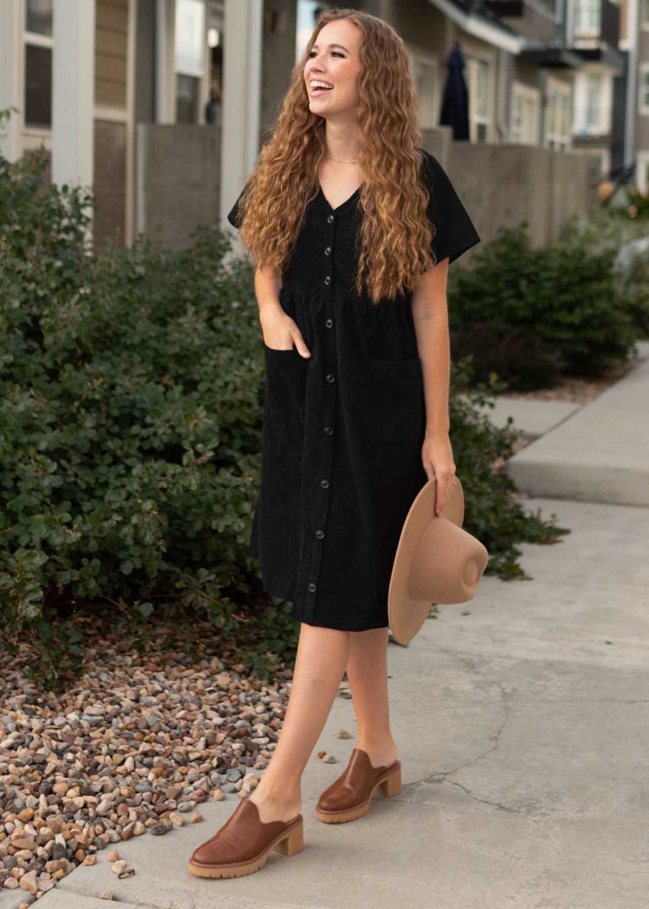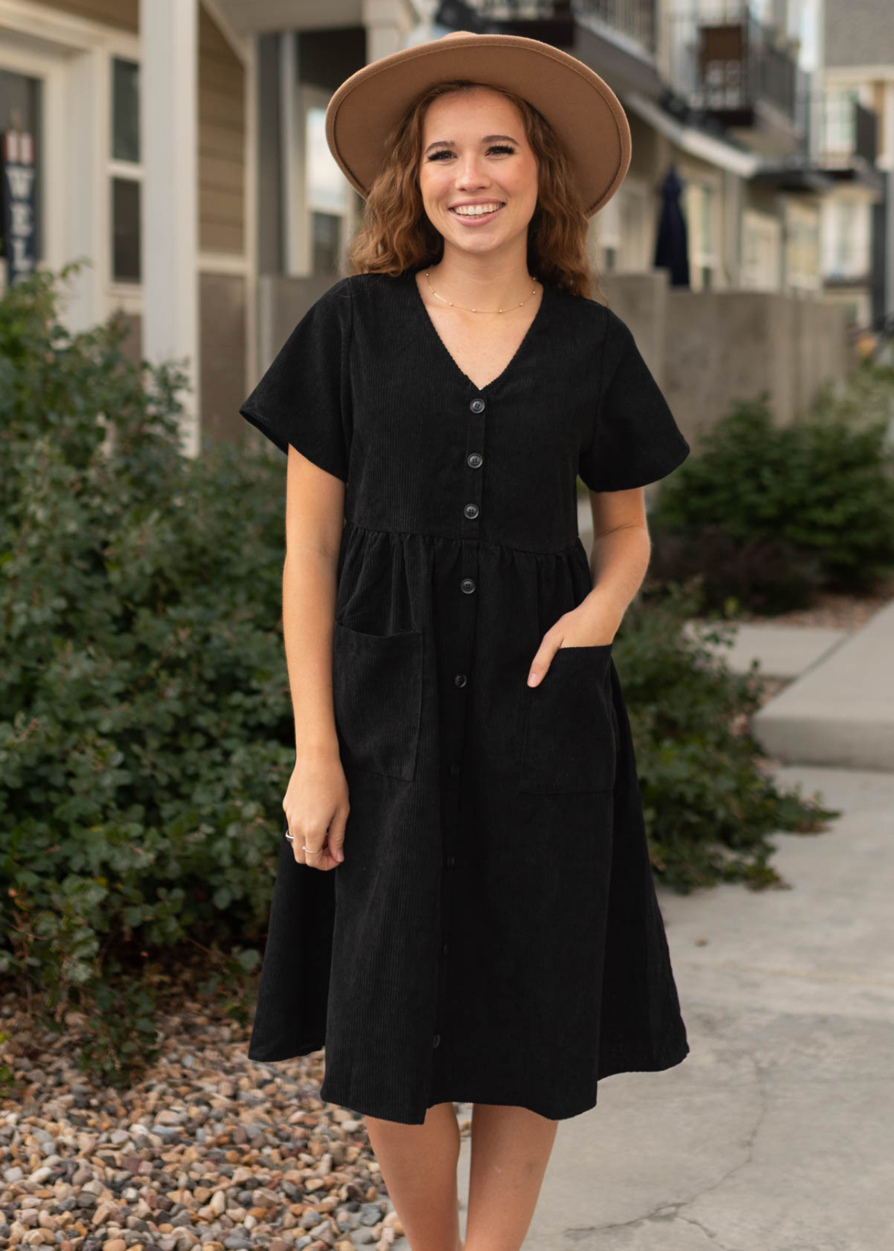 Sariah Black Corduroy Button up Dress