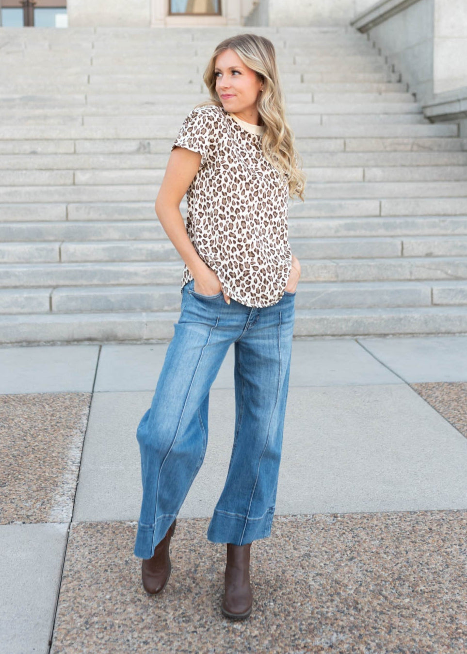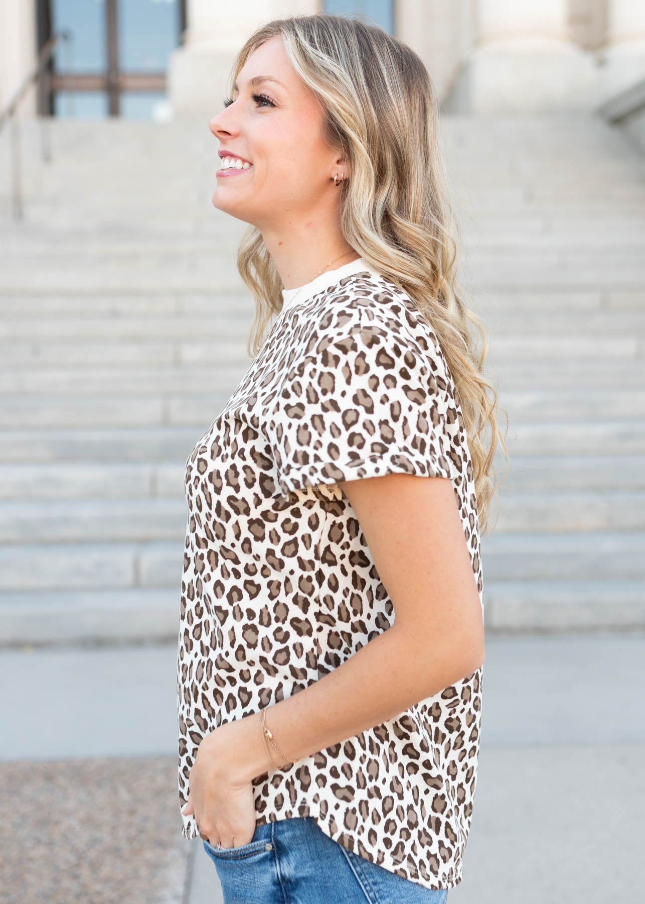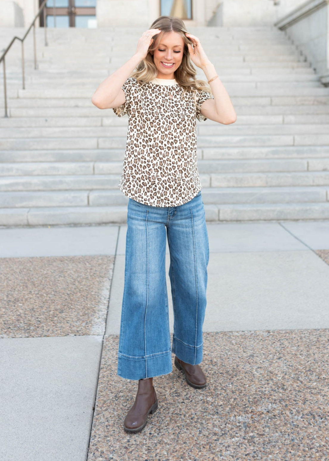 A little wild, a lot comfy—the Selena Leopard Print Top is your go-to for easy everyday style. Made with a soft, stretchy blend and a thick ribbed collar for that extra pop of texture.