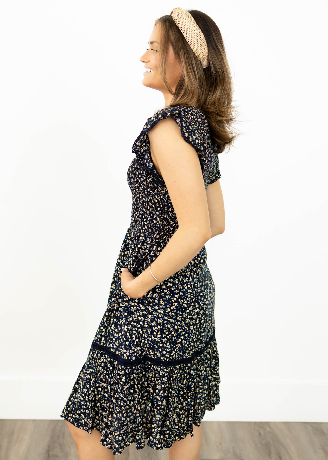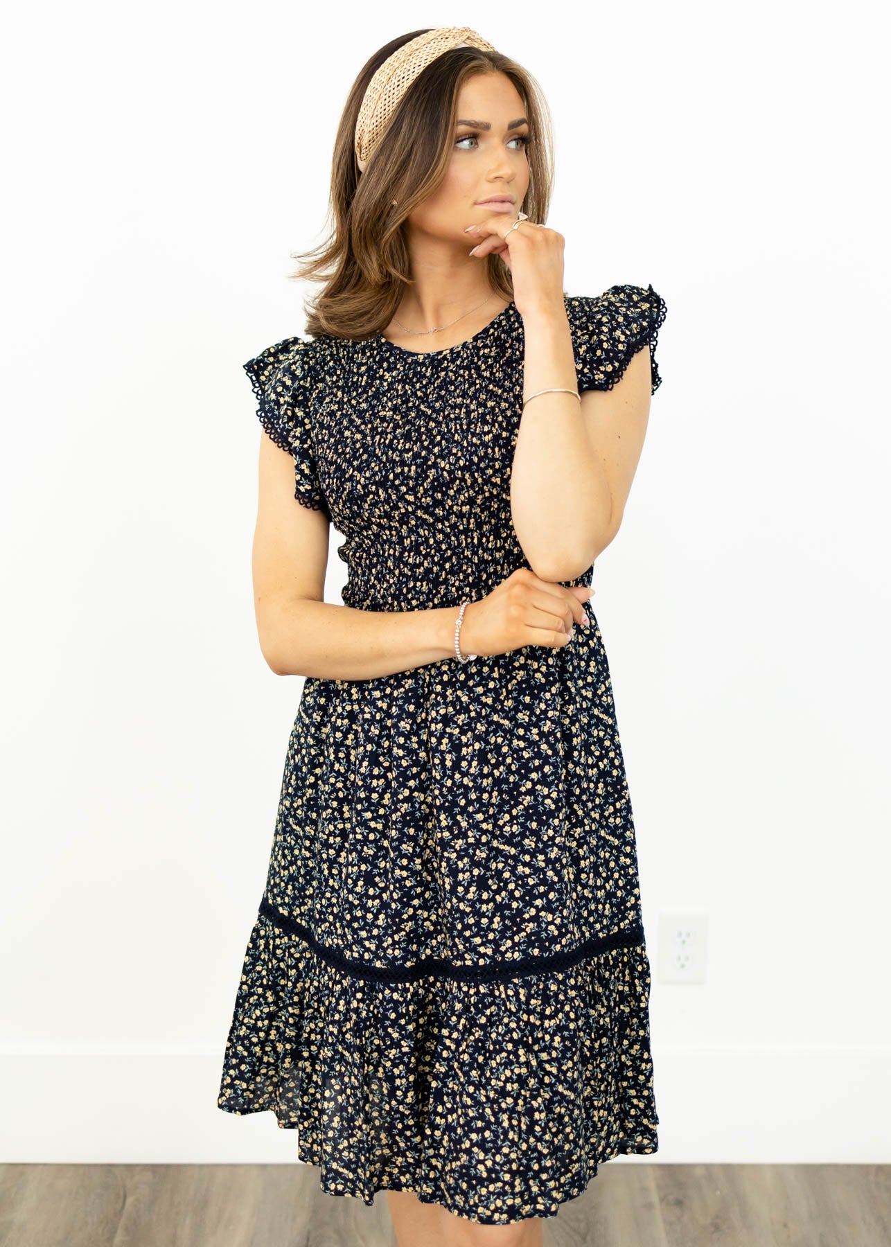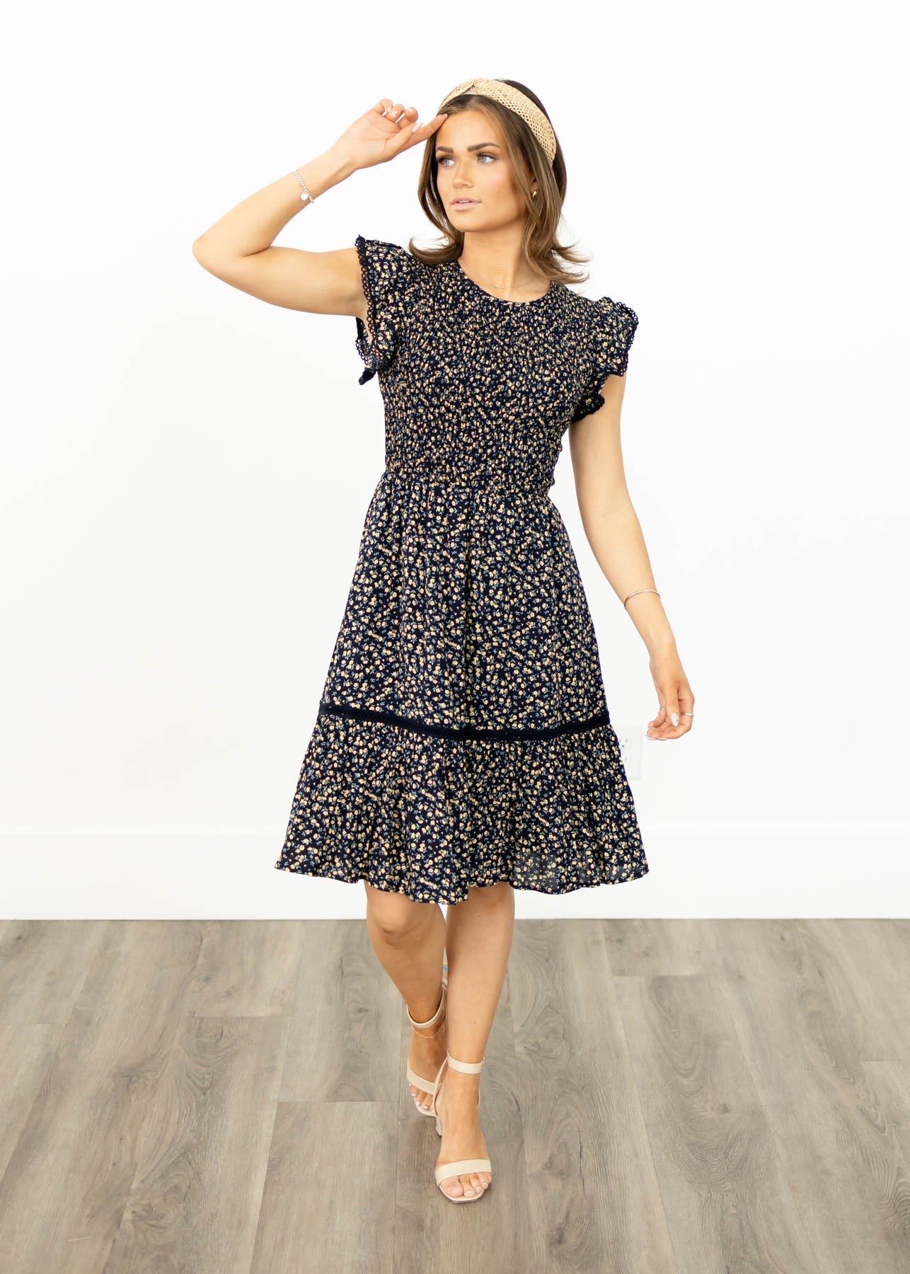 - Runs TTS with stretchy smocked bodice. Size down if in-between