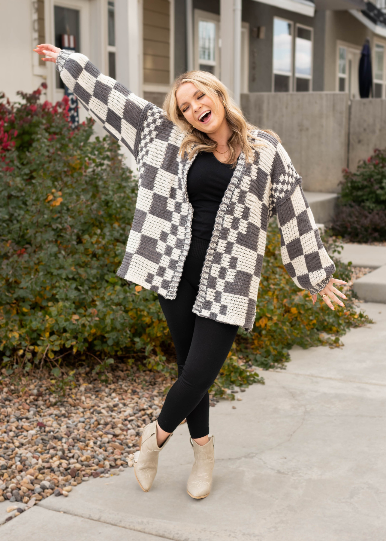 - Charcoal+ white checkered print