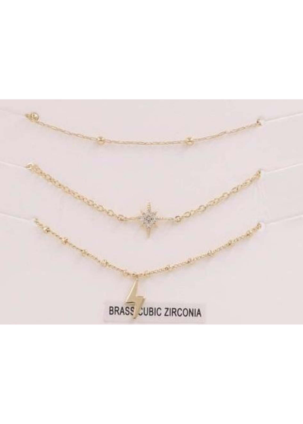 Brass/cubic zirconia bracelet set Length: 6 1/2" + 2" ext. 6 1/2" + 2" ext. 6 1/2" + 2" ext.