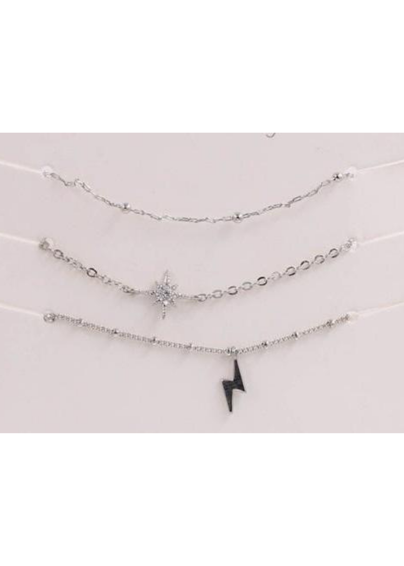 Brass/cubic zirconia bracelet set Length: 6 1/2" + 2" ext. 6 1/2" + 2" ext. 6 1/2" + 2" ext.