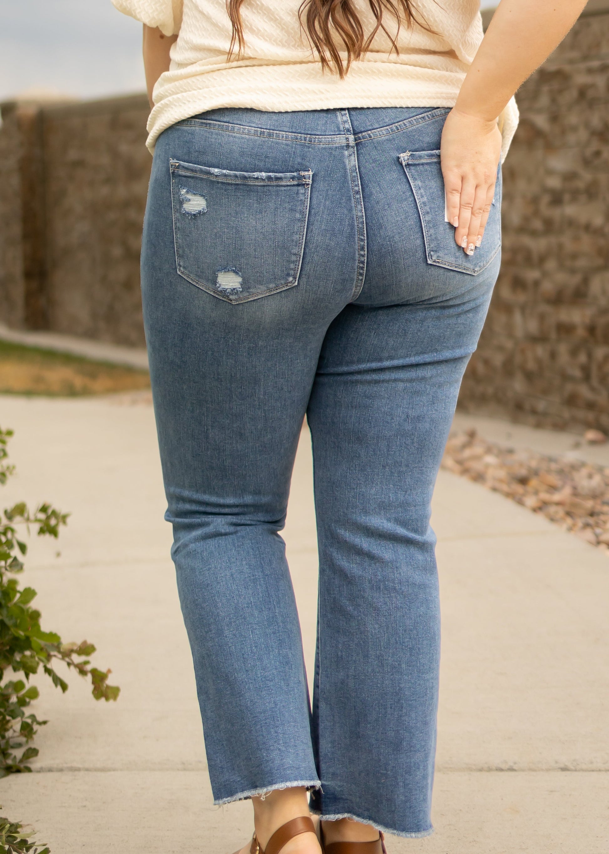 - Distressed back pockets