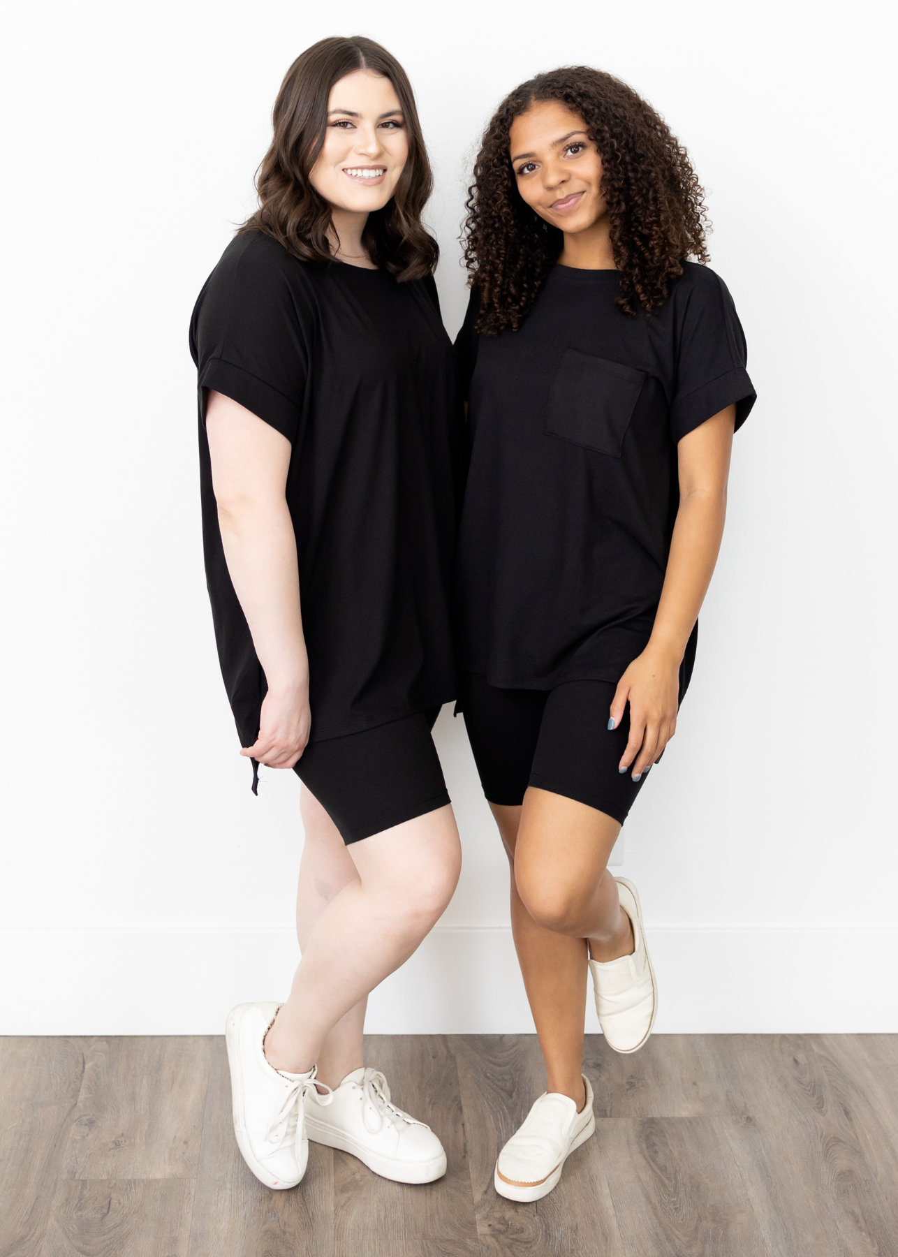 Say hello to the raddest set of all time: the Sophia Set. She's here to change your fashion game and ensure you stay comfortable all day long. The top fits like a dream- relaxed fit with the softest material. And the pants are event better! High-waisted biker short fit with ALL the stretch. Style this together for the ultimate trendy look, or wear the top with denim and the bottoms with a graphic tee! You can never go wrong with a matching set, and this one is dying to be in your wardrobe!