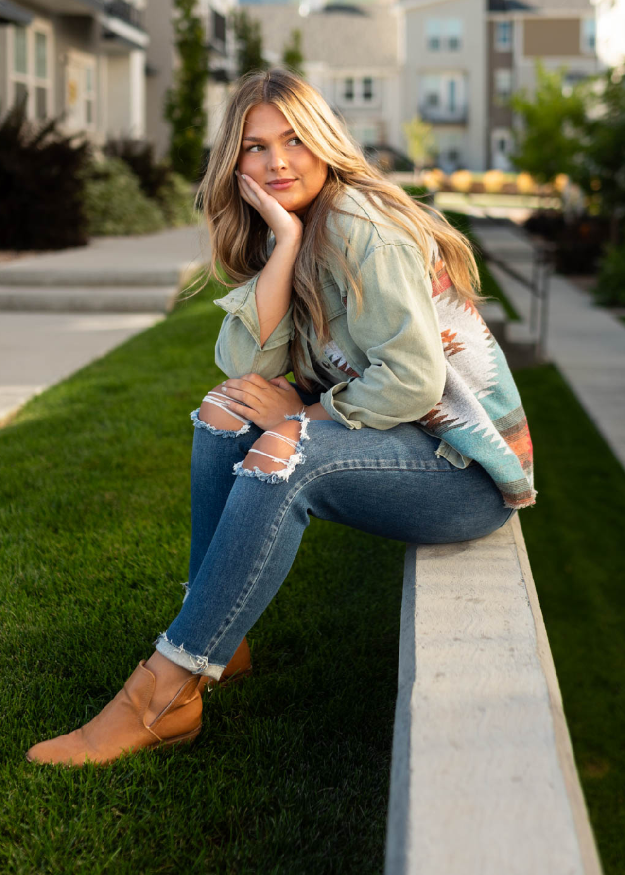 - Olive base + aztec textured print