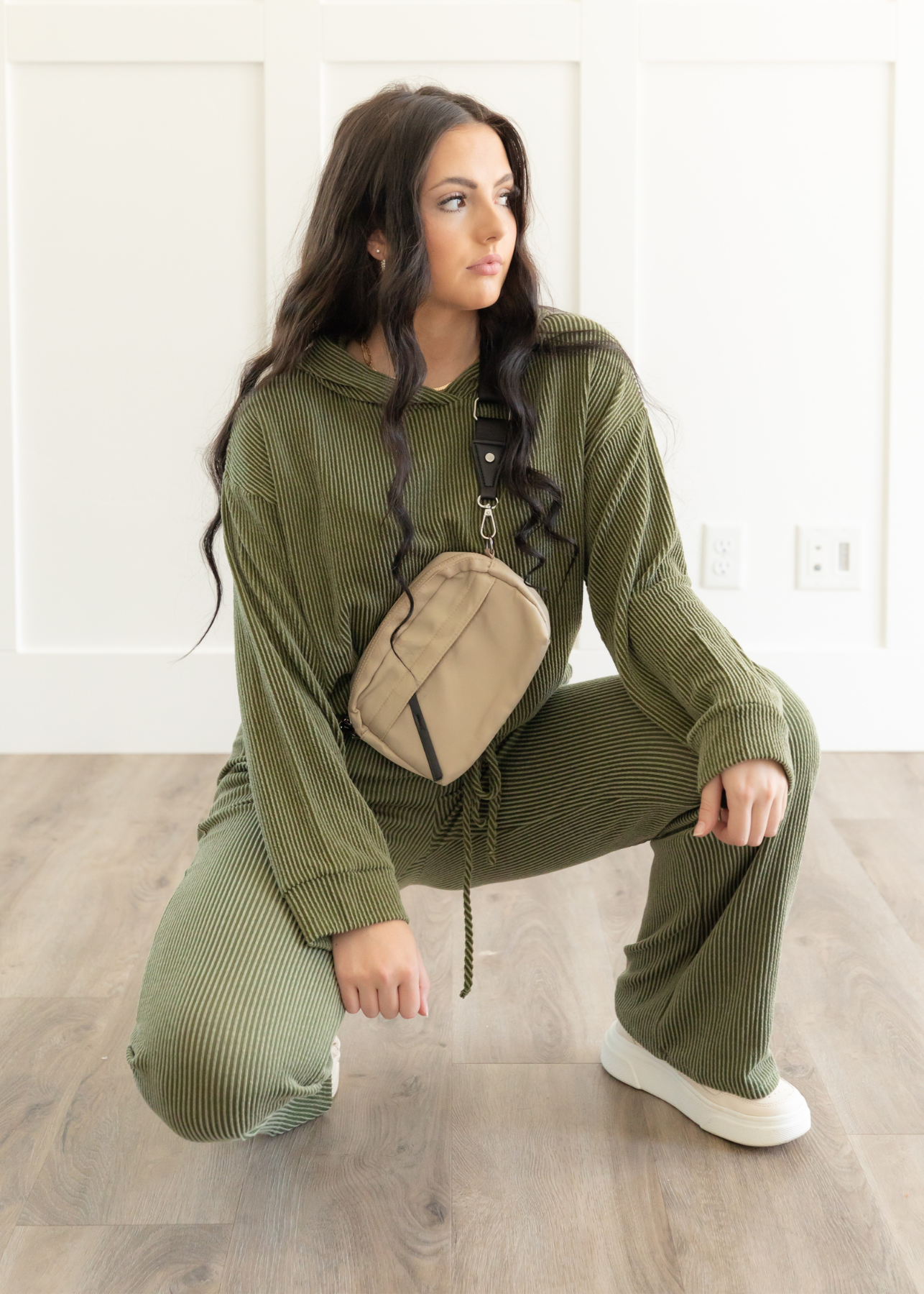 - Pair it with the matching Tamra Olive Ribbed Hoodie for the perfect outfit!